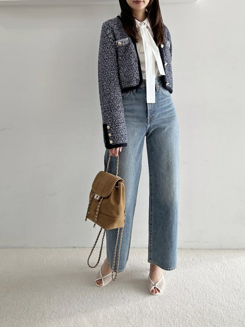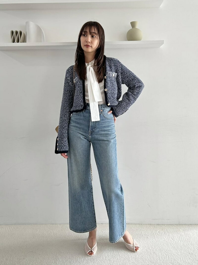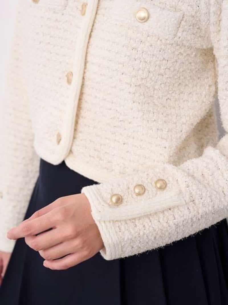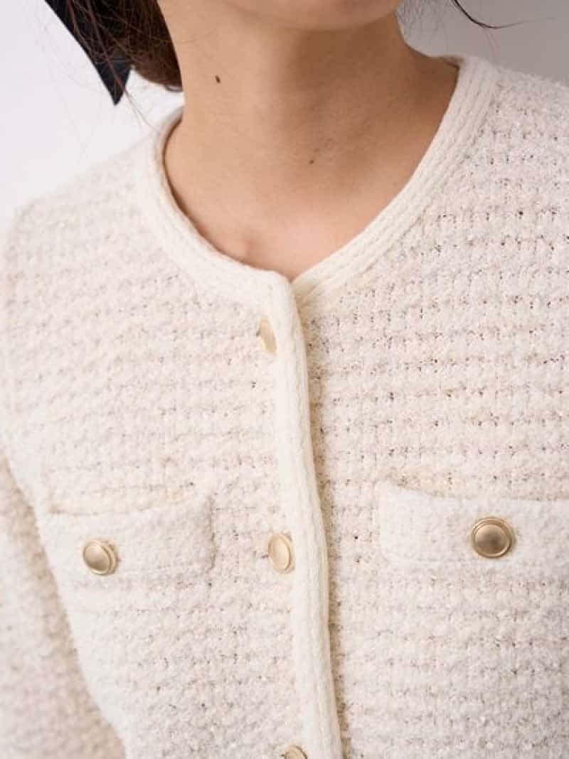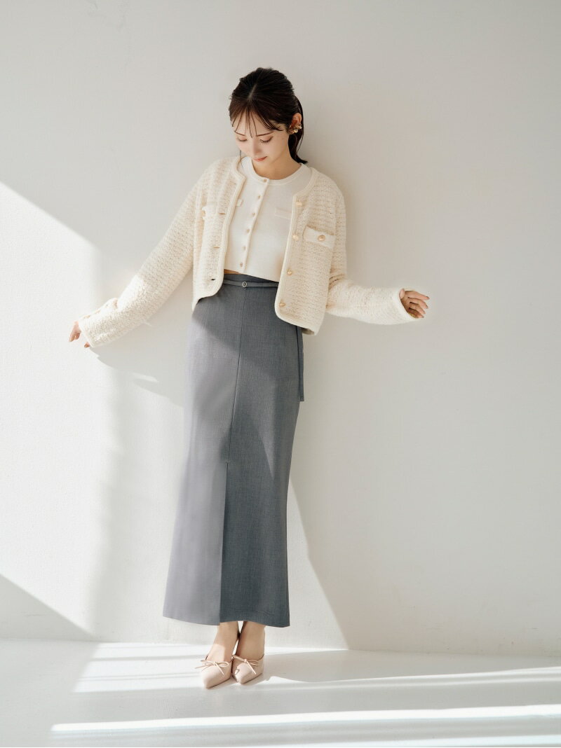ツイードニットカーディガン SNIDEL スナイデル トップス カーディガン ネイビー ベージュ【送料無料】[Rakuten Fashion]