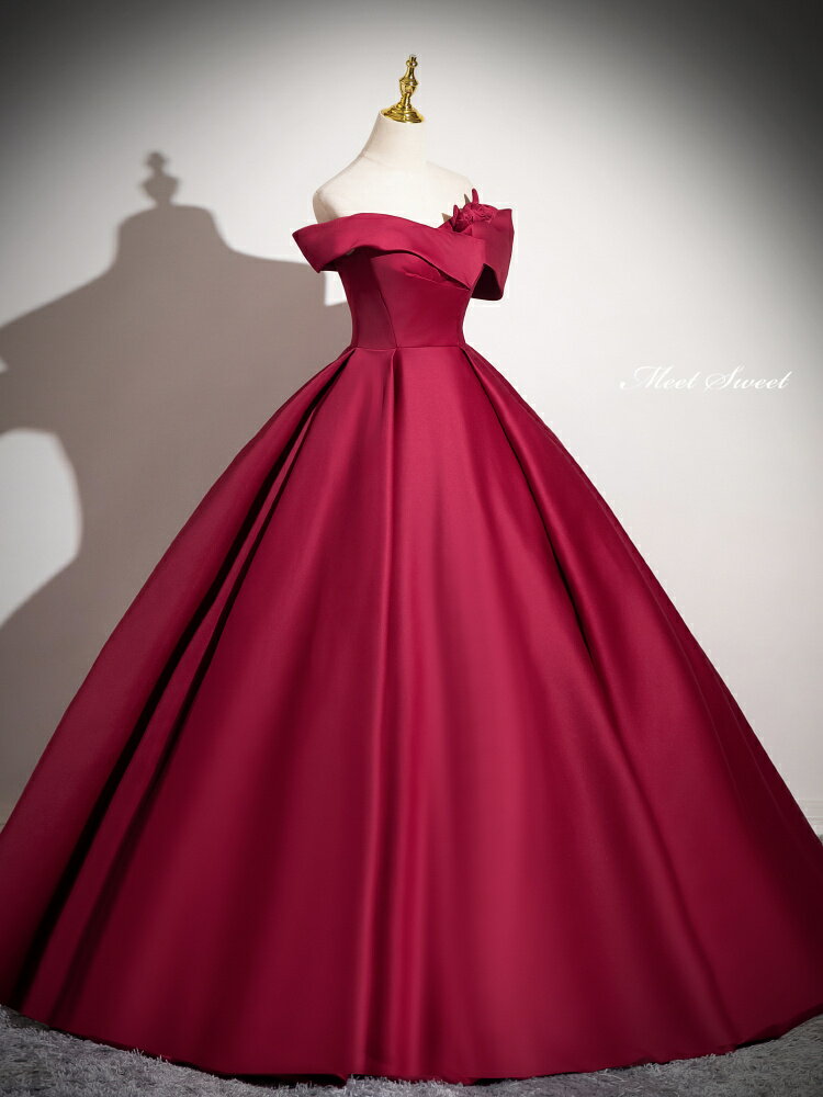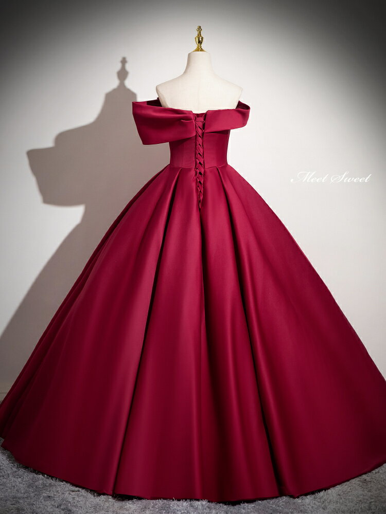 カラードレス プリンセスライン ワインレッド オフショルダー サテン 赤 ロングドレス ウェディングドレス 結婚式 二次会 花嫁 前撮り 発表会 ステージ衣装 ウエディングドレス パーティードレス ブライダル 演奏会 舞台 演出 イブニングドレス コンサート コンクール