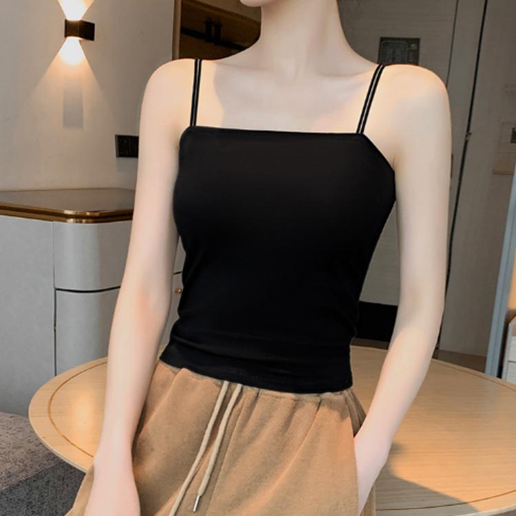 カップ付きキャミソール ダブルストラップ 綿 コットン レディース 春 夏 ストレッチ チューブトップ ノンワイヤー 下着 ブラトップ 締め付けない 無地 女性 肌着 カップ付インナー おしゃれ きれいめ