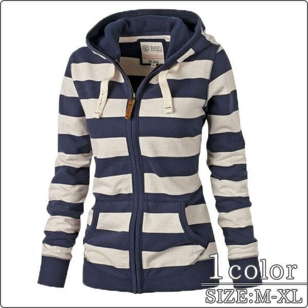 パーカー レディース ストライプ パーカー ジップアップ カジュアル フード 可愛い アウター トレーナー レディース
