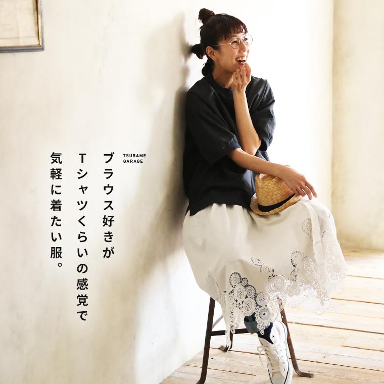 ツバメガレージ Tシャツ以上ブラウス未満な、プルオーバー M/L/LL/3L/4Lサイズ レディース/クルーネック/半袖/5分袖/五分袖/トップス