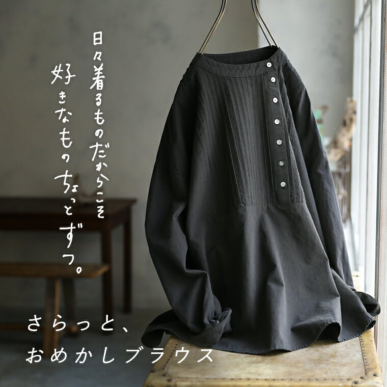 【11月下旬より順次出荷】はちみつ堂 さらっと、おめかしブラウス M/L/LL/3L/4Lサイズ レディース/シャツ/プルオーバー/長袖/ノーカラー/バンドカラー/麻混/リネン混/トップス