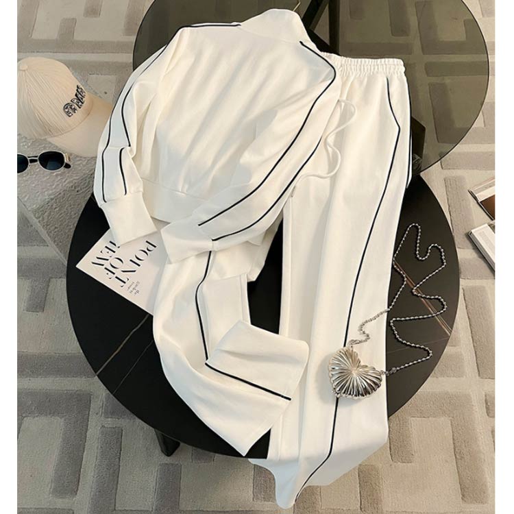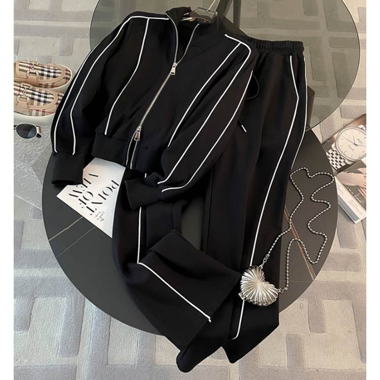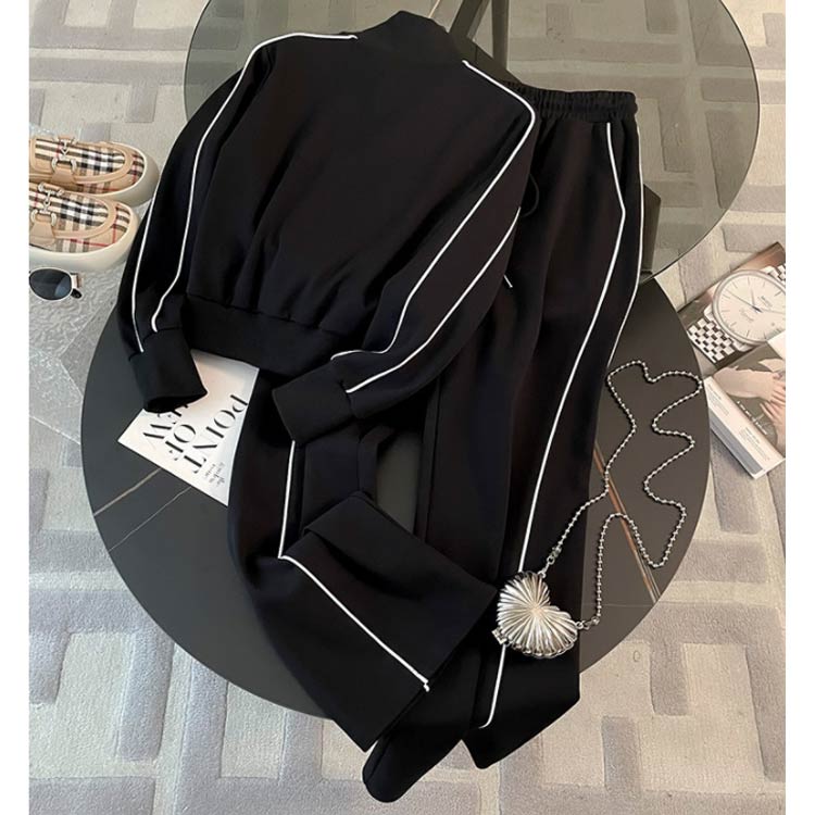 スウェット セットアップ レディース スタンドカラー 立ち襟 ジップアップ ジャケット 長袖 ロングパンツ ダブルファスナー ショート丈 スポーティー カジュアル おしゃれ きれいめ シンプル 春 秋