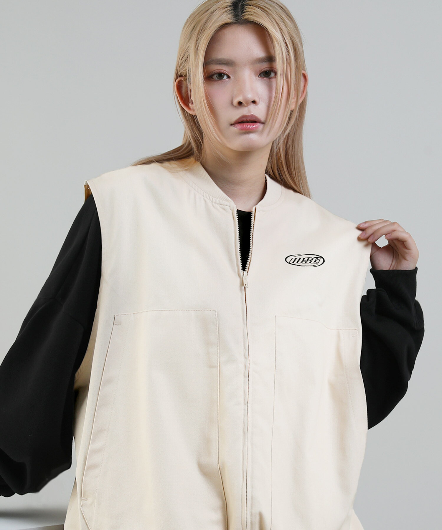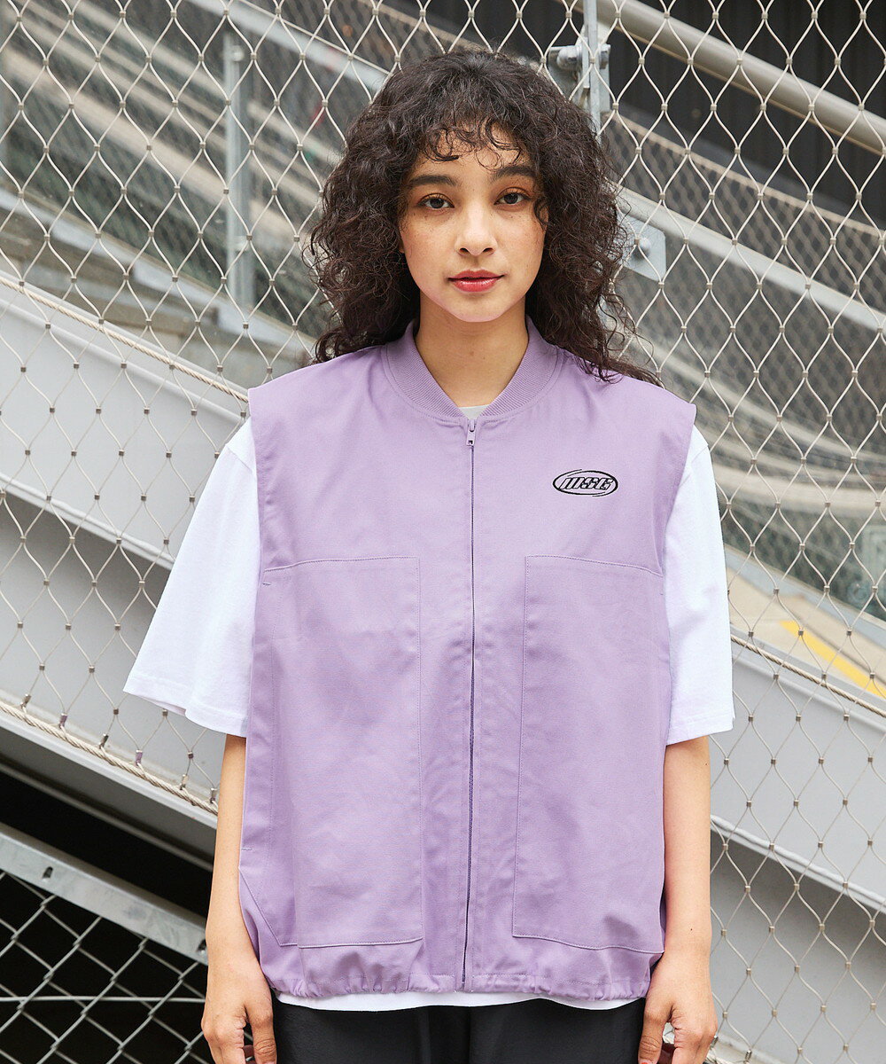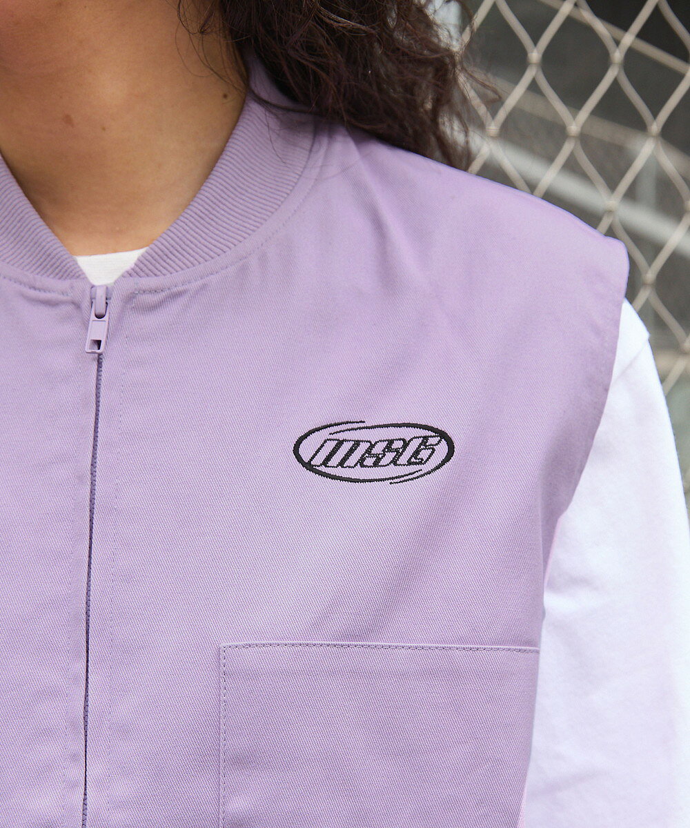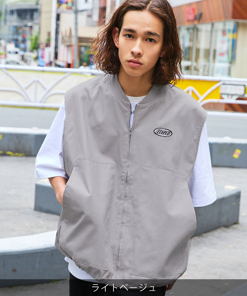ベスト ワークベスト ワンポイント 刺繍 ロゴ オーバーサイズ 春 春服 夏 夏服 ゆったり 綿100 無地 男女兼用 ユニセックス S M L XL オフベージュ ライトベージュ MSG