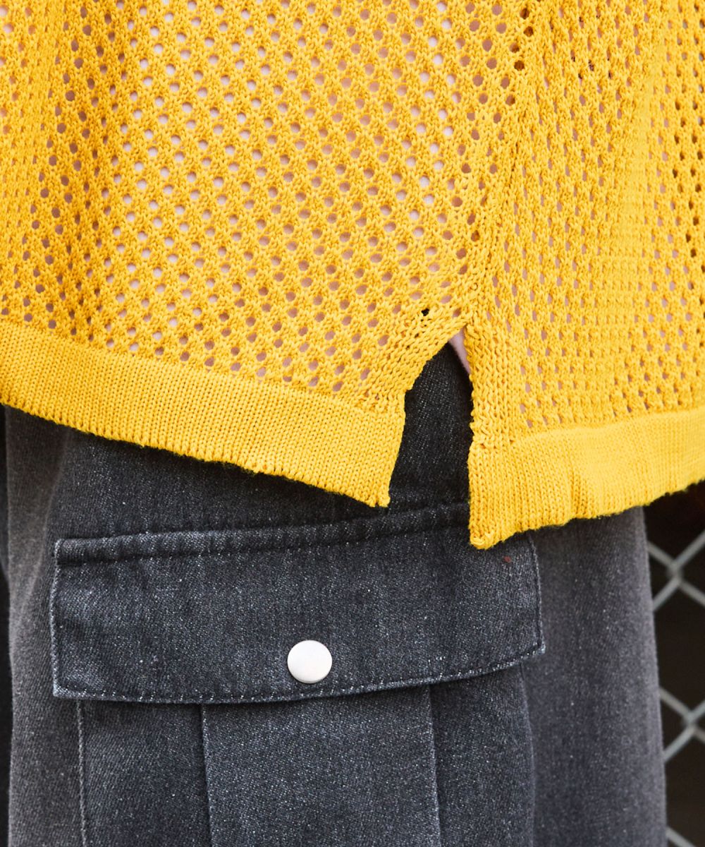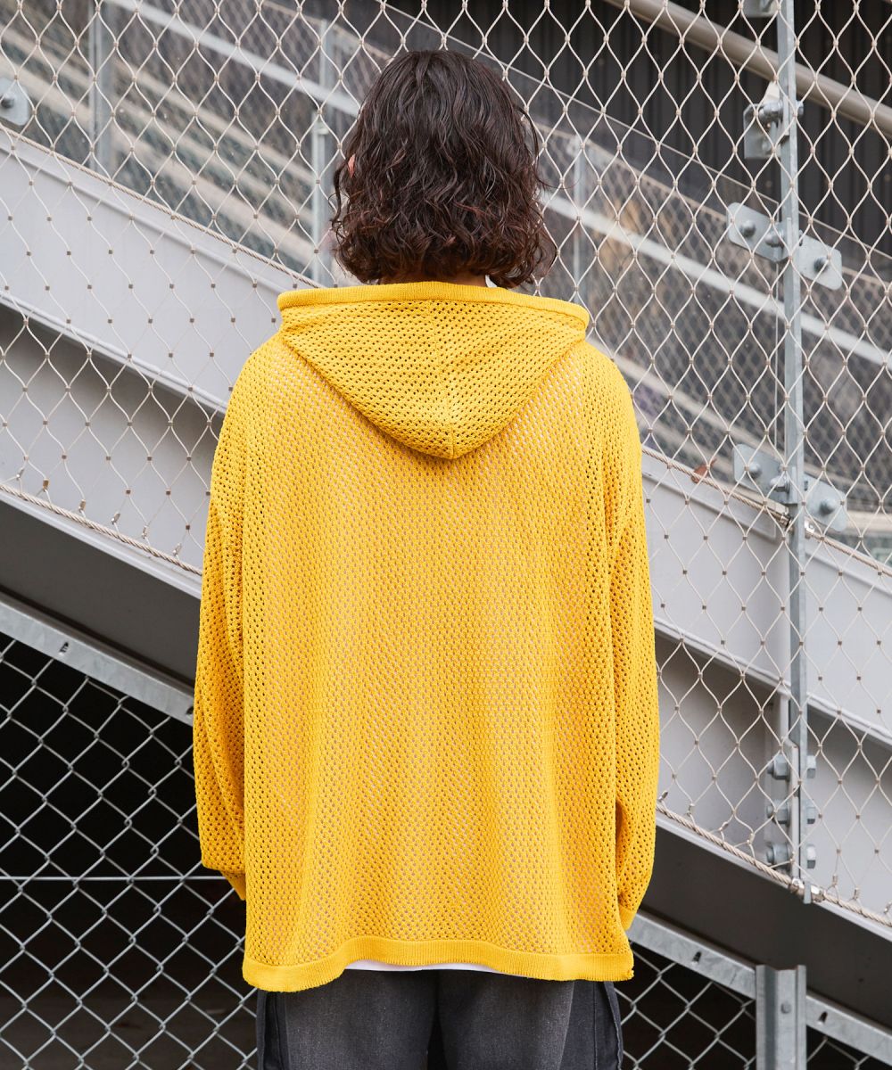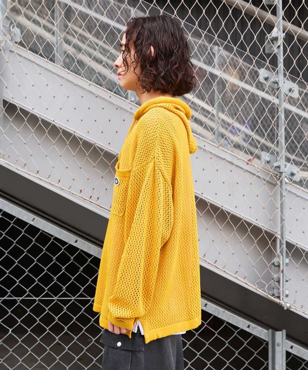 ニット メンズ プルパーカー プルオーバー ニット ブランドロゴ サイドスリット ルーズシルエット ビッグサイズ ドロップショルダー ユニセックス メッシュニット グレー チャコール パープル マスタード ブラック MSG 春 春服 夏 夏服