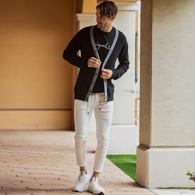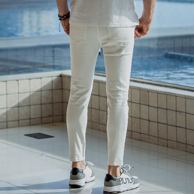 1PIU1UGUALE3 RELAX ウノピゥウノウグァーレトレ アンクル丈 ホワイト ダメージデニムパンツ メンズ セットアップ ボトムス ジーパン かっこいい おしゃれ ブランド ウノピュウ ウノピュー ウノピゥ 1piu1