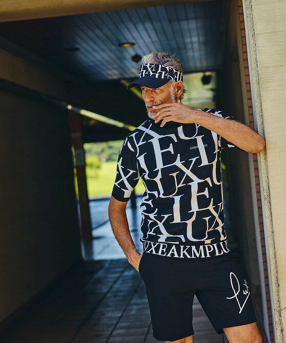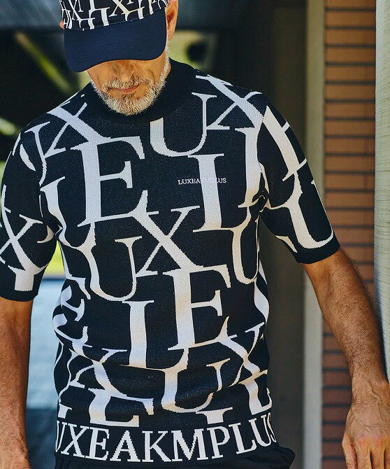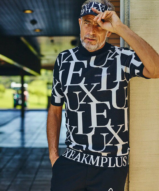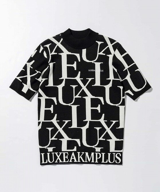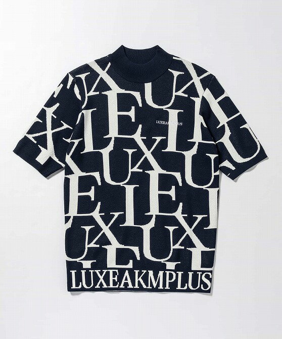 LUXEAKMPLUS リュクスエイケイエムプラス ゴルフ 総柄ロゴ 半袖 モックネックニット メンズ おしゃれ かっこいい ブランド ゴルフウェア スポーツウェア GOLF
