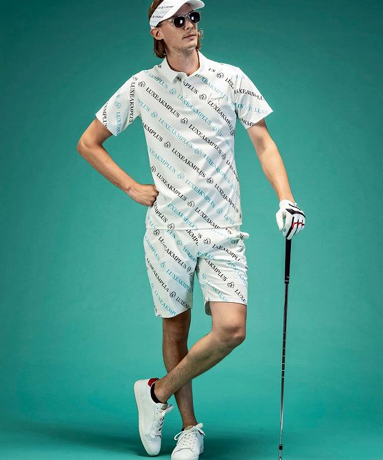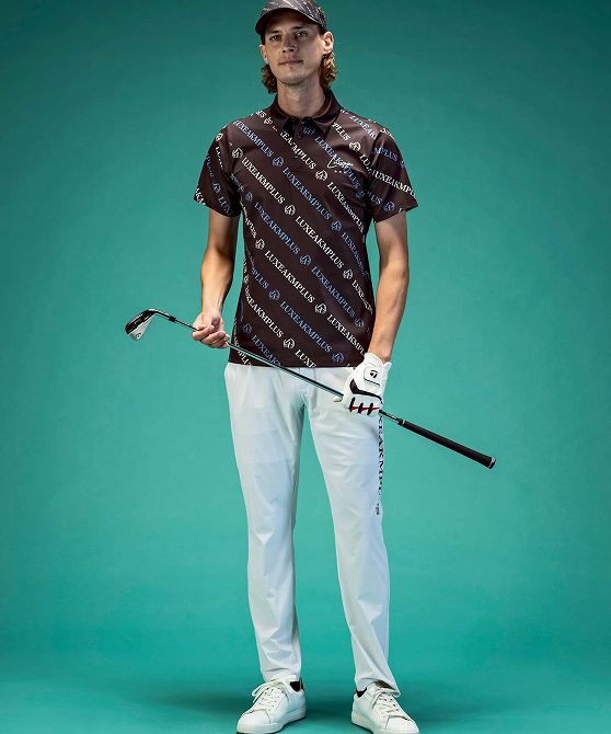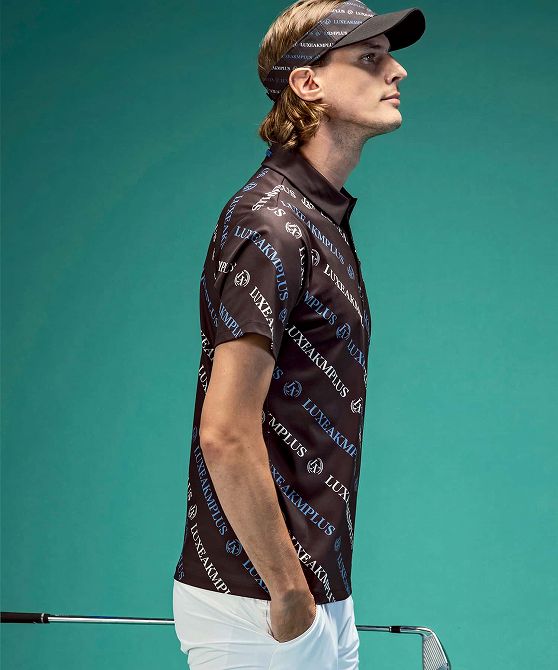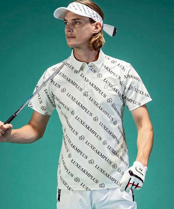 LUXEAKMPLUS リュクスエイケイエムプラス ゴルフ 総柄ロゴ半袖ポロシャツ メンズ おしゃれ かっこいい ブランド ゴルフウェア スポーツウェア GOLF