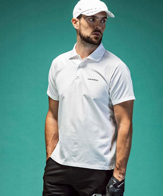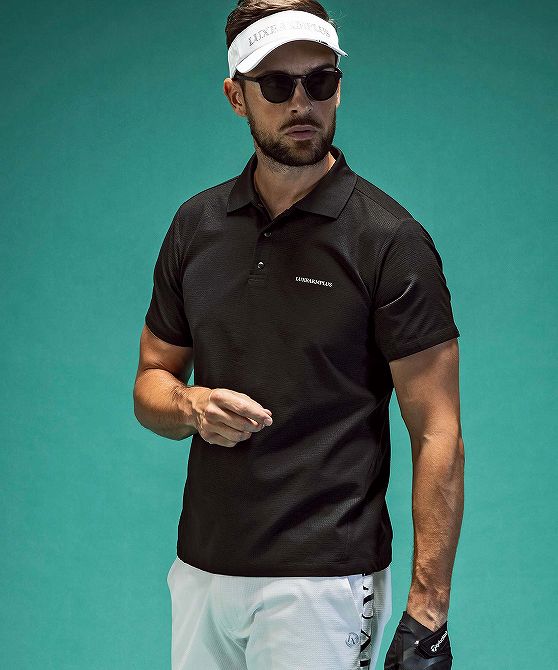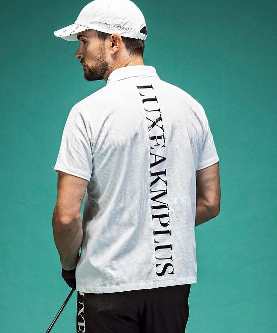 LUXEAKMPLUS リュクスエイケイエムプラス ゴルフ バックロゴベンチレーションポロシャツ メンズ おしゃれ かっこいい ブランド ゴルフウェア スポーツウェア GOLF