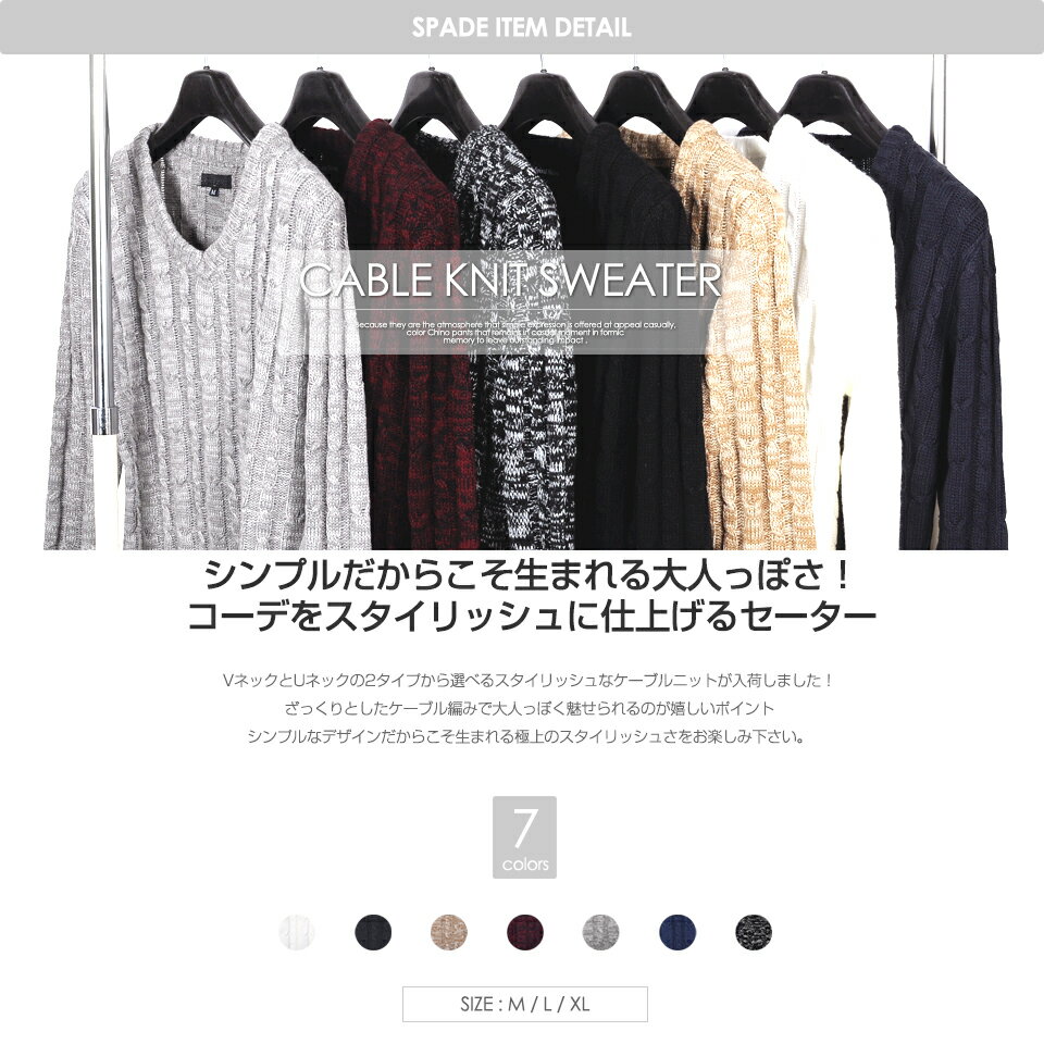 セーター ニット メンズ ケーブル ローゲージ 5ゲージ ざっくり クルーネック Uネック Vネック ニットソー セーター きれいめ ブラック グレー 白 ホワイト 紺 ネイビー 冬 冬服