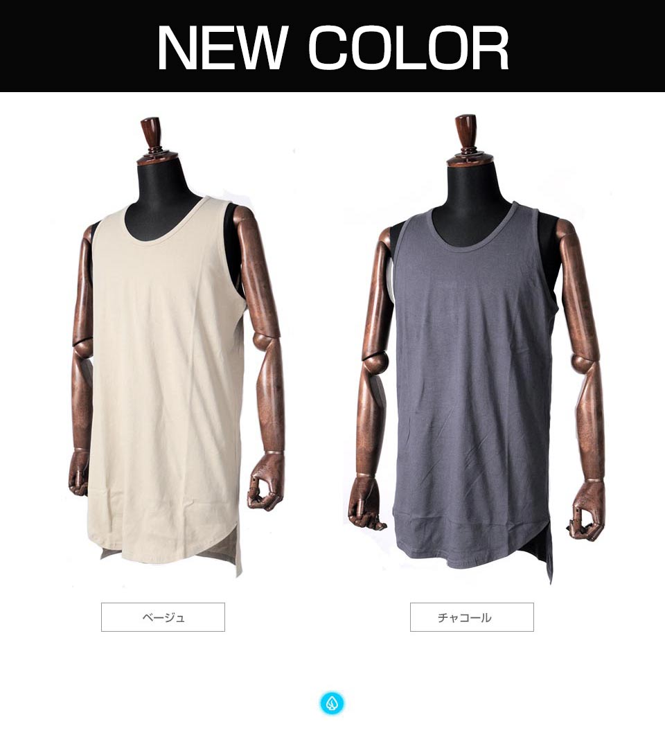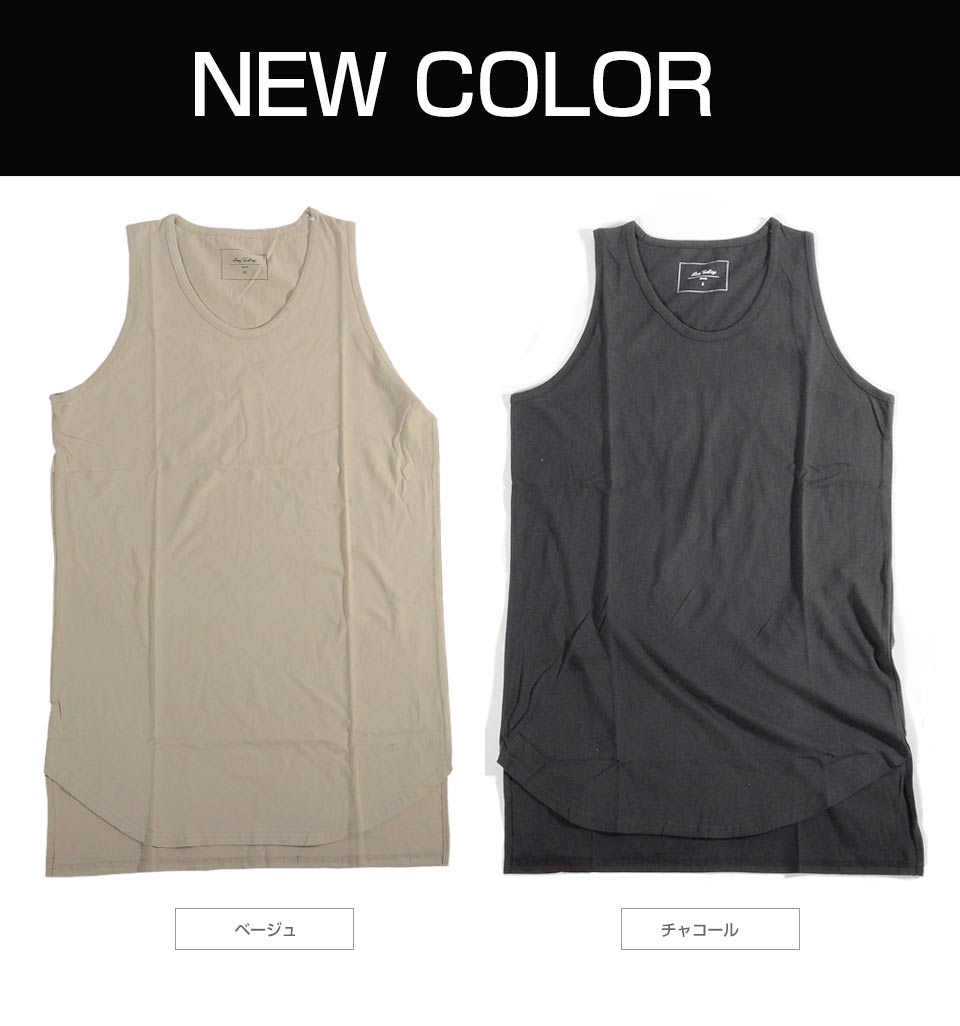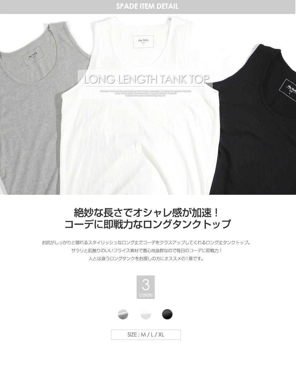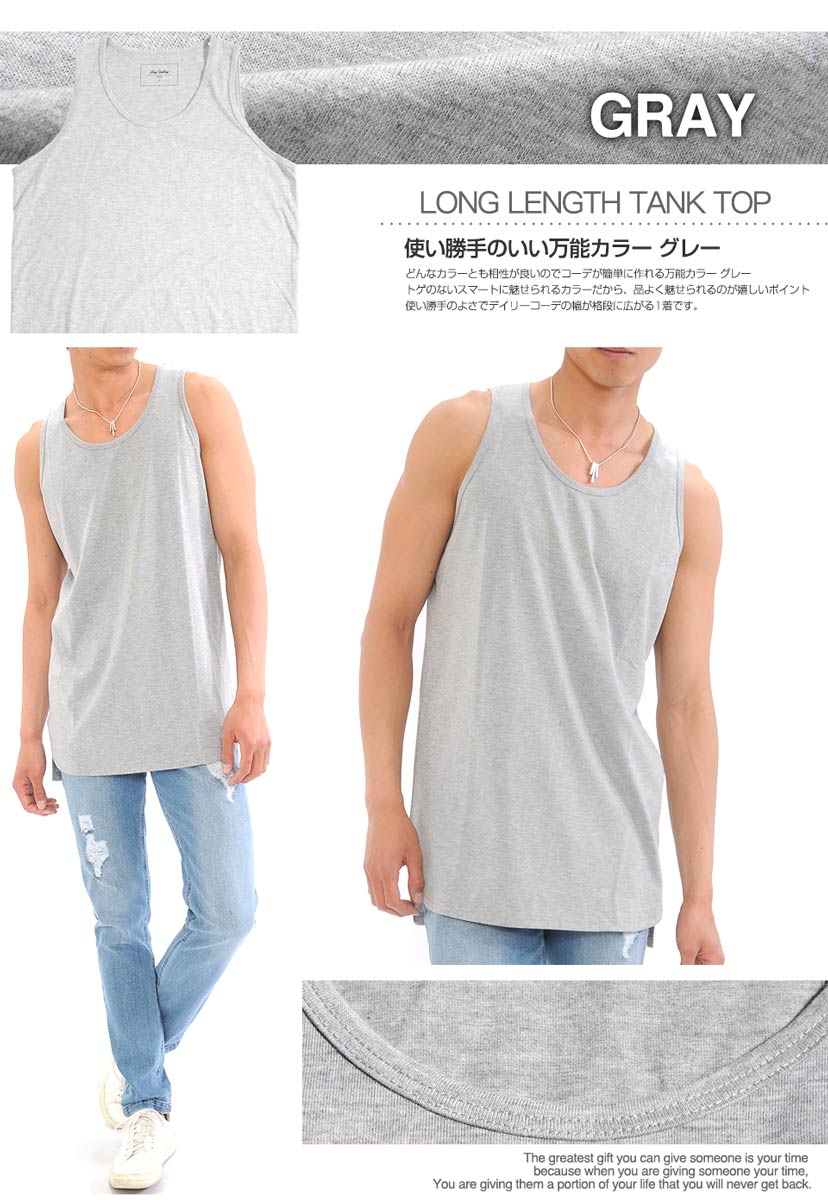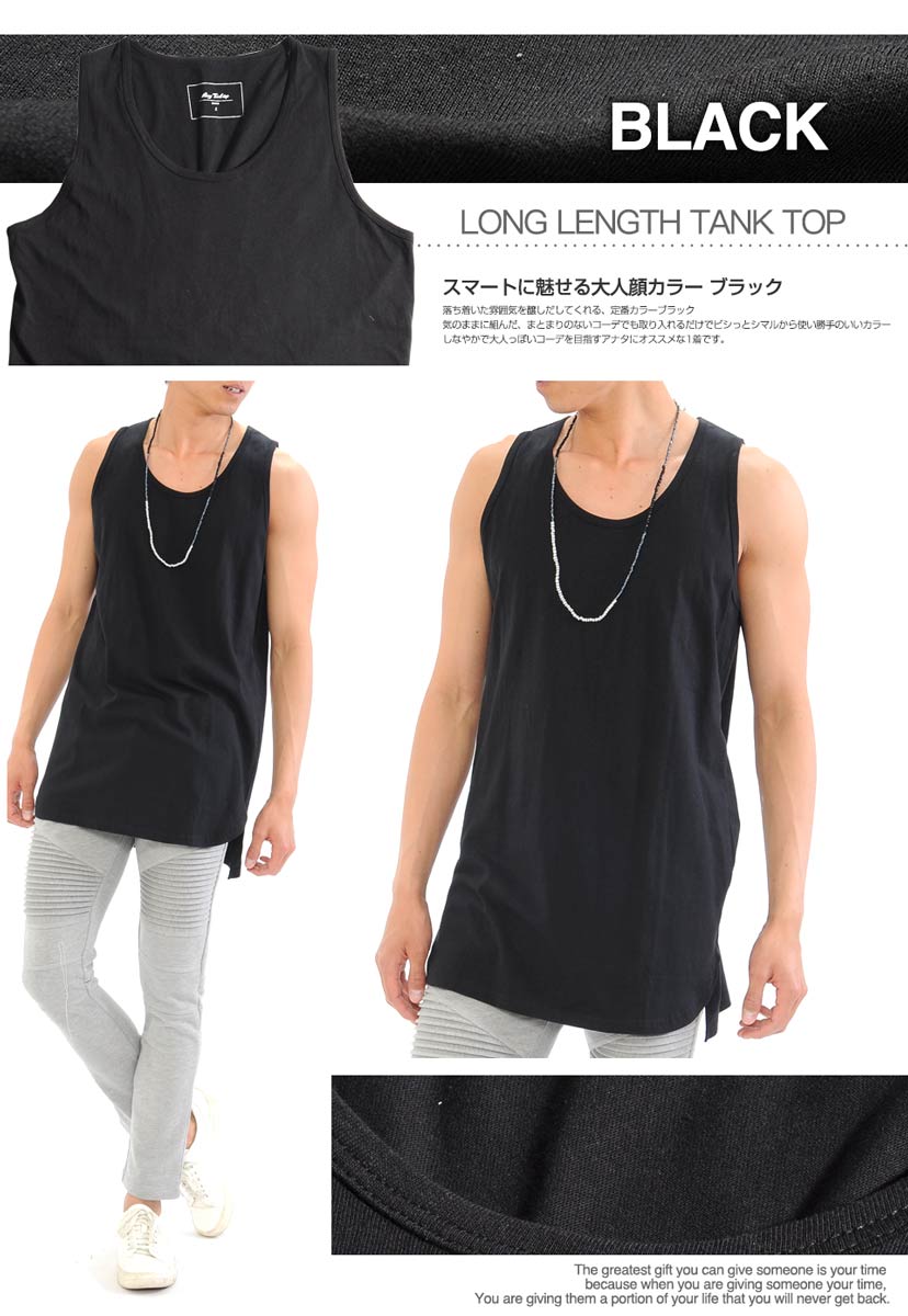 ロングタンクトップ タンクトップ メンズ ロング丈 TANKTOP 黒 白 インナー グレー モノトーンストリート モード ブラック ホワイト 肌着 ノースリーブ