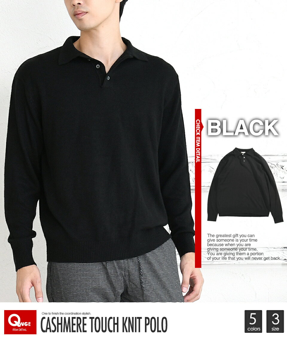 ポロシャツ ニット ポロ 長袖 カシミアタッチ ハイゲージ 無地 上品 春 秋 インナー オシャレ カジュアル 30代 40代 50代
