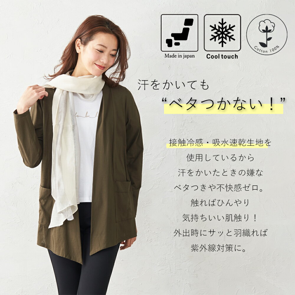 【25%OFFクーポン対象】新色追加【楽天市場1位 】日本製 カーディガン 薄手 日焼け対策 首 レディース 綿 綿100% コットン 春 夏 UV カット トップス ボレロ カットソー 接触冷感 吸水速乾 熱中症対策 jf 3120650