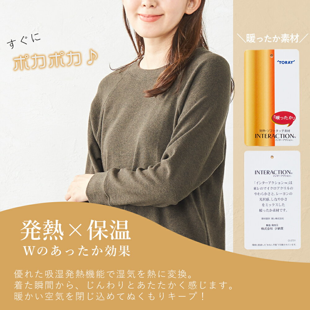 【20%OFFクーポン対象】日本製 東レ 極暖 あったか 暖かい 蓄熱 ラグランスリーブ レディース Tシャツ カットソー プルオーバー トレーナー インナー 長袖 秋 冬 春 フェミニン シンプル 30代 40代 50代 ファッション