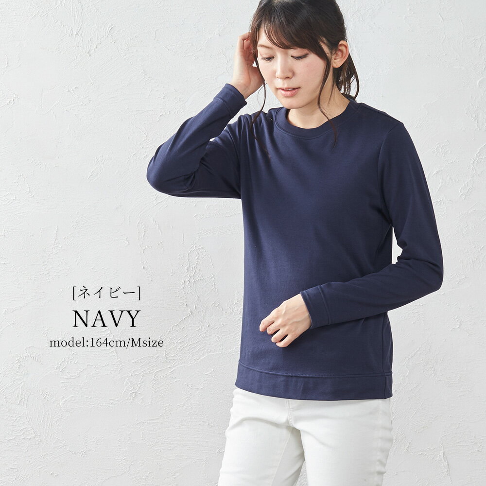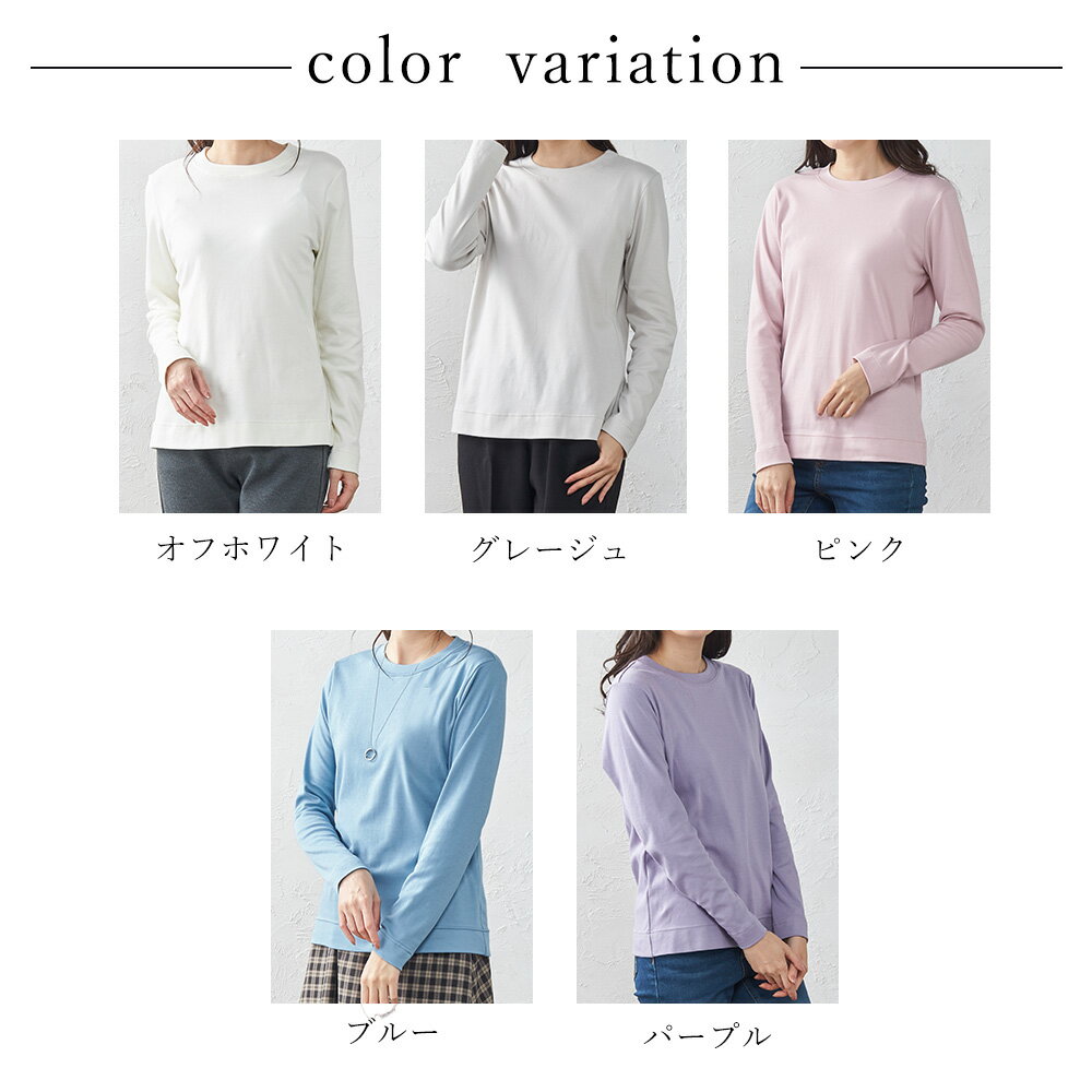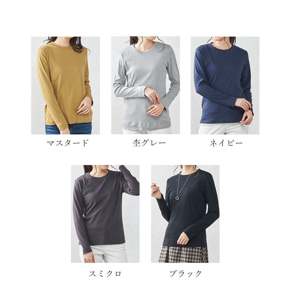 カシミヤタッチ 日本製 Tシャツ フェザーニット レディース 長袖 綿 インナー コットン クルーネック 丸襟 プルオーバー 女性 綿100% 30代 40代 50代 ファッション トップス カットソー 春 夏 綿 大きいサイズ 体型カバー アルモニ