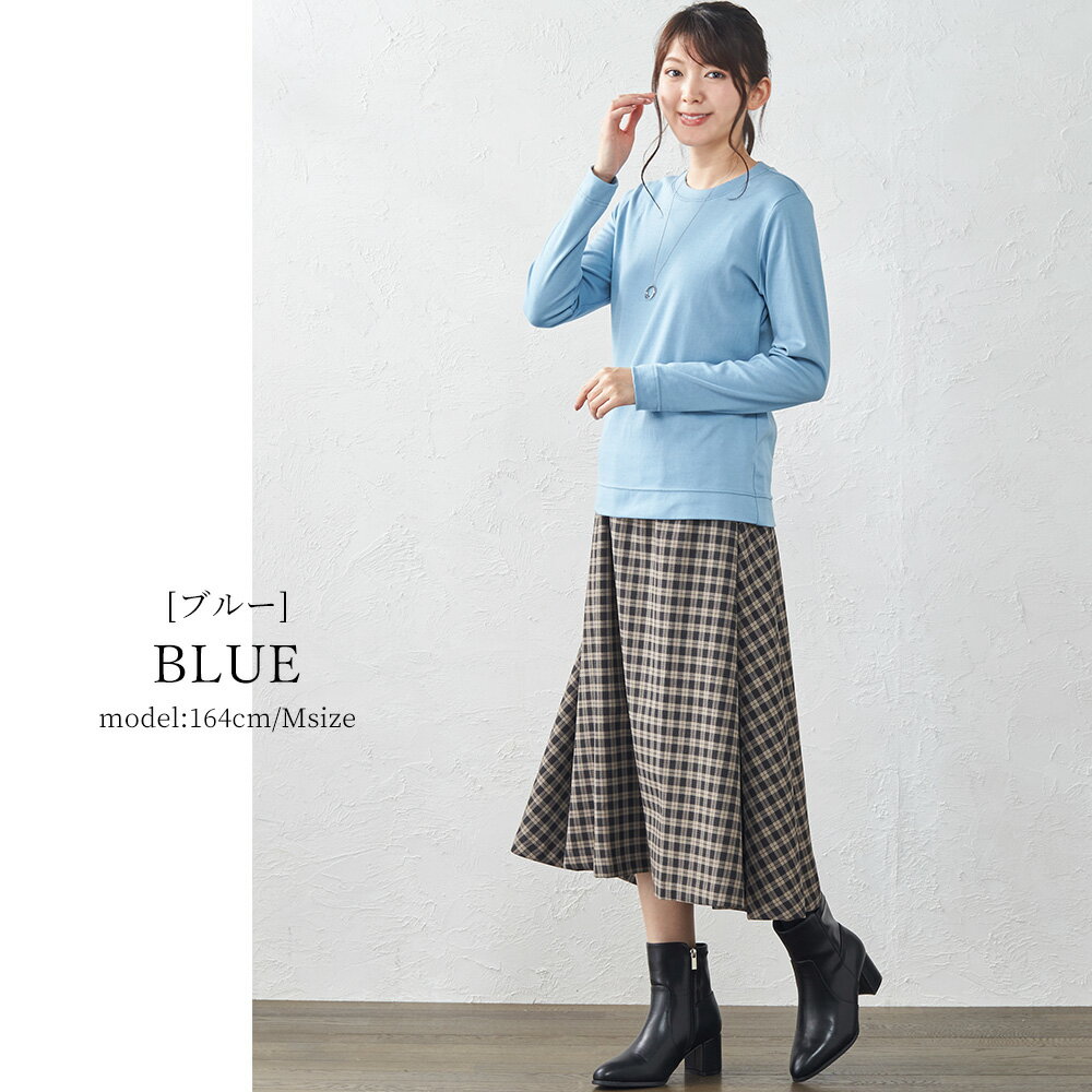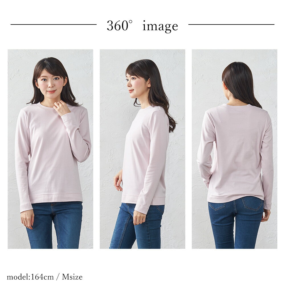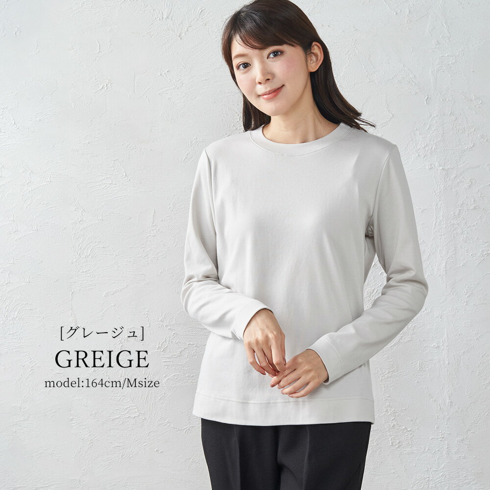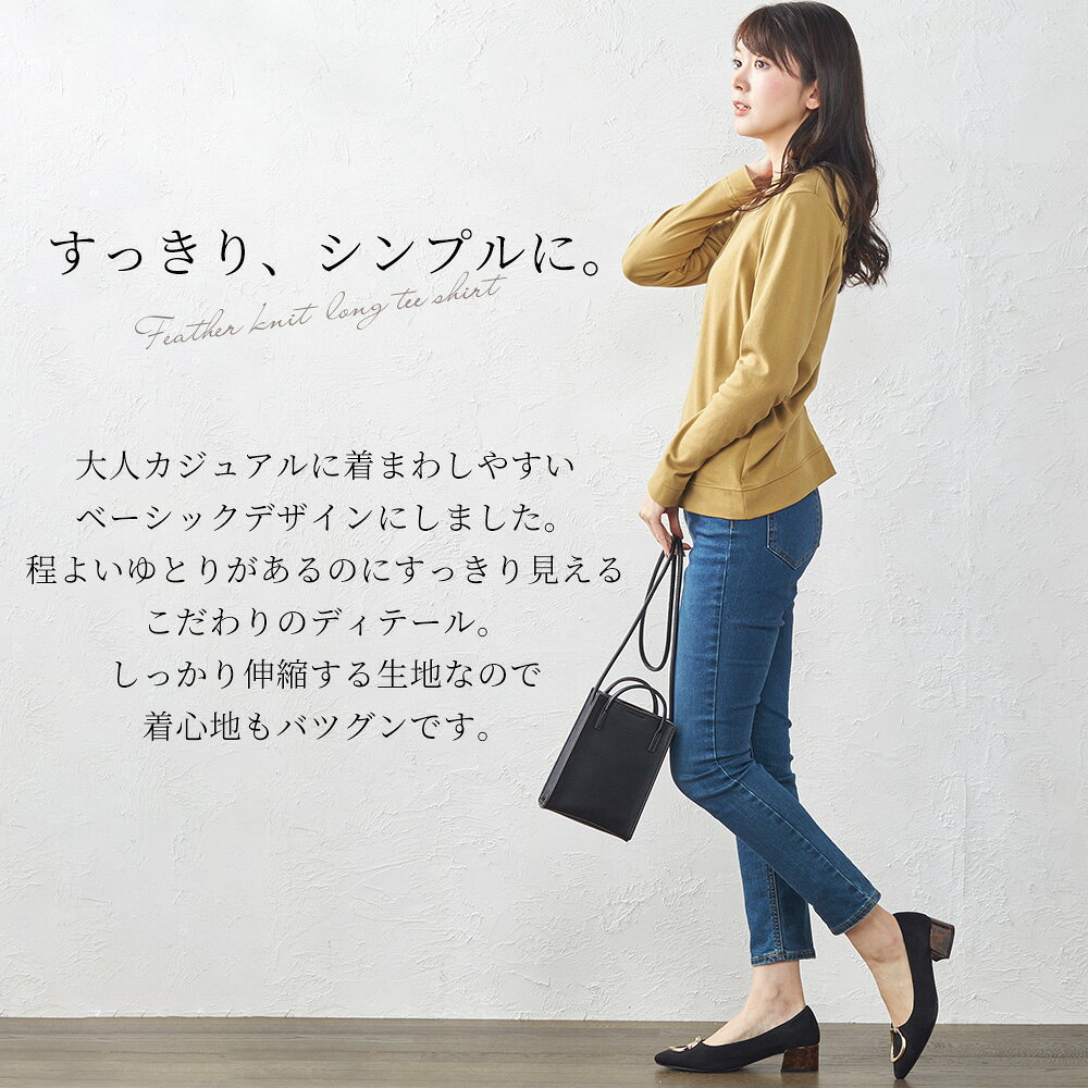 カシミヤタッチ 日本製 Tシャツ フェザーニット レディース 長袖 綿 インナー コットン クルーネック 丸襟 プルオーバー 女性 綿100% 30代 40代 50代 ファッション トップス カットソー 春 夏 綿 大きいサイズ 体型カバー アルモニ