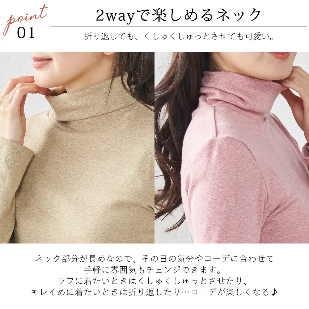 【スーパーセール★30%OFF】日本製 オーガニックコットン ハイネック レディース 綿100 タートルネック レディース カットソー 長袖 レディース トップス カットソー 大きいサイズ 無地 M L LL 3L 40代 50代 ハイネック 4190722