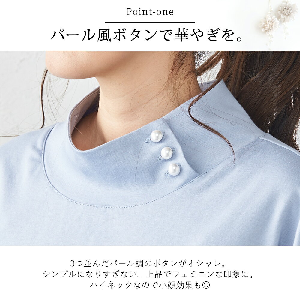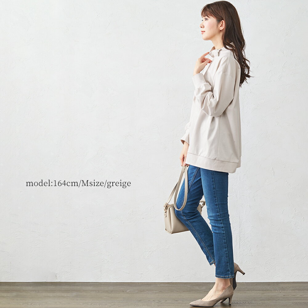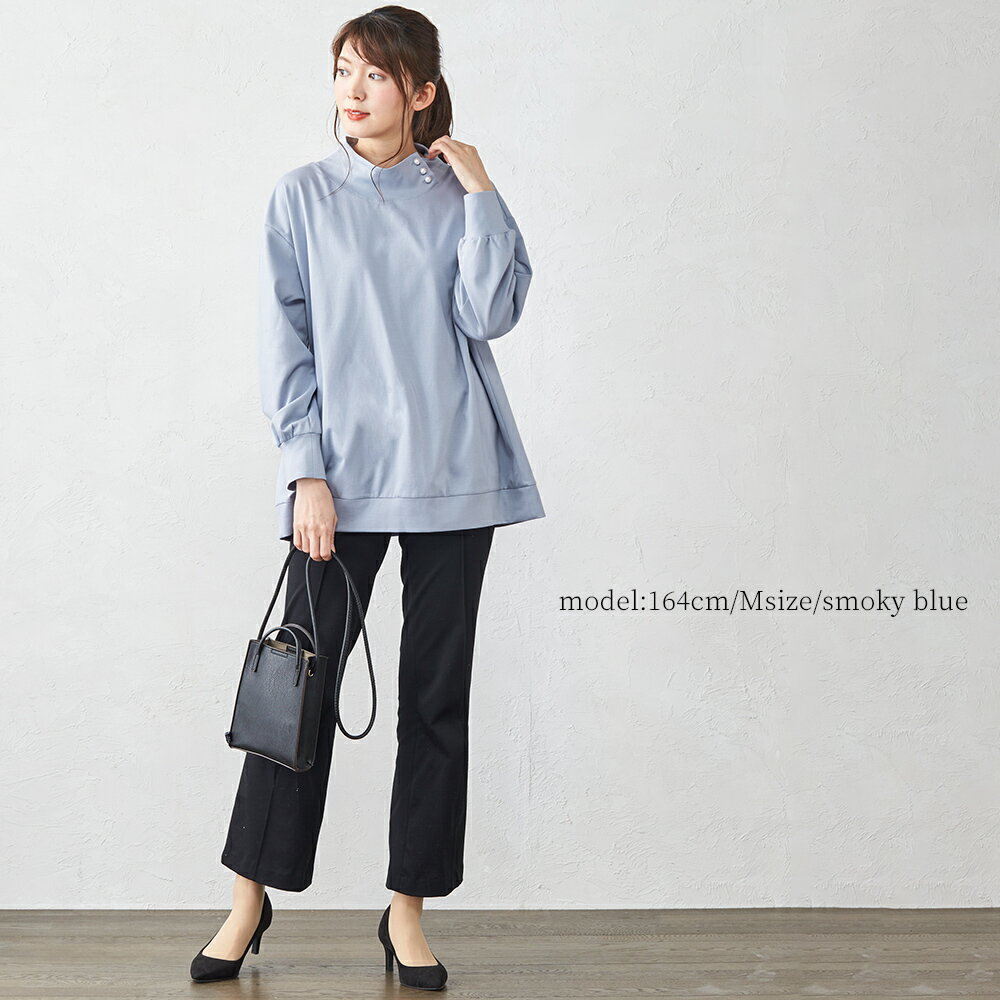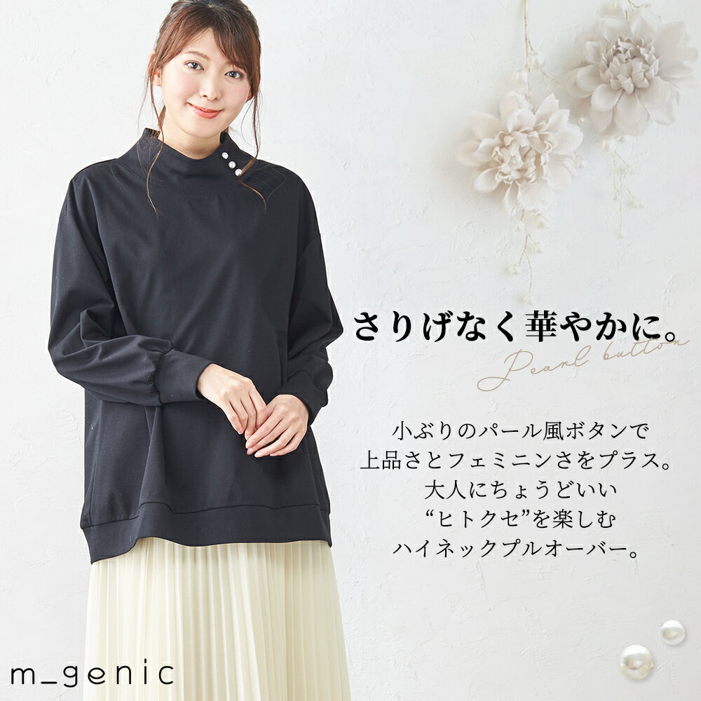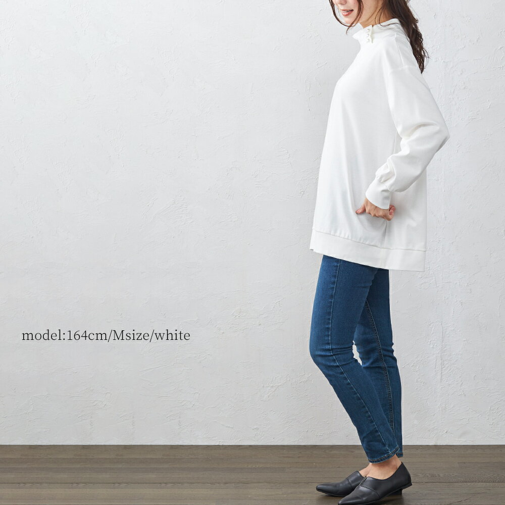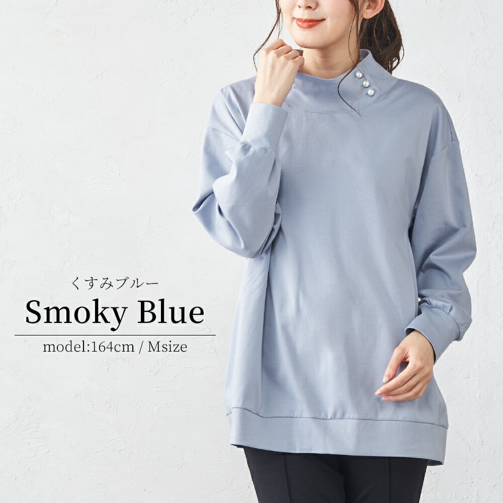 日本製 オーガニックコットン 高見え パール 付き ワンポイント 衿付き ポンチトレーナー プルオーバー 長袖 綿100% 30代 40代 50代 60代 ファッション カジュアル 大人可愛い スウェット 大きめ