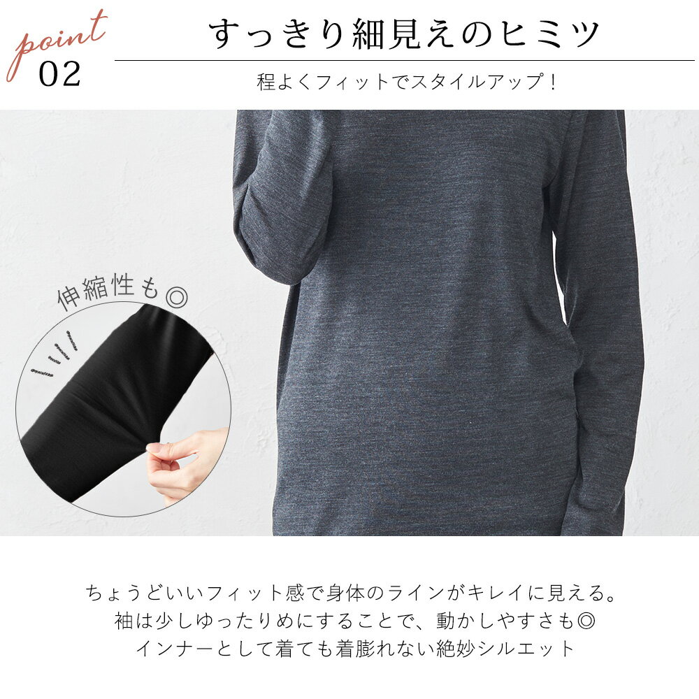 日本製 メリノウール 毛 タートルネック 長袖 レディース ベースレイヤー 登山 ハイネック 長袖tシャツ トップス インナー ウール 40代 50代 冬 秋 春 カットソー Tシャツ あったか 暖かい 無地 カットソー アンダーウェア シャツ