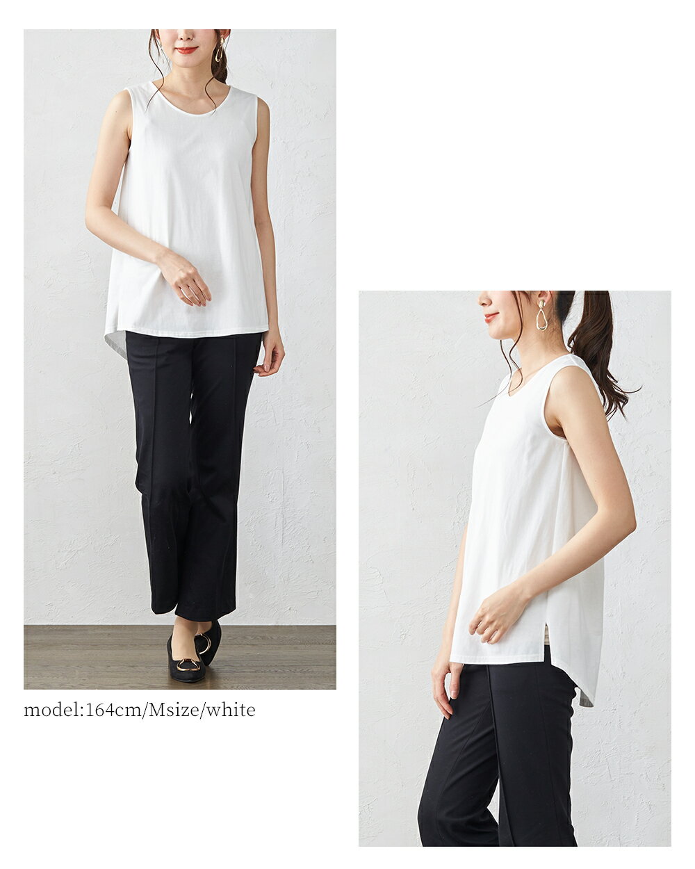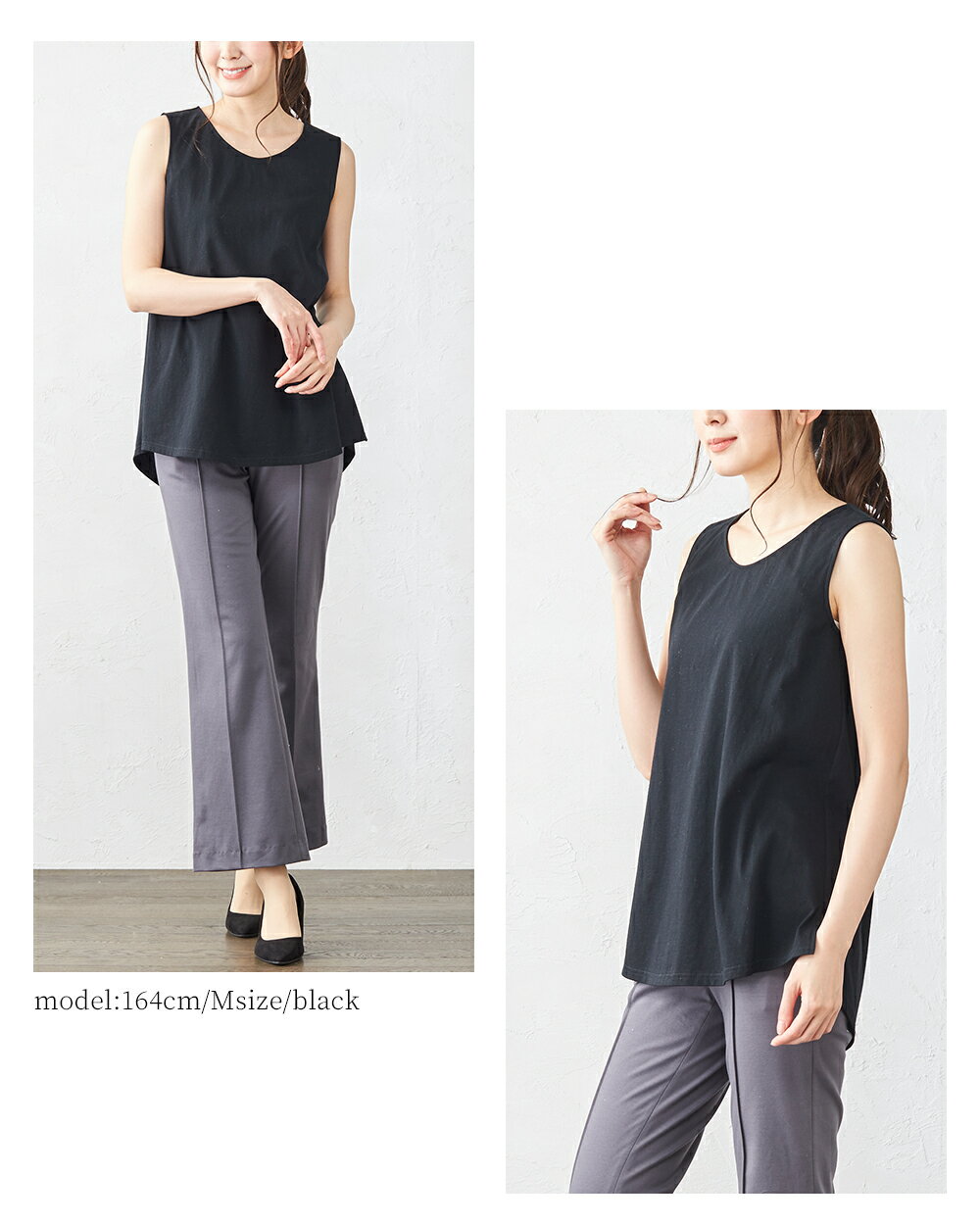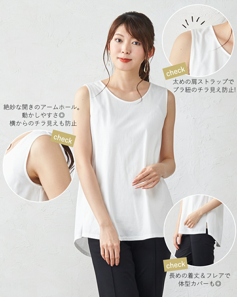 【平和な世界へ】オーガニックコットン 日本製 フレア タンクトップ ロング丈 レディース キャミソール ブラ紐を隠せるインナー ブラ紐隠し 綿 綿100% コットン レイヤード 重ね着 黒 白 ホワイト ブラック 30代 40代 50代