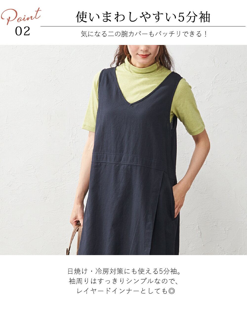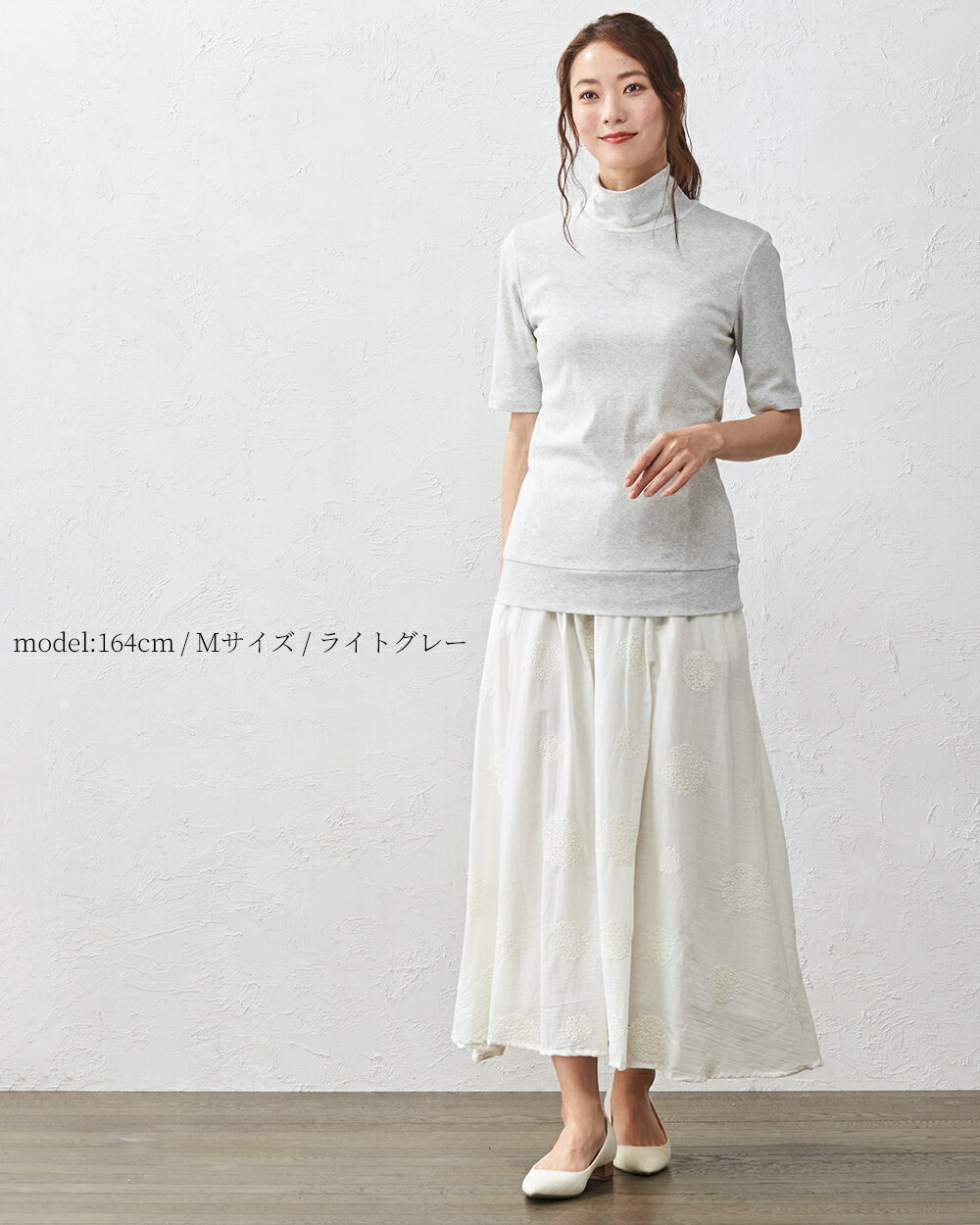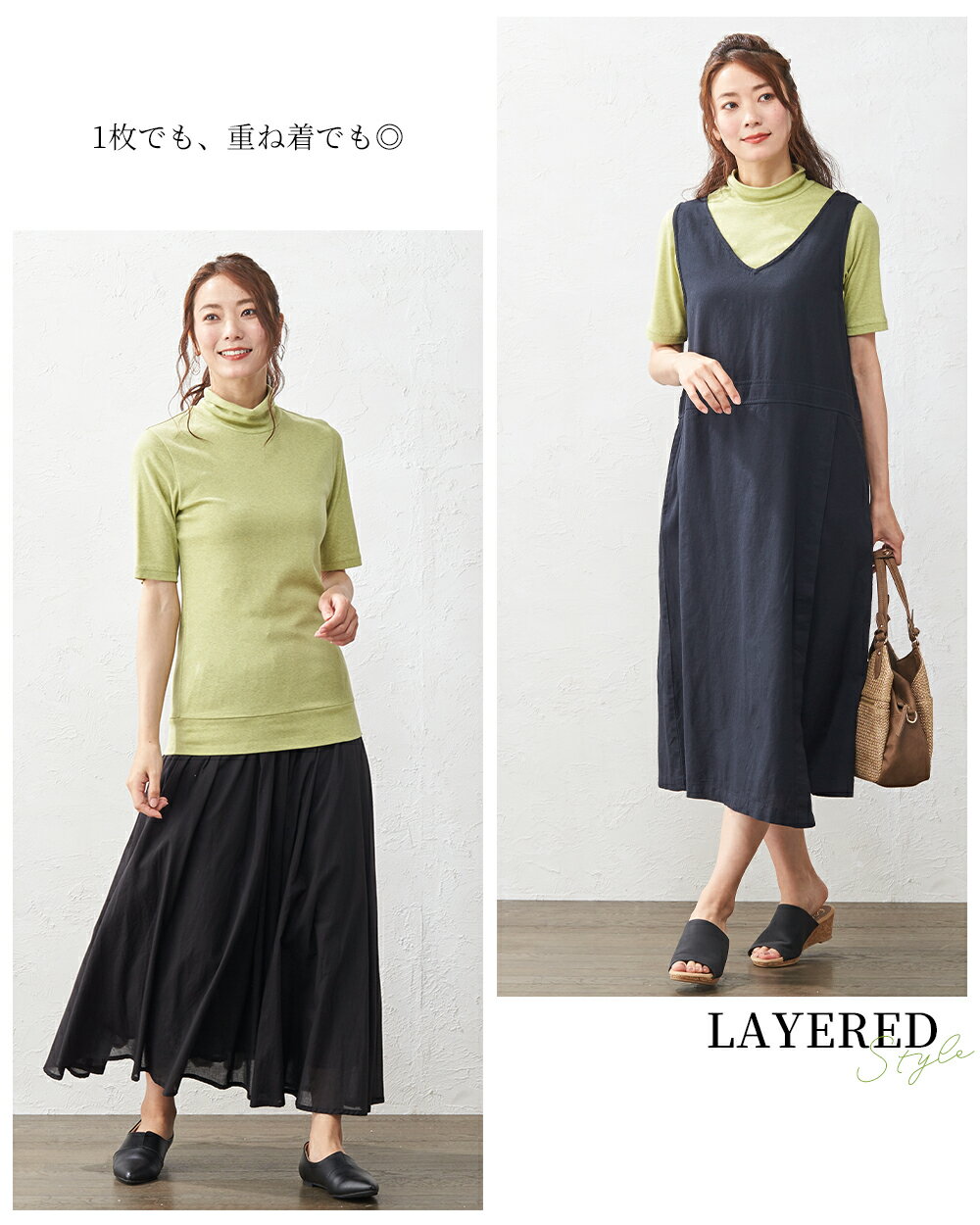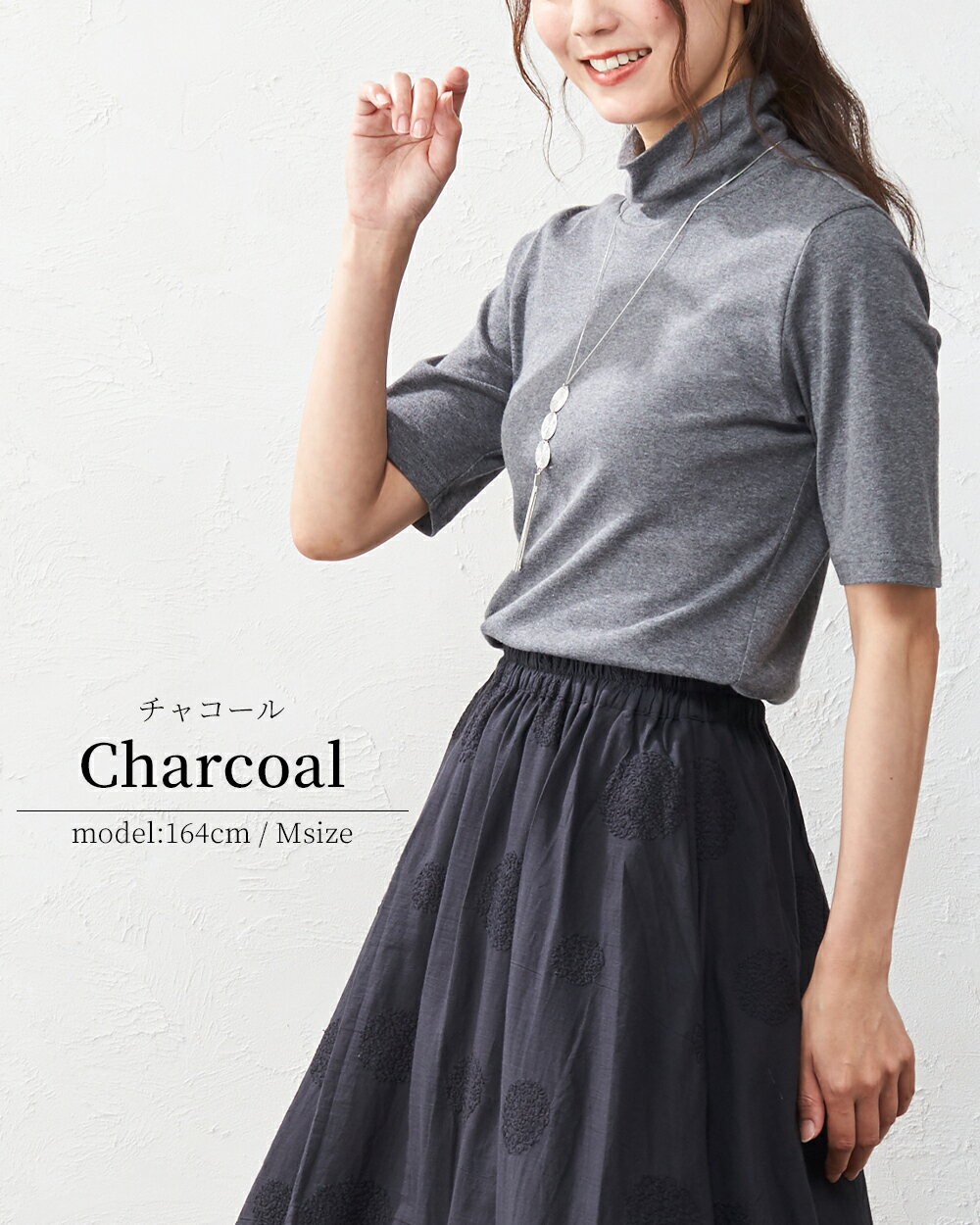 日本製 オーガニックコットン フライス ハイネック モックネック レディース トップス カットソー Tシャツ インナー 半袖 5分袖 春夏 綿 コットン 二の腕 体型カバー 洗える きれいめ ベーシック オフィス 事務服