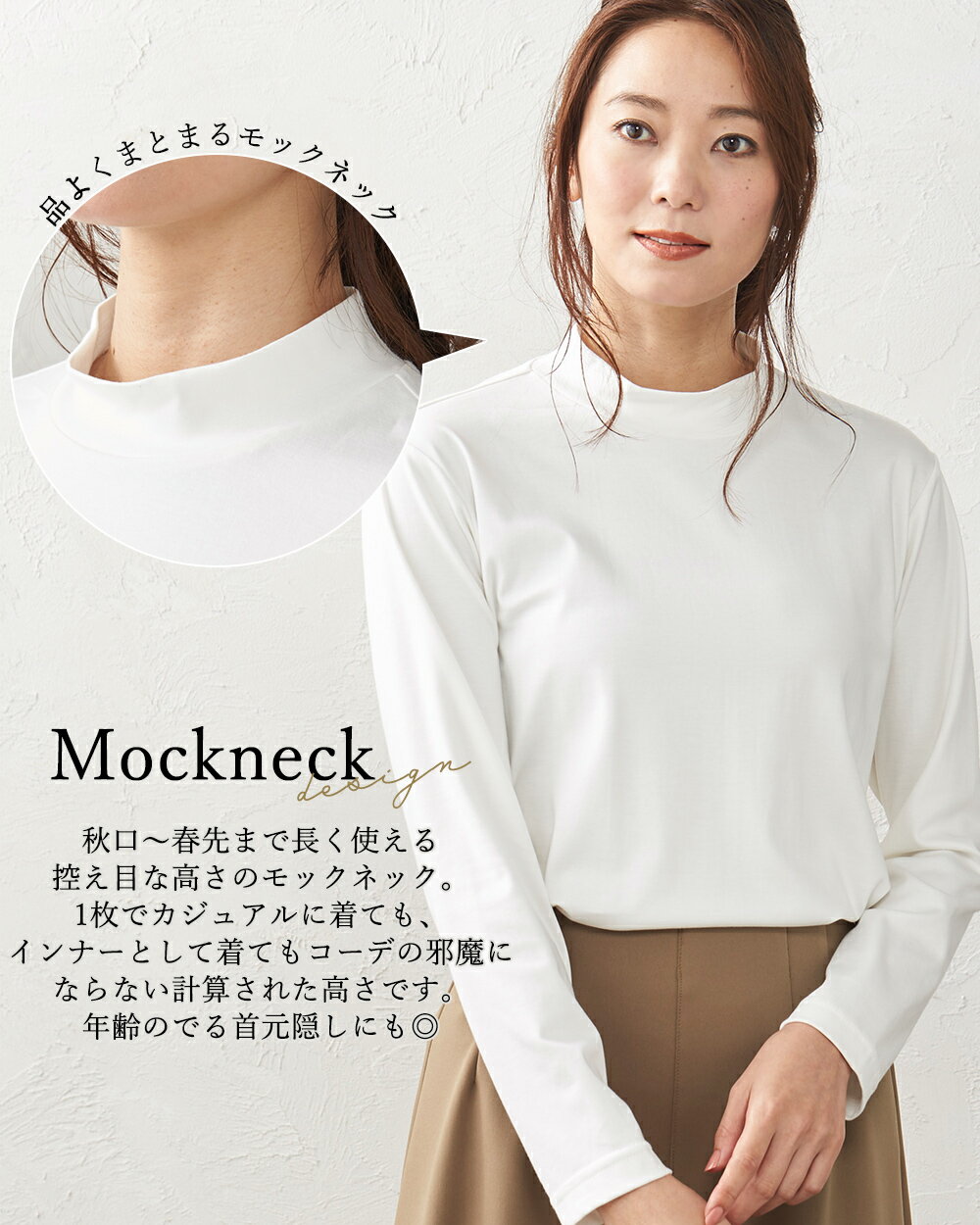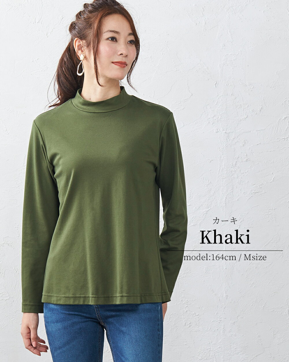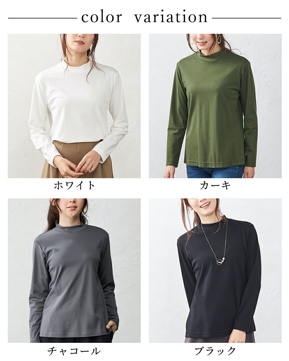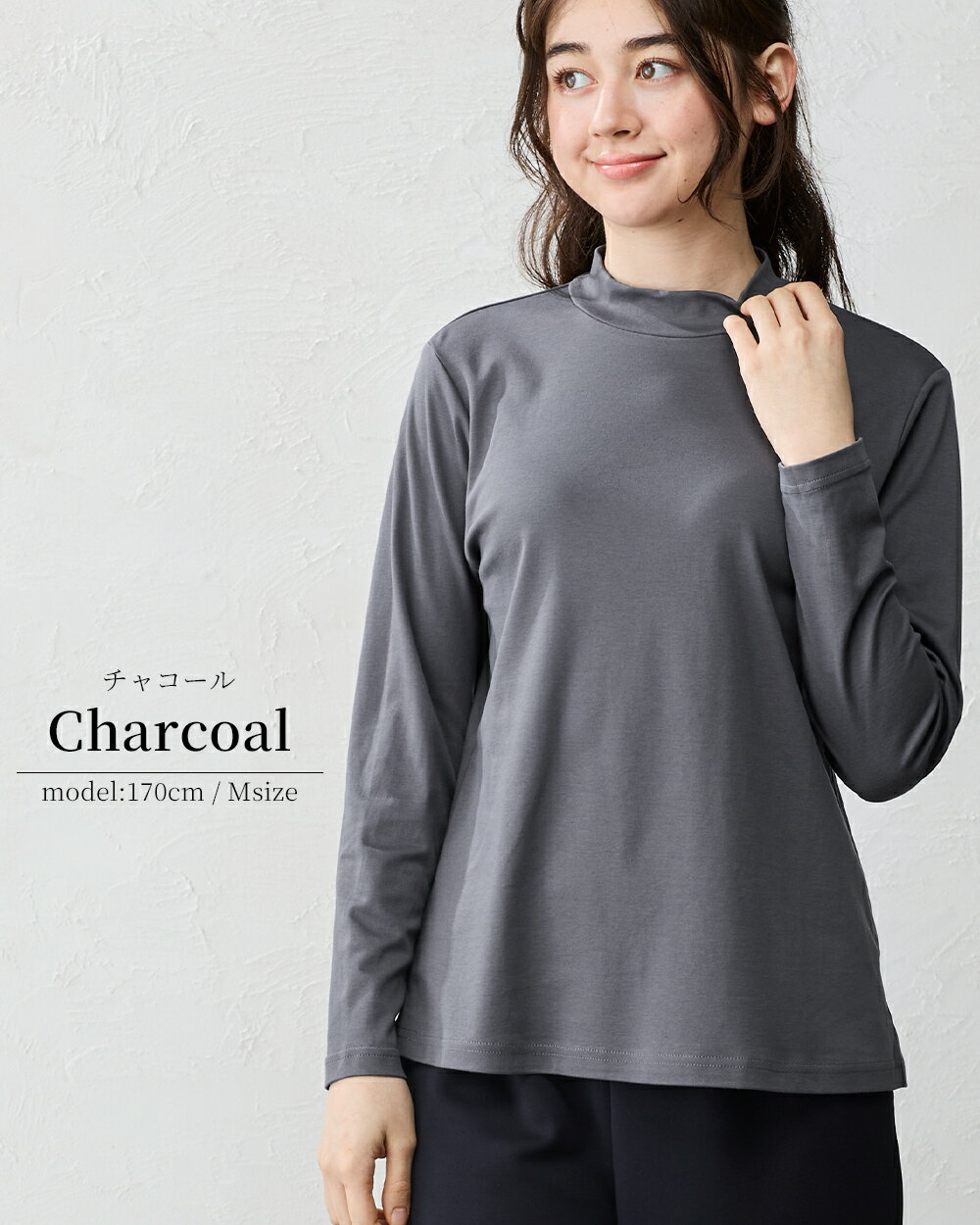 綿の宝石 スビンコットン 日本製 極上の肌触り モックネック Tシャツ レディース 綿 コットン 綿100% 長袖 カットソー トップス 無地 シンプル インナー 大きいサイズ 無地 M L LL レディース スタンド 立ち襟 綿 超長綿