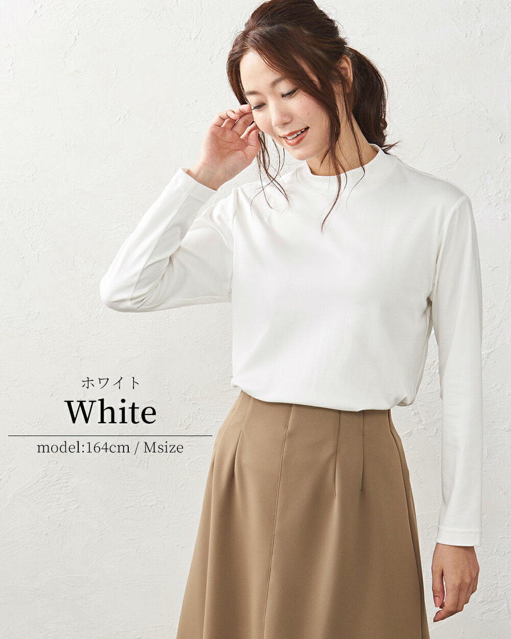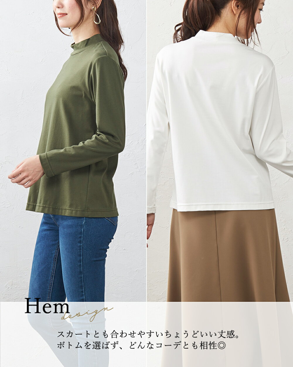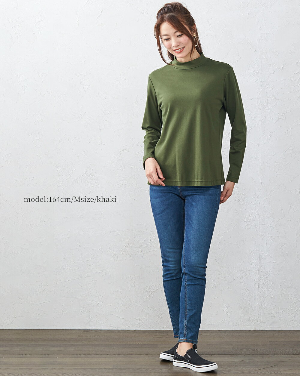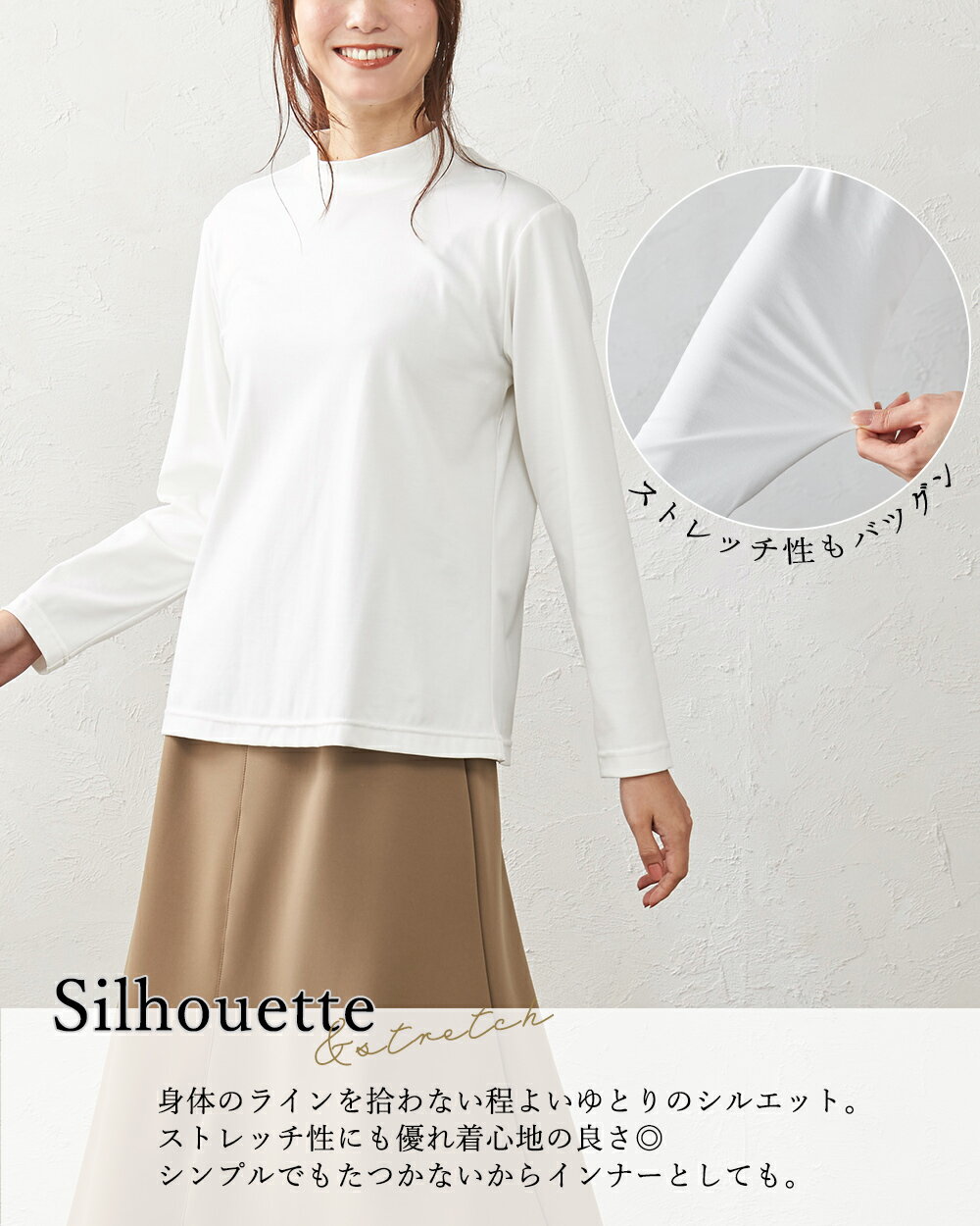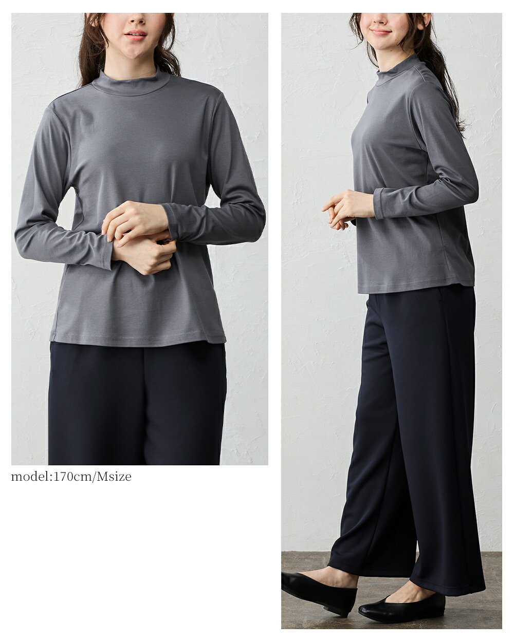綿の宝石 スビンコットン 日本製 極上の肌触り モックネック Tシャツ レディース 綿 コットン 綿100% 長袖 カットソー トップス 無地 シンプル インナー 大きいサイズ 無地 M L LL レディース スタンド 立ち襟 綿 超長綿