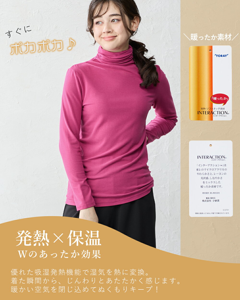 【25%OFFクーポン対象】【あったか素材】日本製 東レ インターアクション Tシャツ 起毛 タートルネック レディース ハイネック 長袖 カットソー インナー 秋 冬 春 あったか 防寒 トップス Tシャツ 登山 ふわふわ 暖かい 冬服 ゆったり 30代 40代 50代 裏起毛