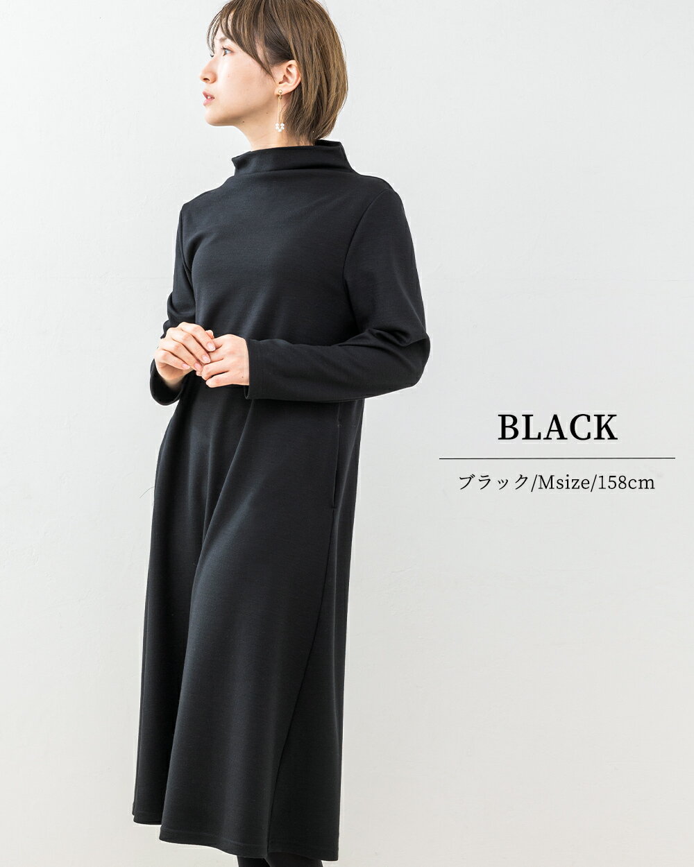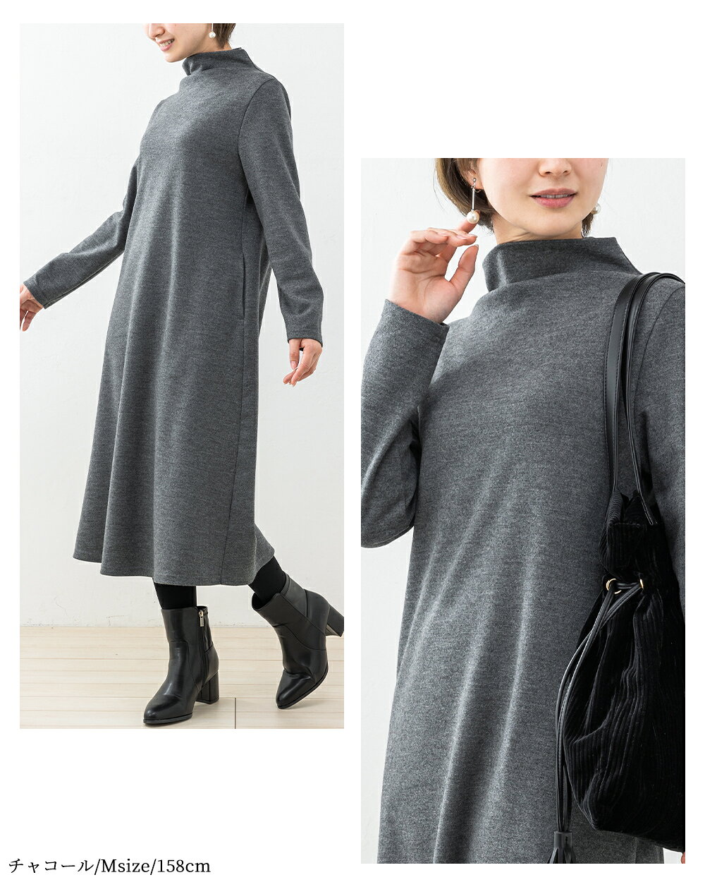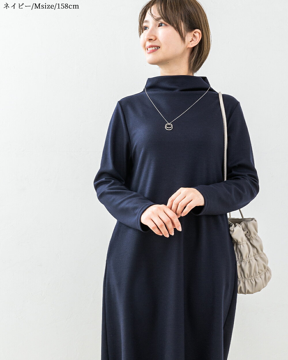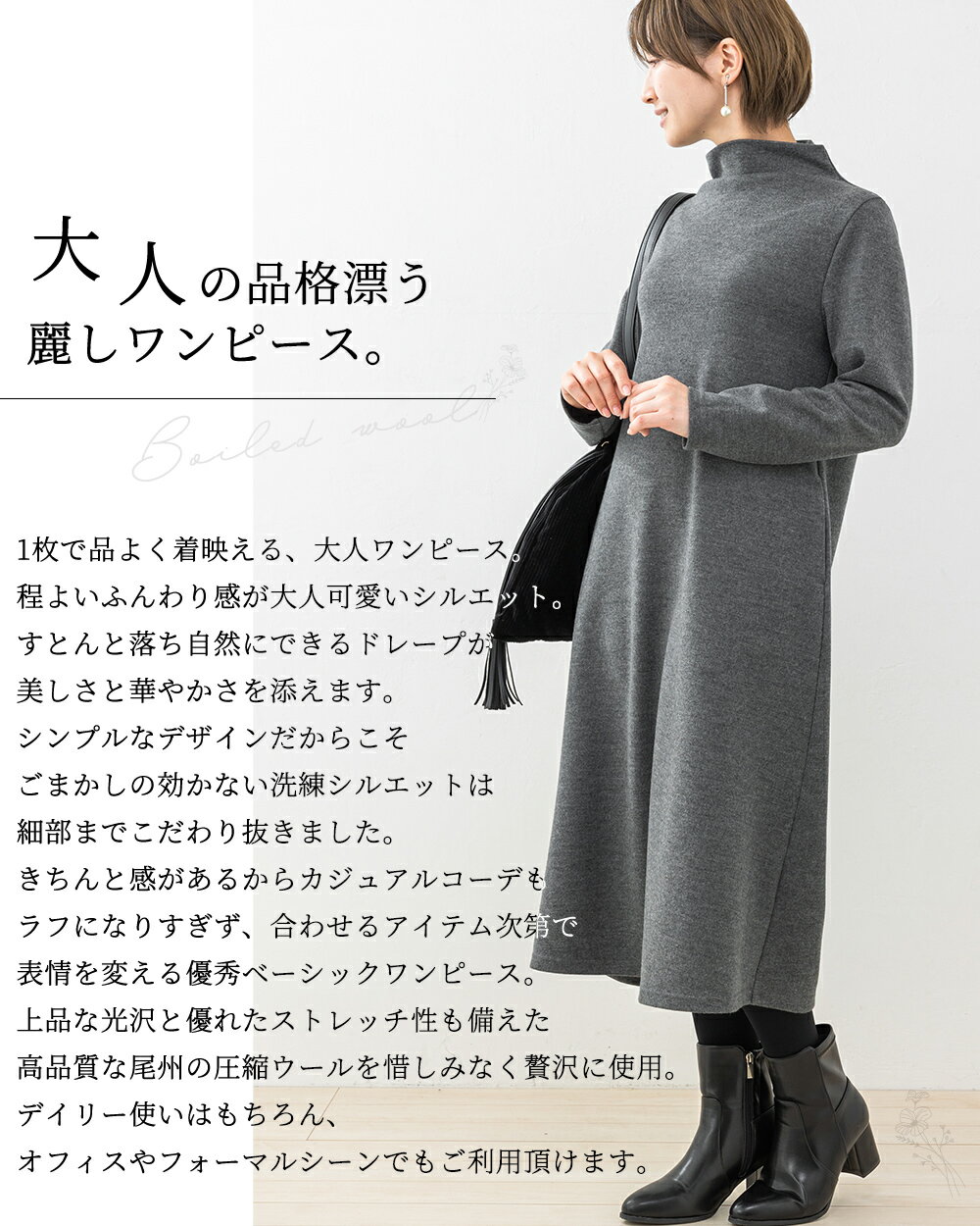 【JAMES JERSEY】日本製 メリノウール 圧縮ニット ワンピース 秋冬 レディース 大人 きれいめ ハイネック 40代 50代 60代 30代 女性 ファッション 長袖 ウール100% ゆったり 秋 冬 入学式 卒業式 フォーマル 毛