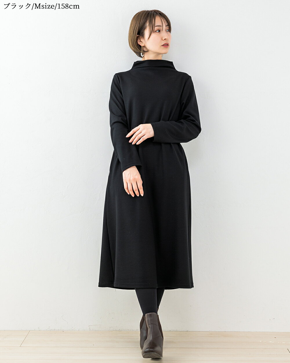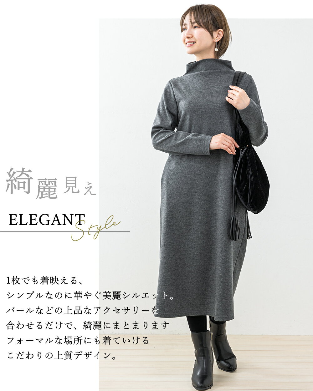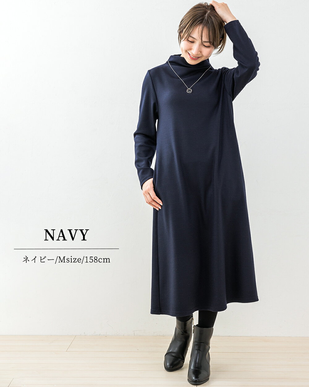 【JAMES JERSEY】日本製 メリノウール 圧縮ニット ワンピース 秋冬 レディース 大人 きれいめ ハイネック 40代 50代 60代 30代 女性 ファッション 長袖 ウール100% ゆったり 秋 冬 入学式 卒業式 フォーマル 毛