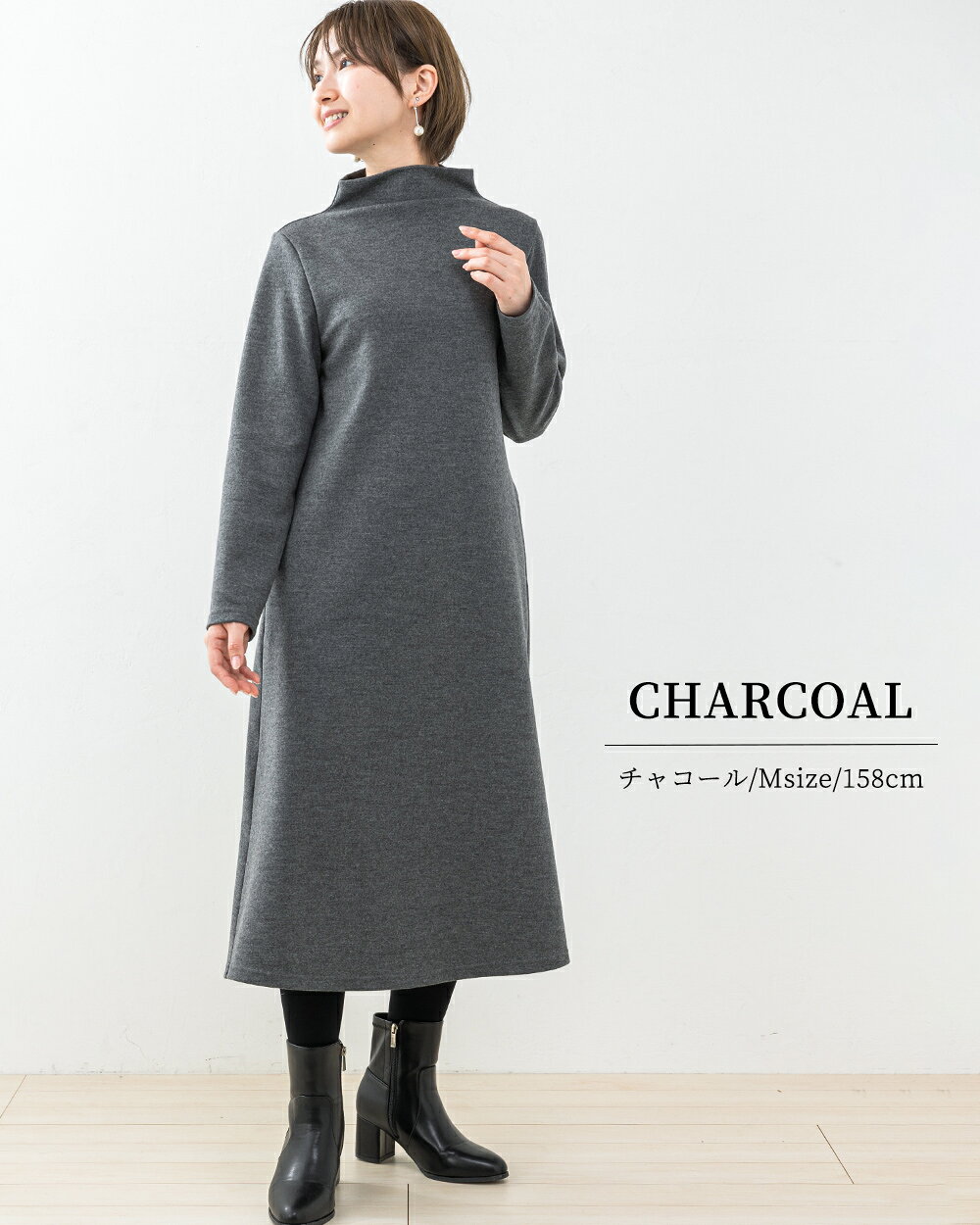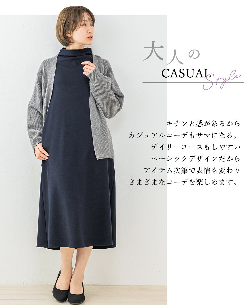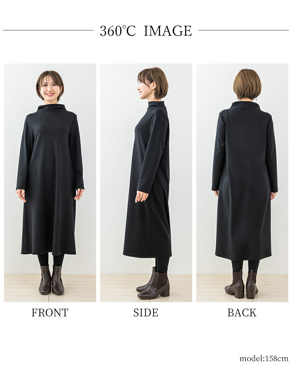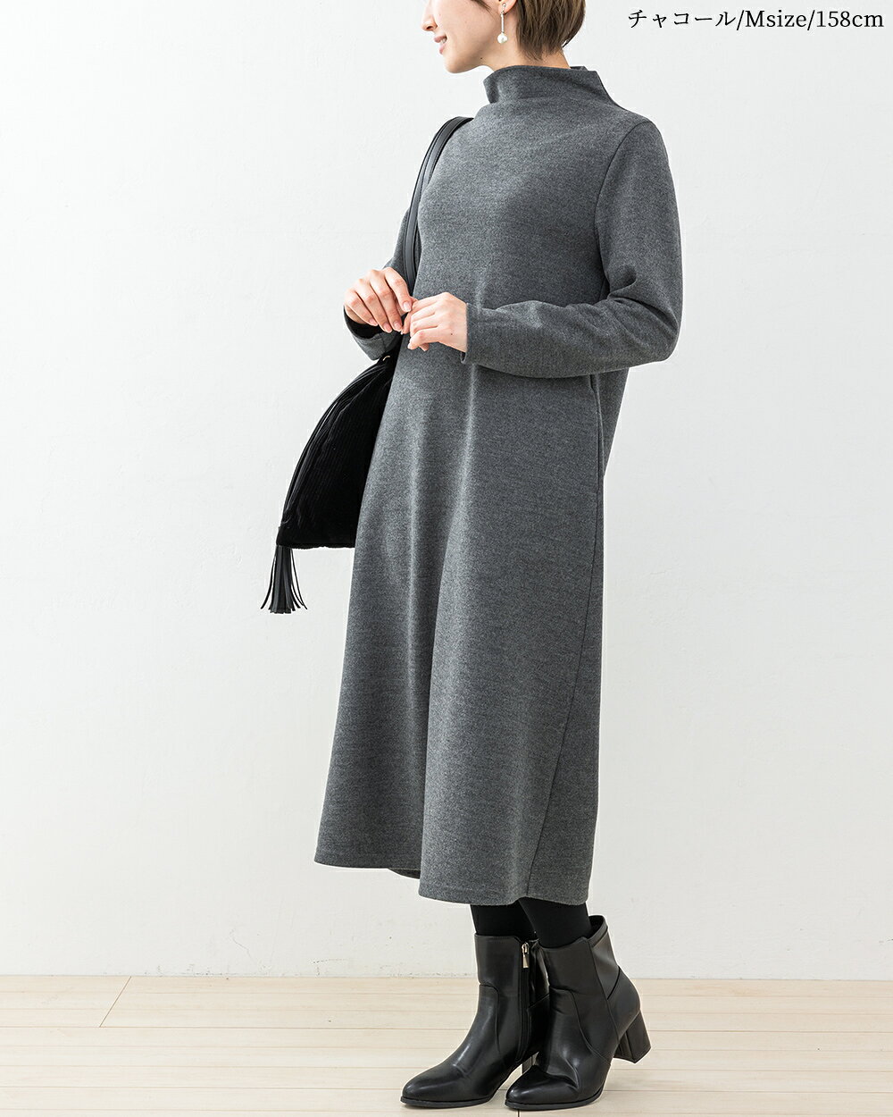 【JAMES JERSEY】日本製 メリノウール 圧縮ニット ワンピース 秋冬 レディース 大人 きれいめ ハイネック 40代 50代 60代 30代 女性 ファッション 長袖 ウール100% ゆったり 秋 冬 入学式 卒業式 フォーマル 毛