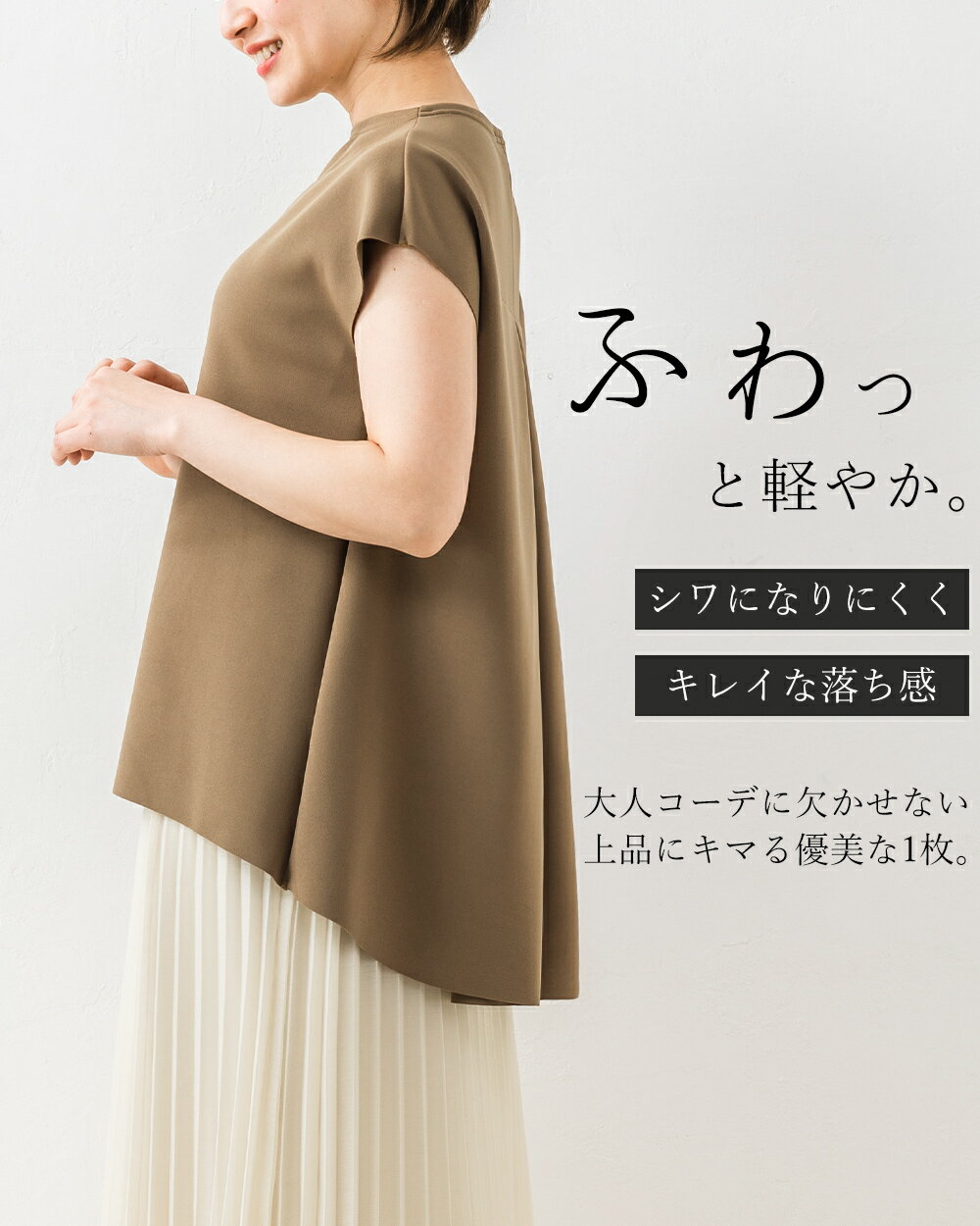 皺知らず お手入れ簡単 日本製 オールシーズン着用出来る プルオーバー ベスト レディース トップス カットソー チュニック 40代 50代 60代 洗える イージーケア お尻が隠れる 春 夏 秋 冬 ベージュ ブラック