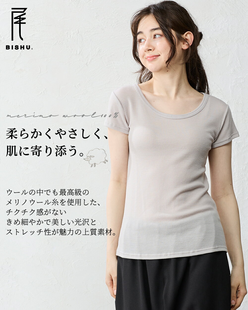 日本製 いつでも快適 メリノウール テレコジャージ 毛 クルーネック 半袖 レディース ベースレイヤー 登山 tシャツ トップス インナー ウール100% 30代 40代 50代 冬 秋 春 カットソー Tシャツ 暖かい