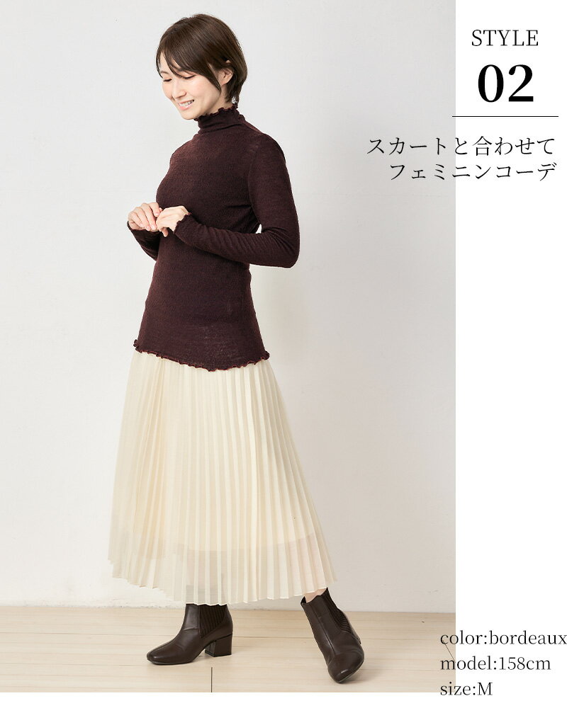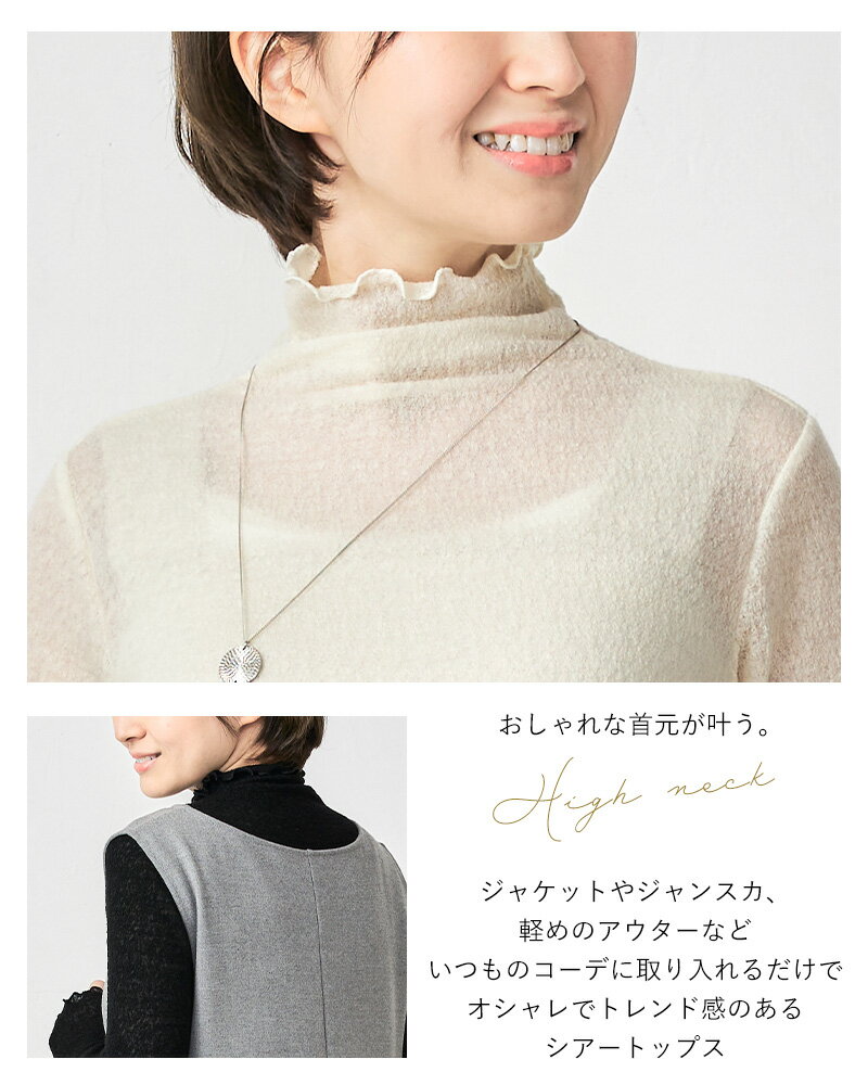 日本製 メリノウール シアー カットソー 春 秋 シャツ シースルー ハイネック 長袖 Tシャツ トップス インナー 透け感 薄手 重ね着 秋冬 オールシーズン 30代 40代 50代 60代 ファッション メッシュトップス シアートップス