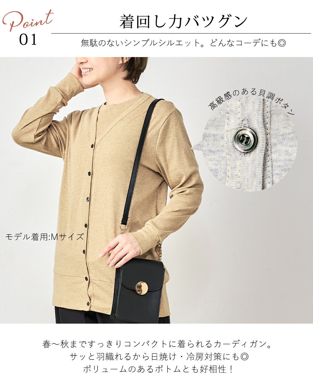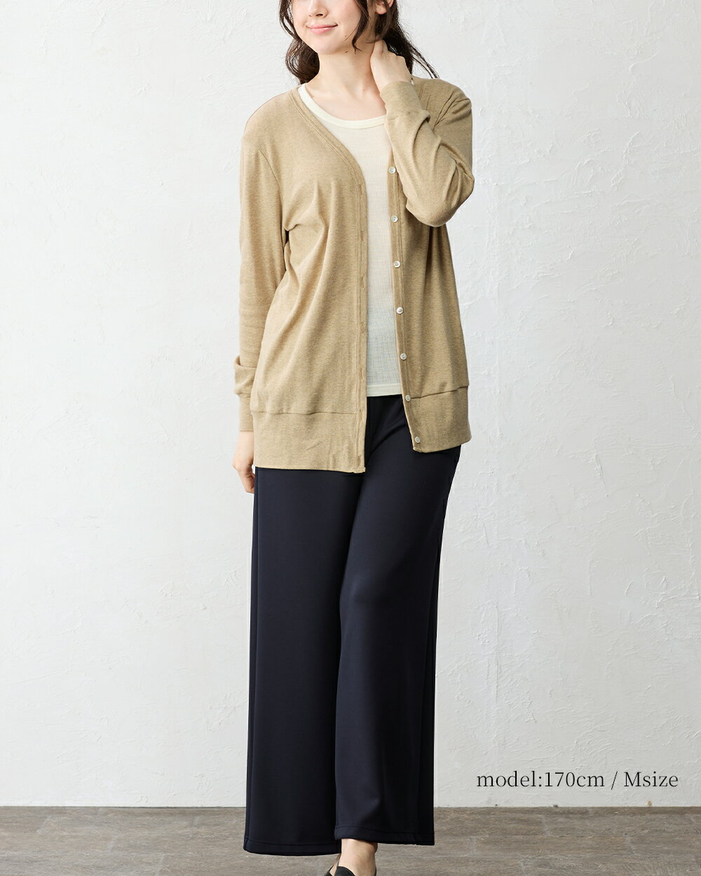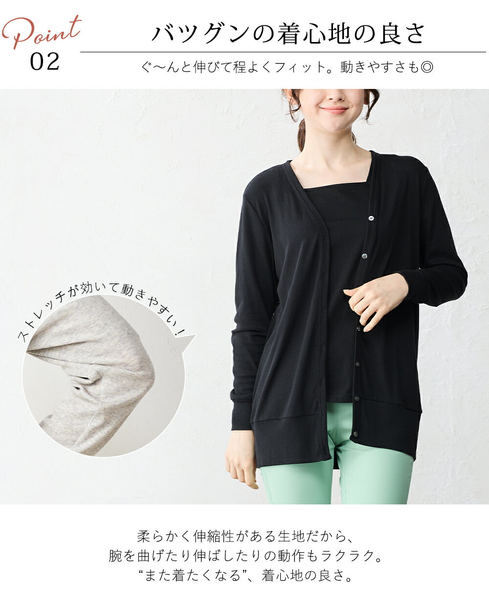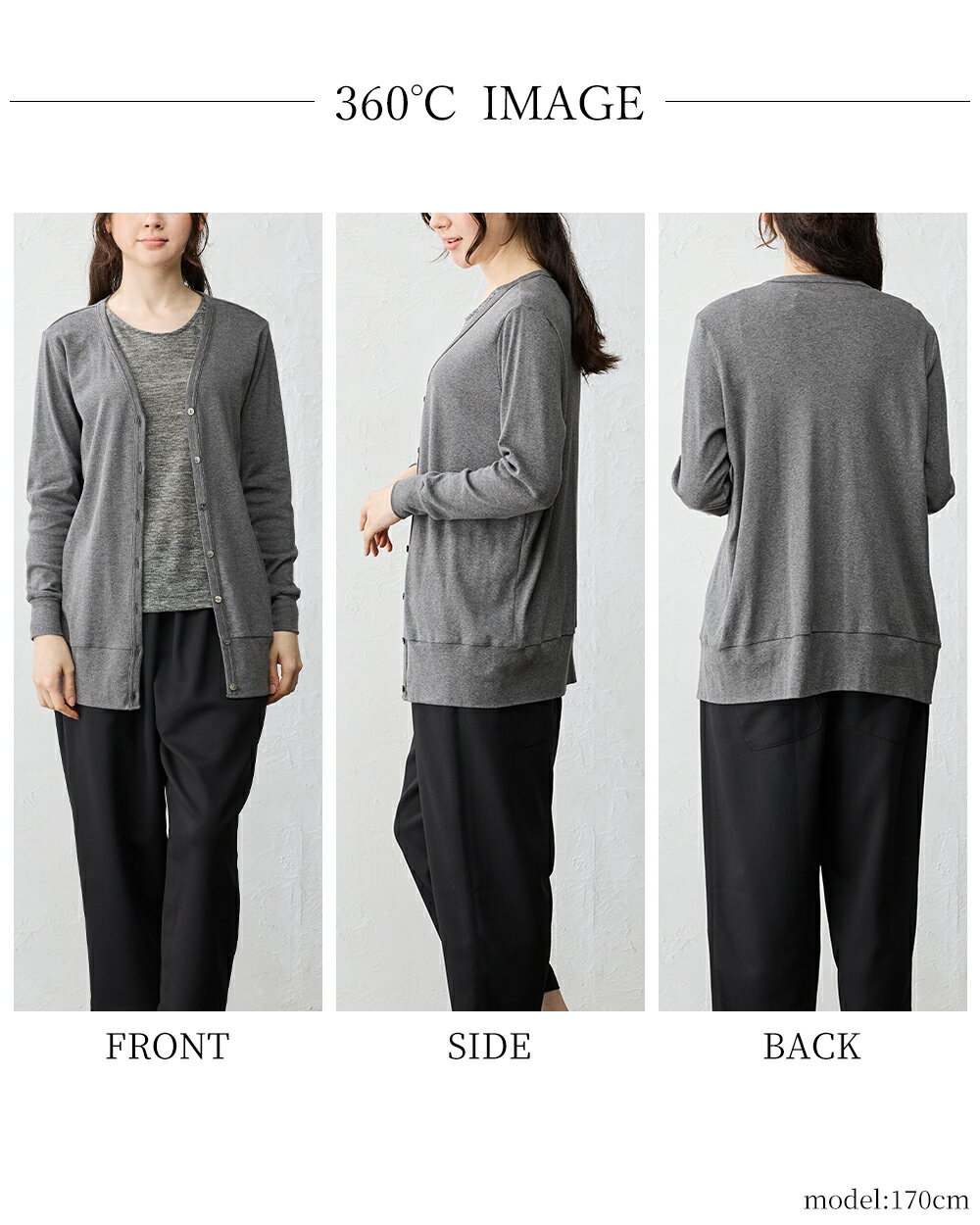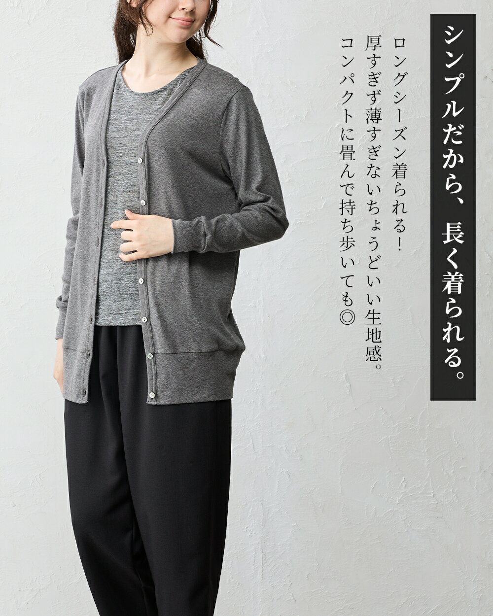カーディガン レディース 秋 秋冬 長袖 秋色 オーガニックコットン 綿 綿100 羽織り 冷房対策 日本製 トップス アウター 長袖 クルーネック 綿 黒 ブラック UVカット オフィス 冷房 大人 ミセス きれいめ 紫外線対策 ロング