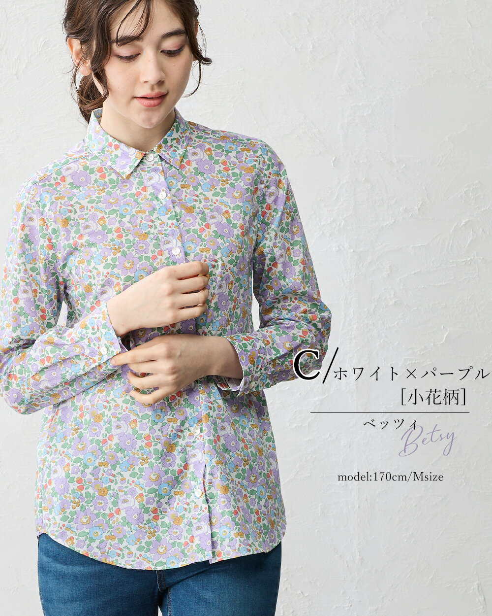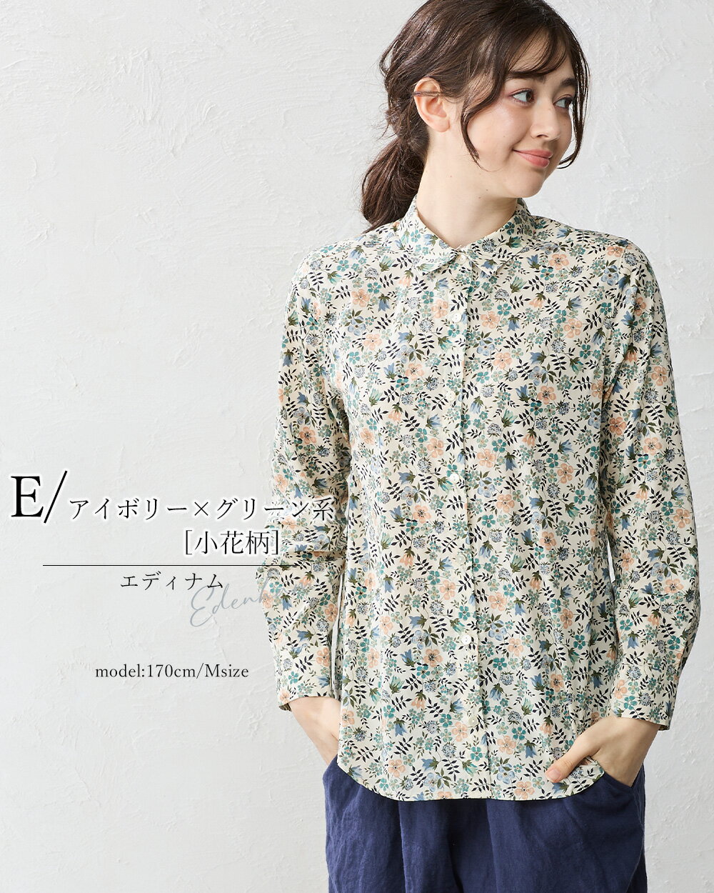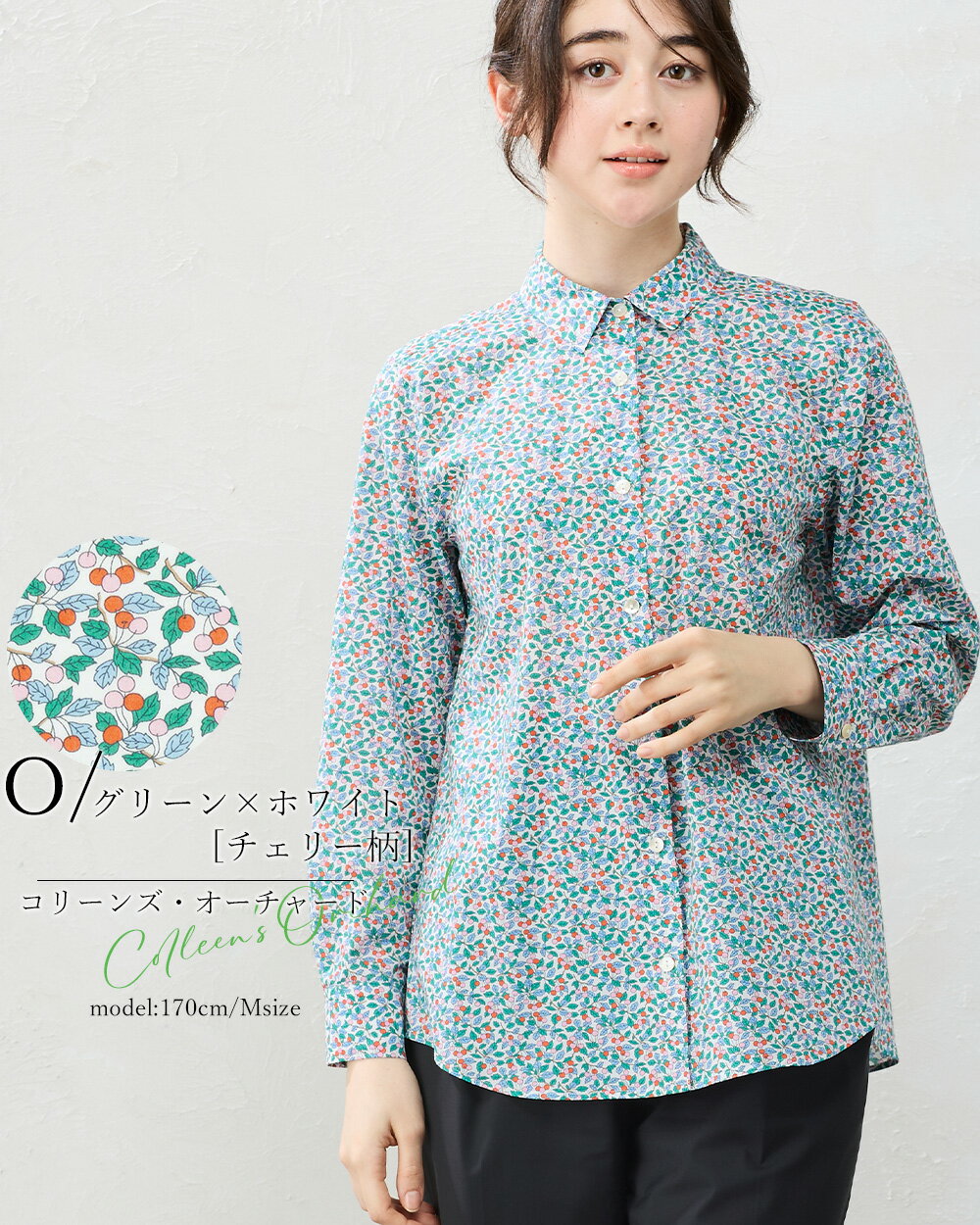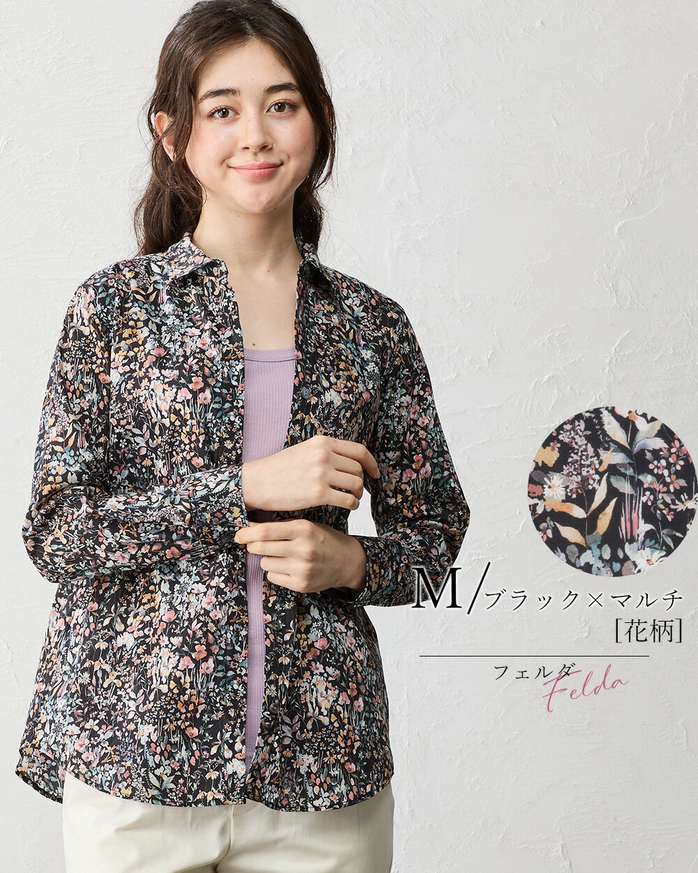 リバティ LIBERTY シャツ 日本製 花柄 フラワー 草花 ボタニカル プリント 綿100% コットン 綿 シャツ ブラウス 羽織 2way 重ね着 レイヤード 長袖 ファッション レディース 女性 フォーマル お出かけ 春 冬 秋 トップス カジュアル