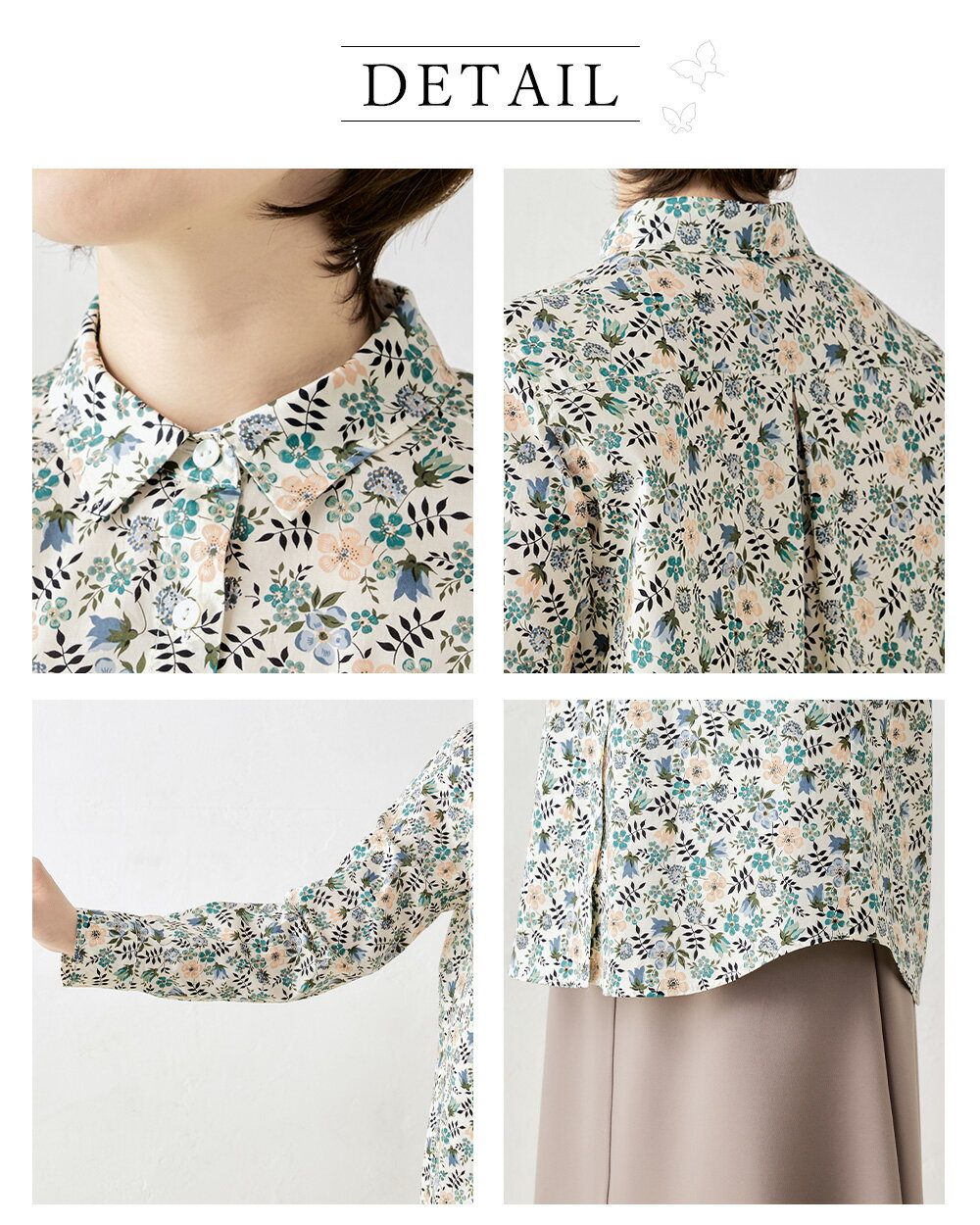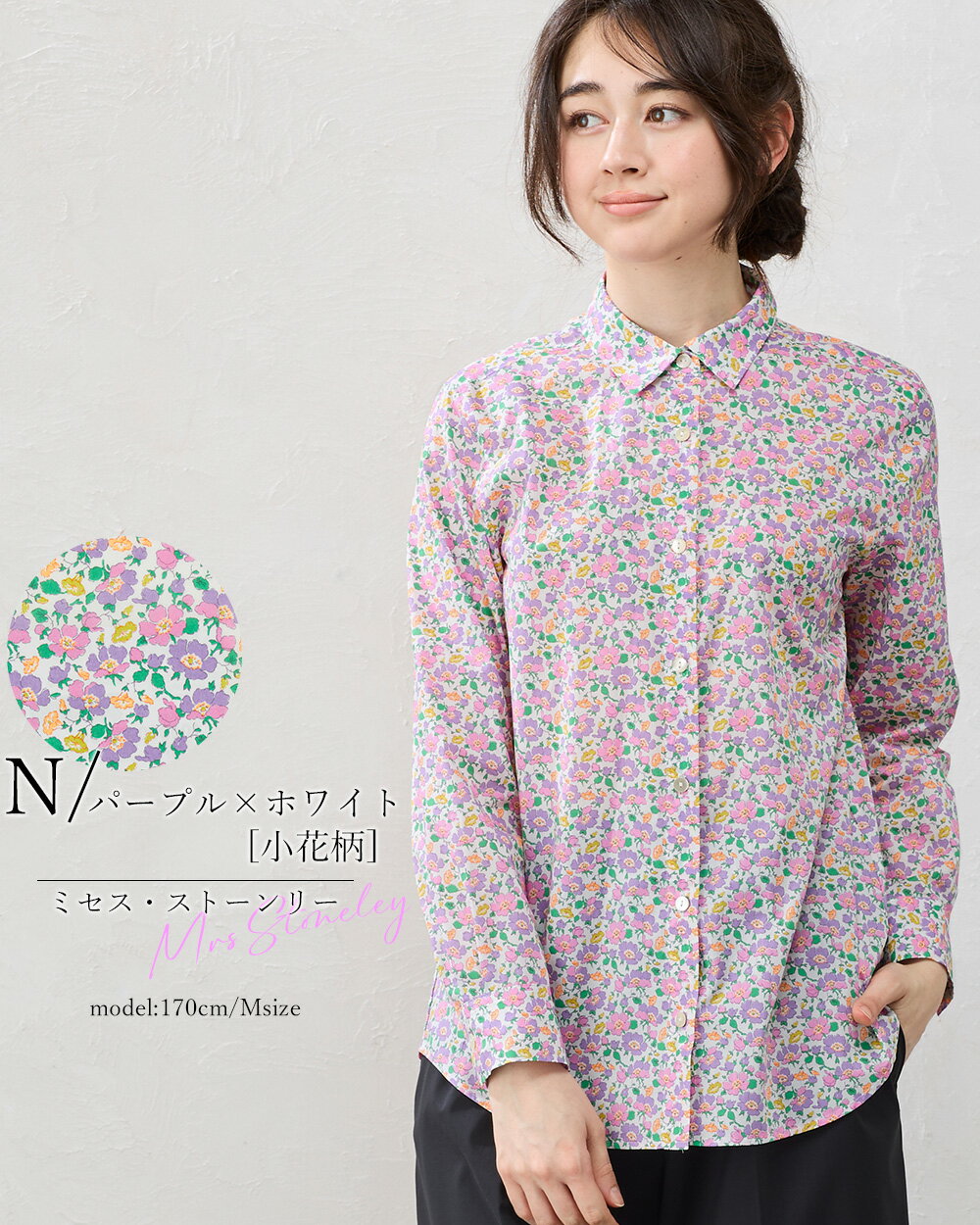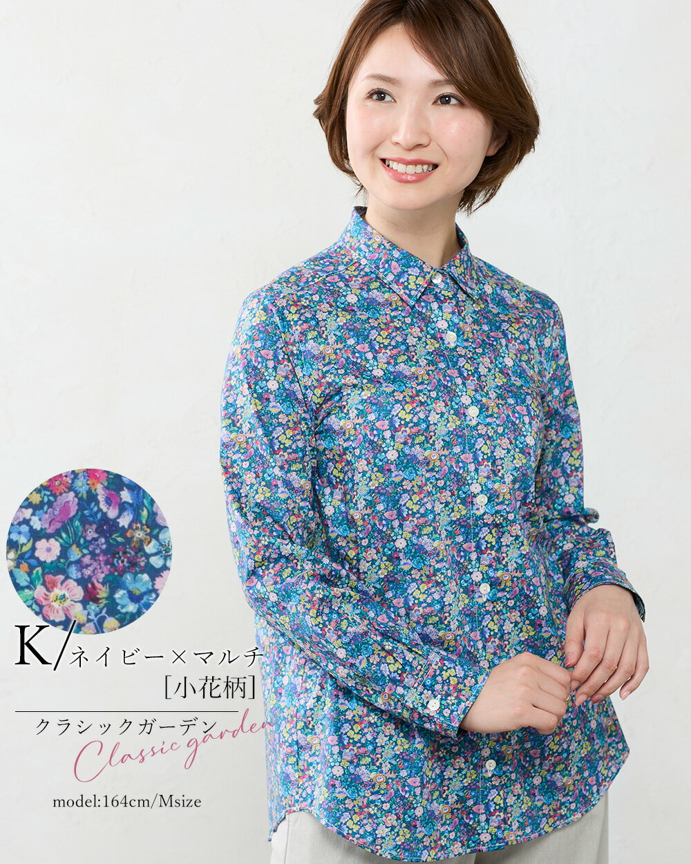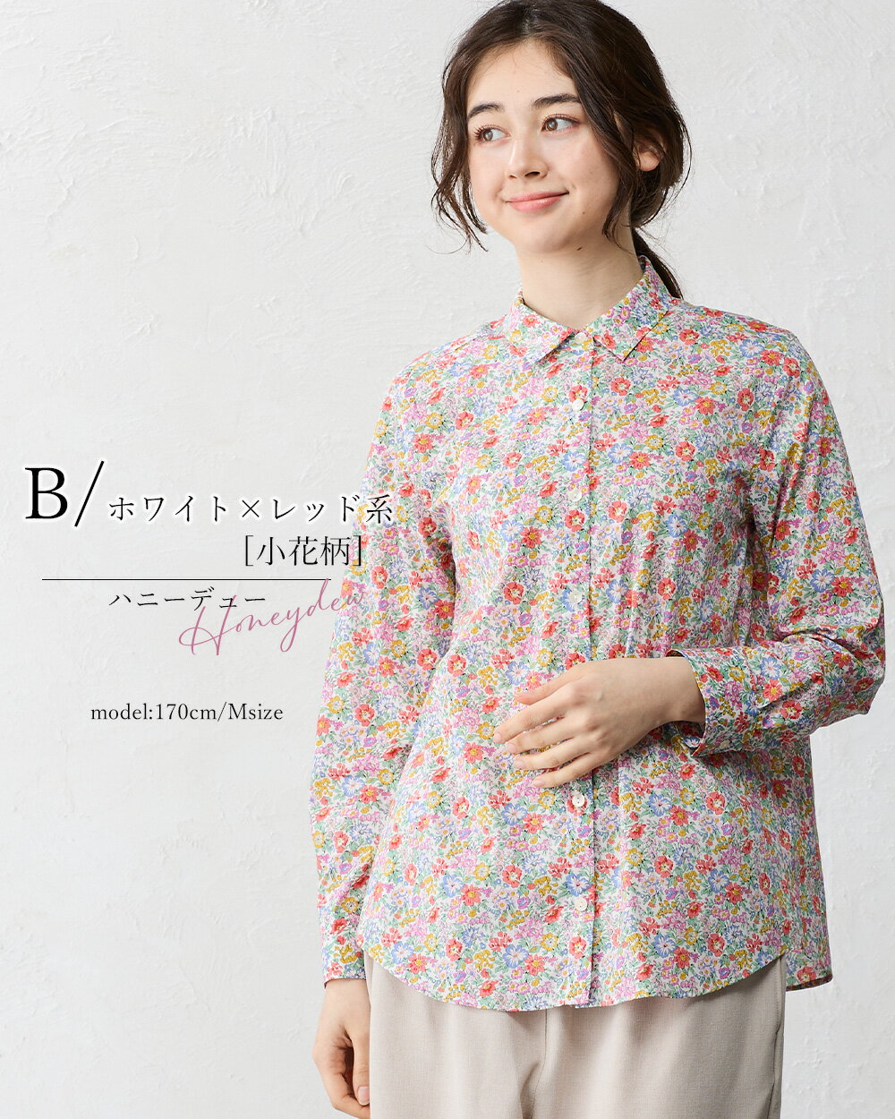 リバティ LIBERTY シャツ 日本製 花柄 フラワー 草花 ボタニカル プリント 綿100% コットン 綿 シャツ ブラウス 羽織 2way 重ね着 レイヤード 長袖 ファッション レディース 女性 フォーマル お出かけ 春 冬 秋 トップス カジュアル