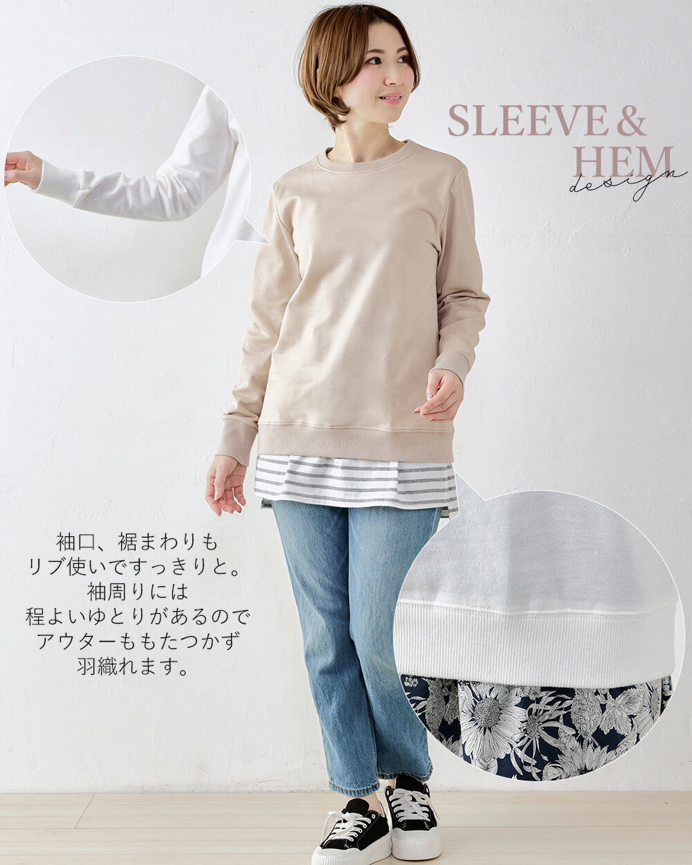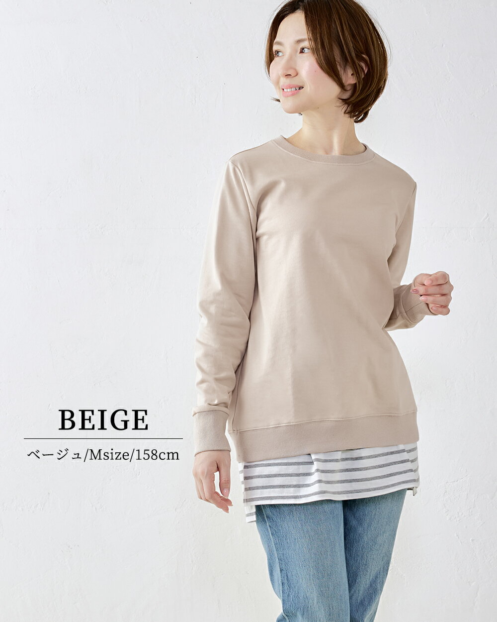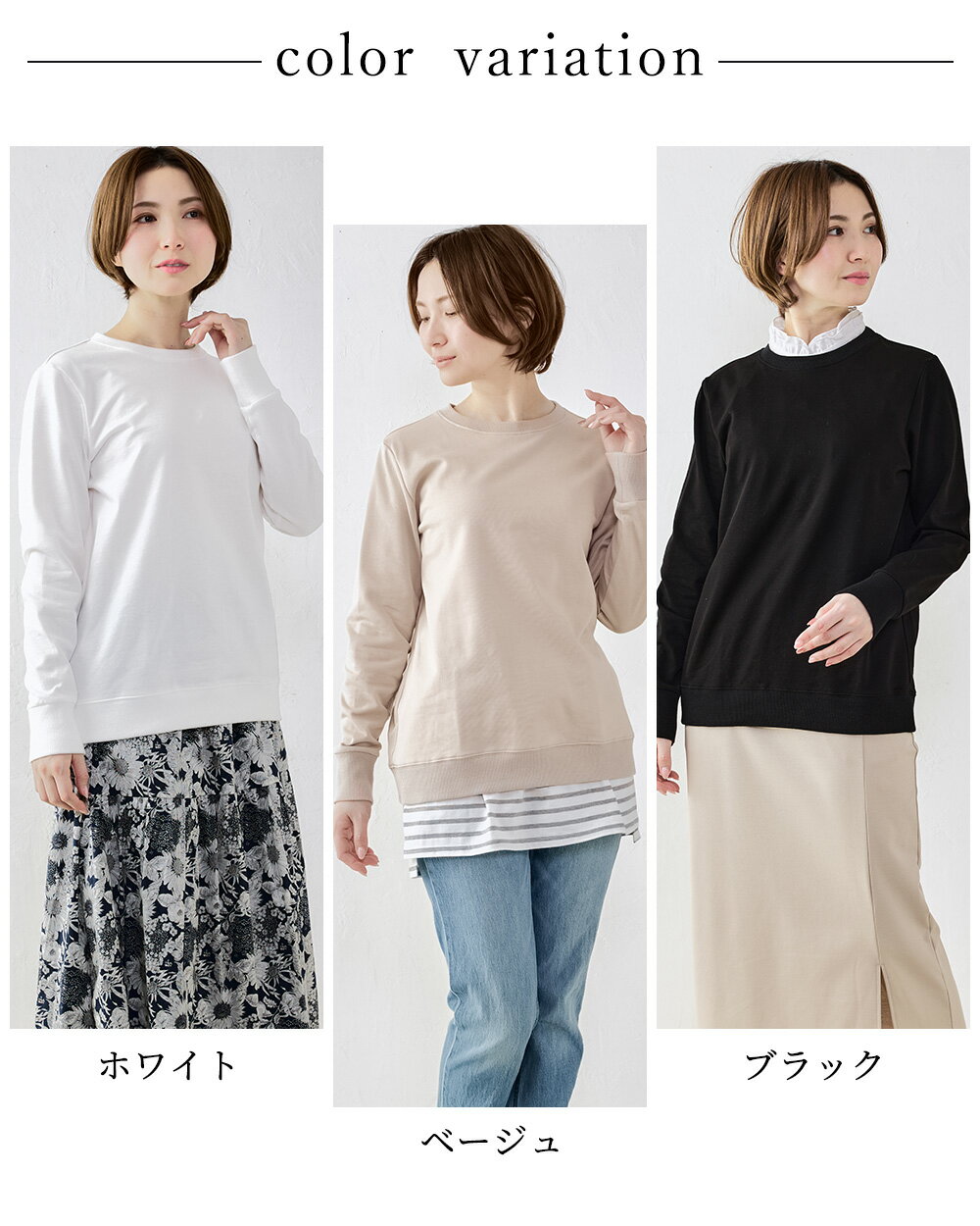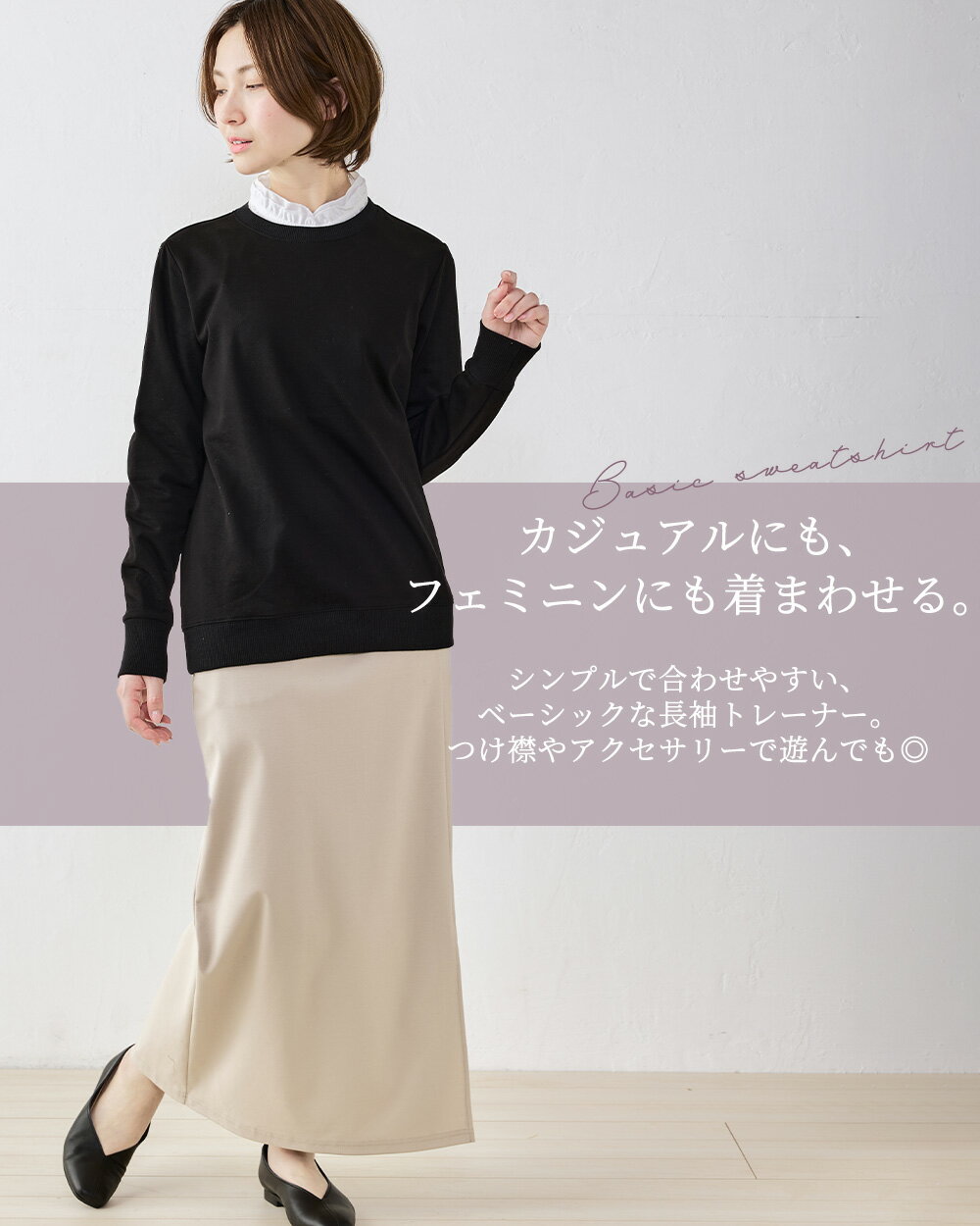 【スーパーセール★50%OFF】オーガニックコットン スウェット トレーナー 日本製 綿100% コットン 綿 スエット 裏毛 プルオーバー 長袖 ファッション レディース お出かけ 春 冬 秋 トップス カットソー ストレッチ レイヤード 重ね着 カジュアル 4190935