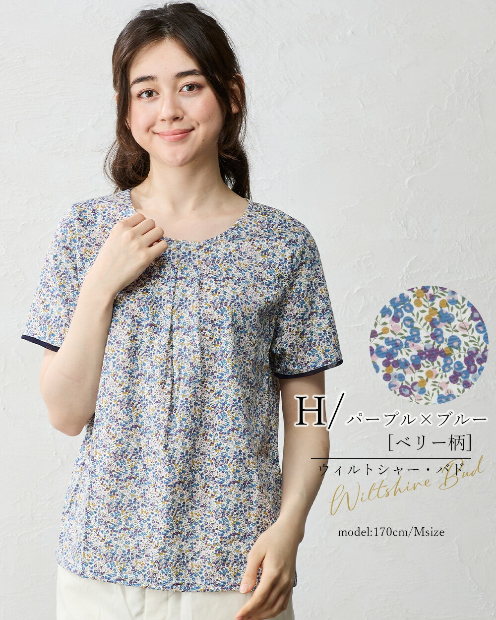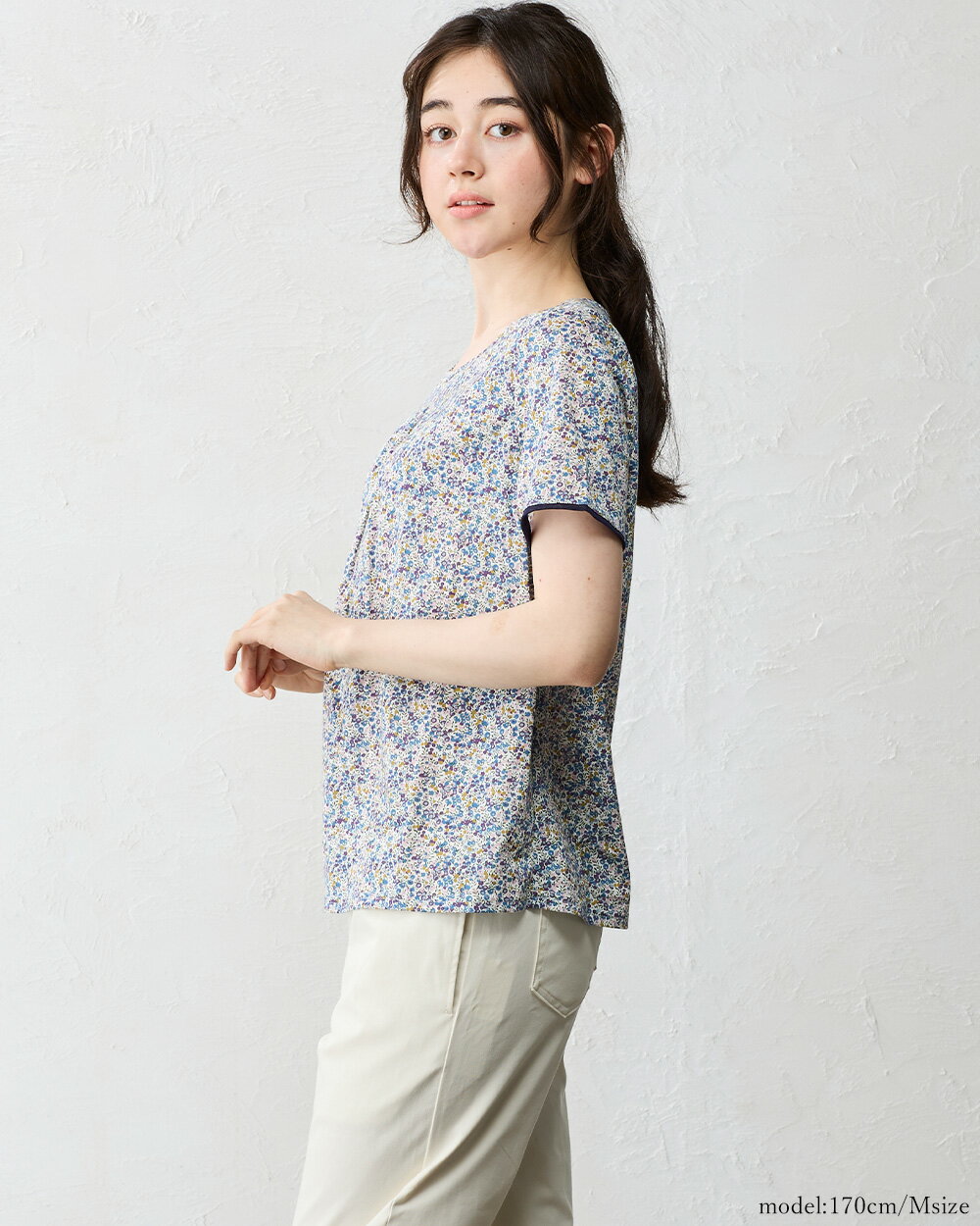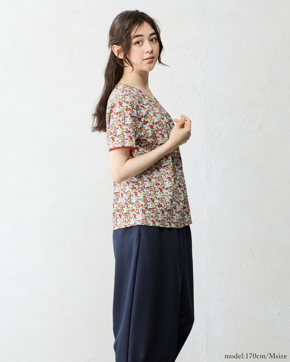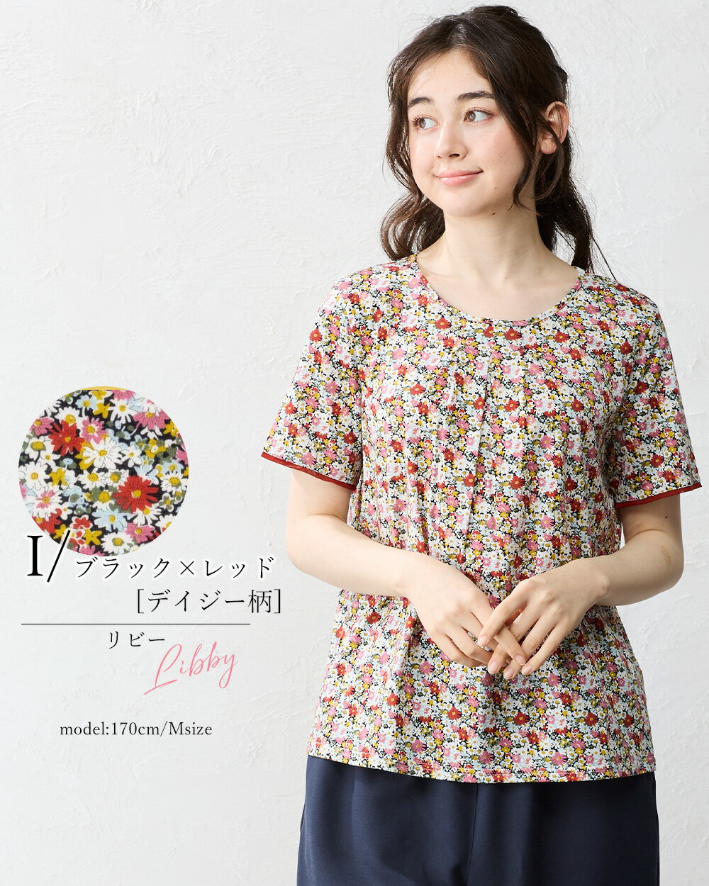 リバティ LIBERTY チュール 切替 カットソー 日本製 花柄 フラワー 草花 ボタニカル プリント 綿100% コットン 綿 Tシャツ プルオーバー 半袖 ファッション レディース お出かけ 春 夏 トップス インナー ストレッチ カジュアル