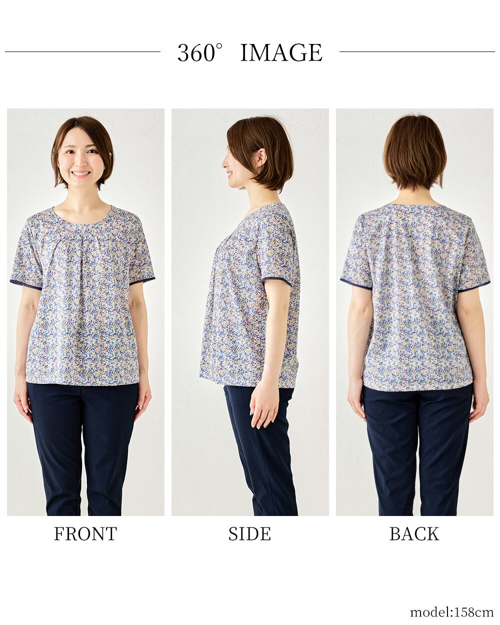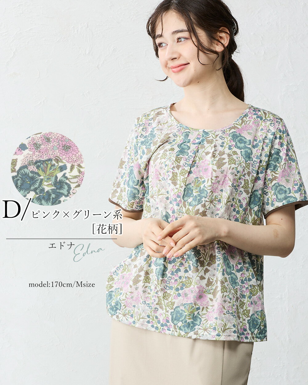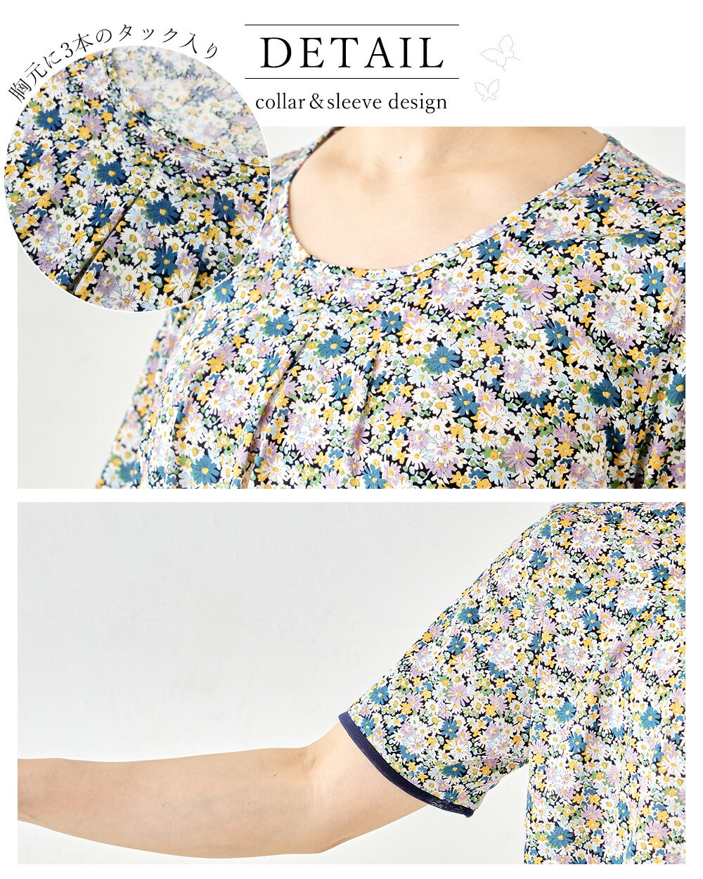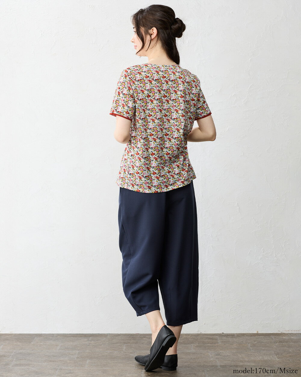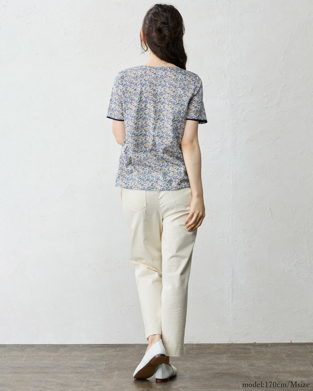 リバティ LIBERTY チュール 切替 カットソー 日本製 花柄 フラワー 草花 ボタニカル プリント 綿100% コットン 綿 Tシャツ プルオーバー 半袖 ファッション レディース お出かけ 春 夏 トップス インナー ストレッチ カジュアル