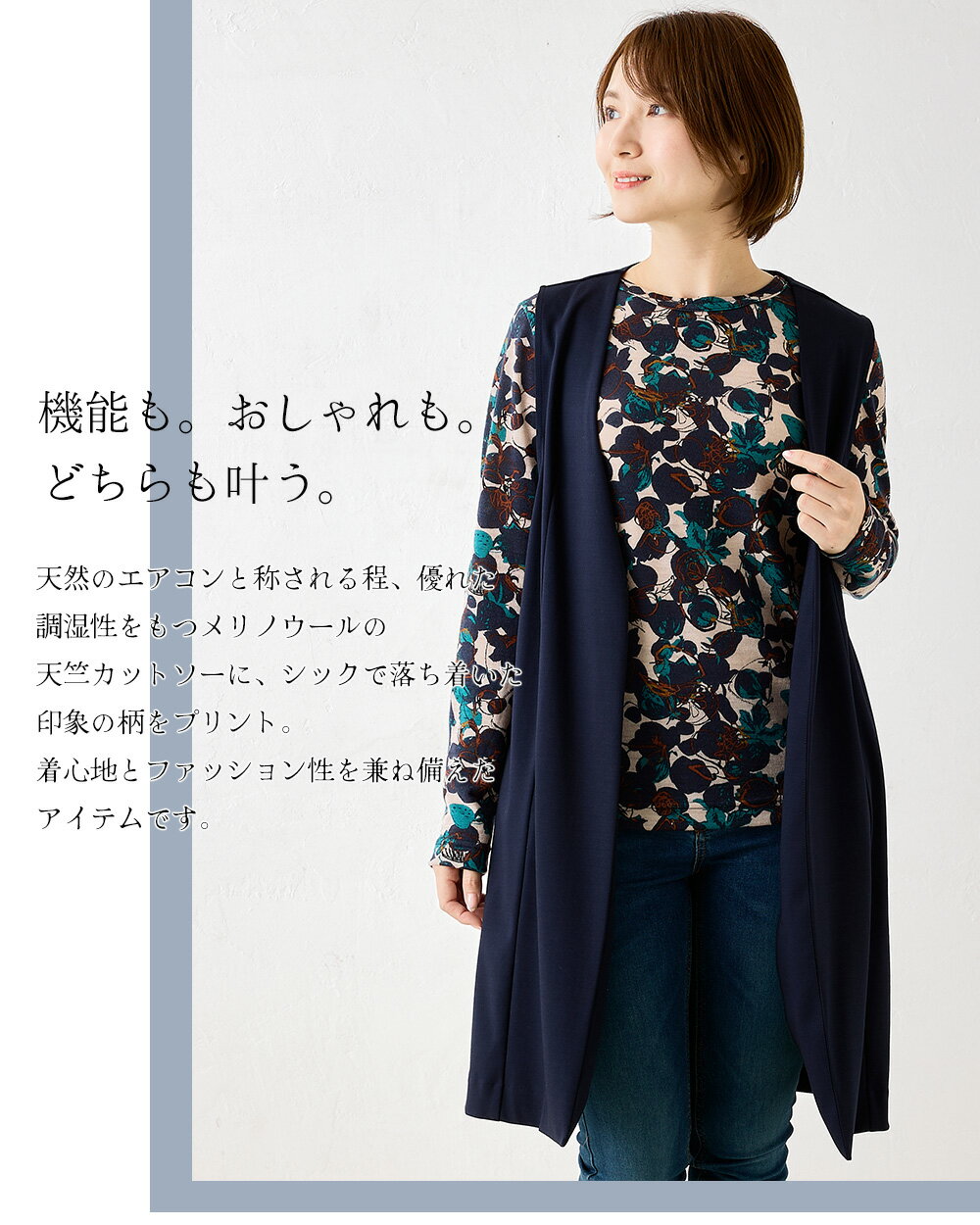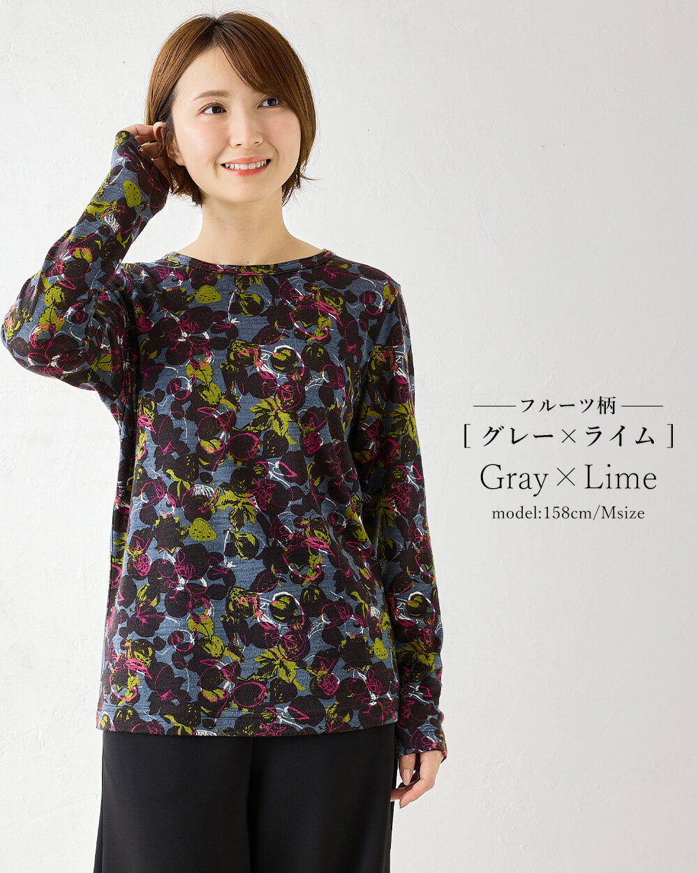メリノウール クルーネック Tシャツ 長袖 プリント レディース 日本製 インナー ウール100% ウォッシャブルウール 登山 クルーネック カットソー 長袖tシャツ アンダーウェア カットソー ベースレイヤー 夏 秋 冬 30代 40代 50代 60代 洗えるウール 丸襟