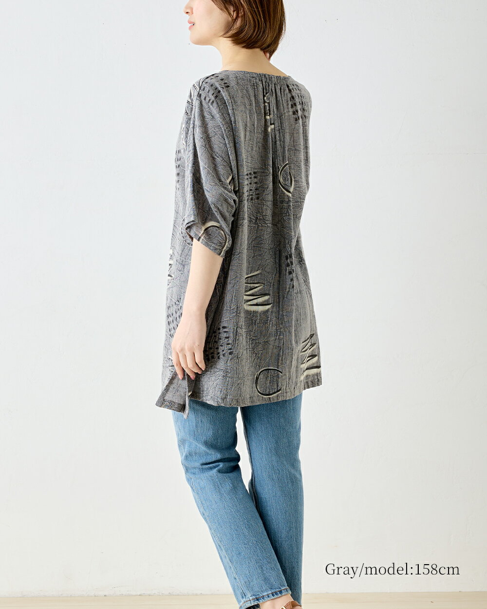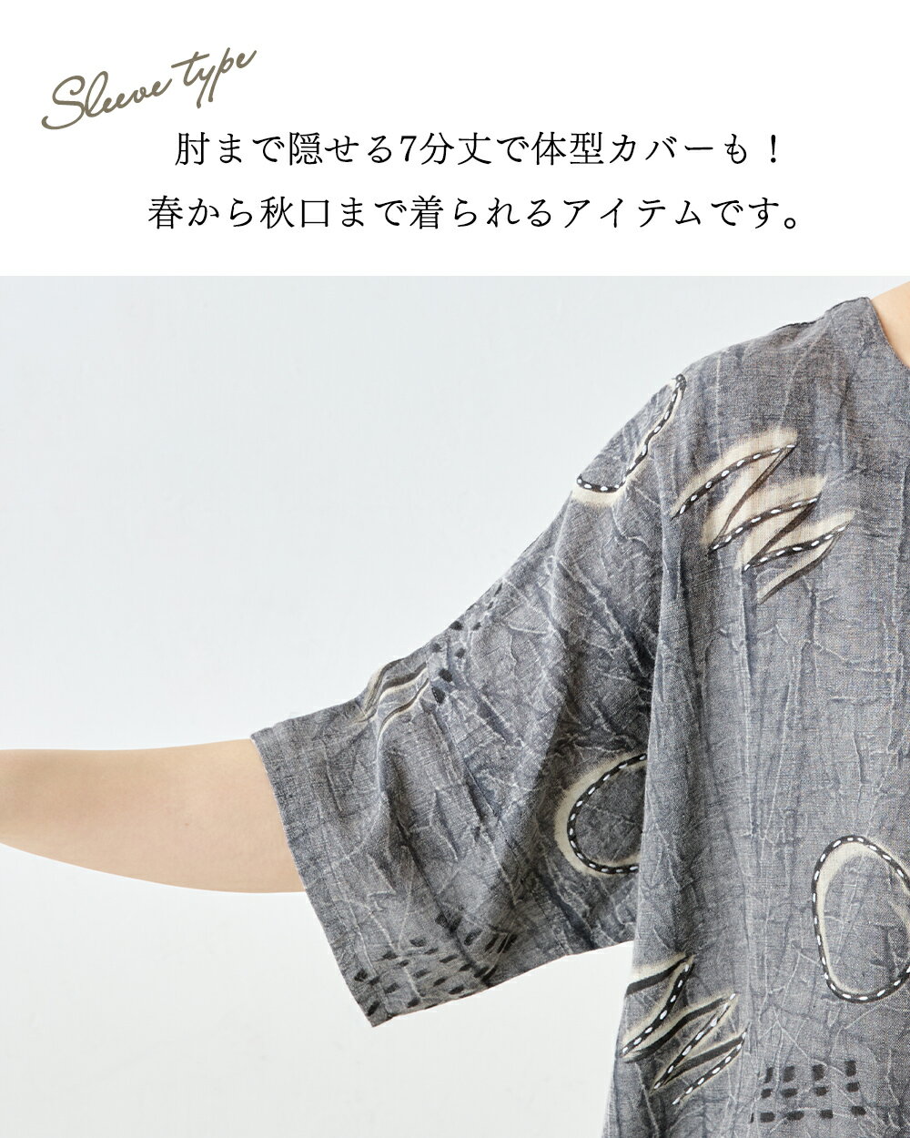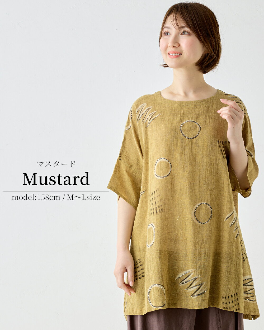 インド綿 チュニック レディース 七分袖 綿麻 刺繍 アシッドウォッシュ スノーウォッシュ コットンリネン M~L ゆったりシルエット 体型カバー 大人可愛い 春夏 快適 涼しい