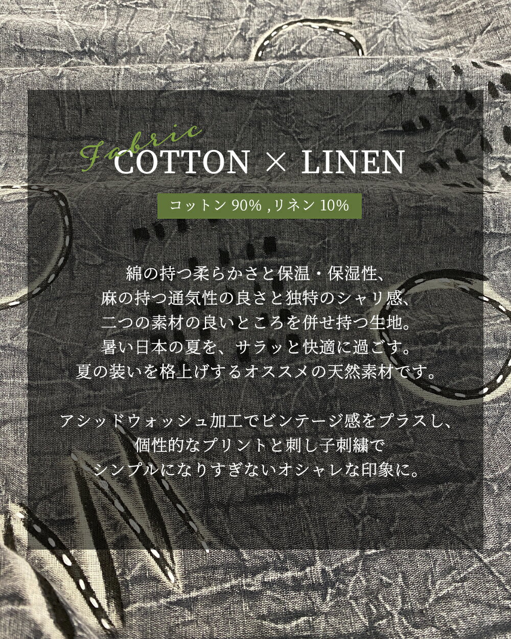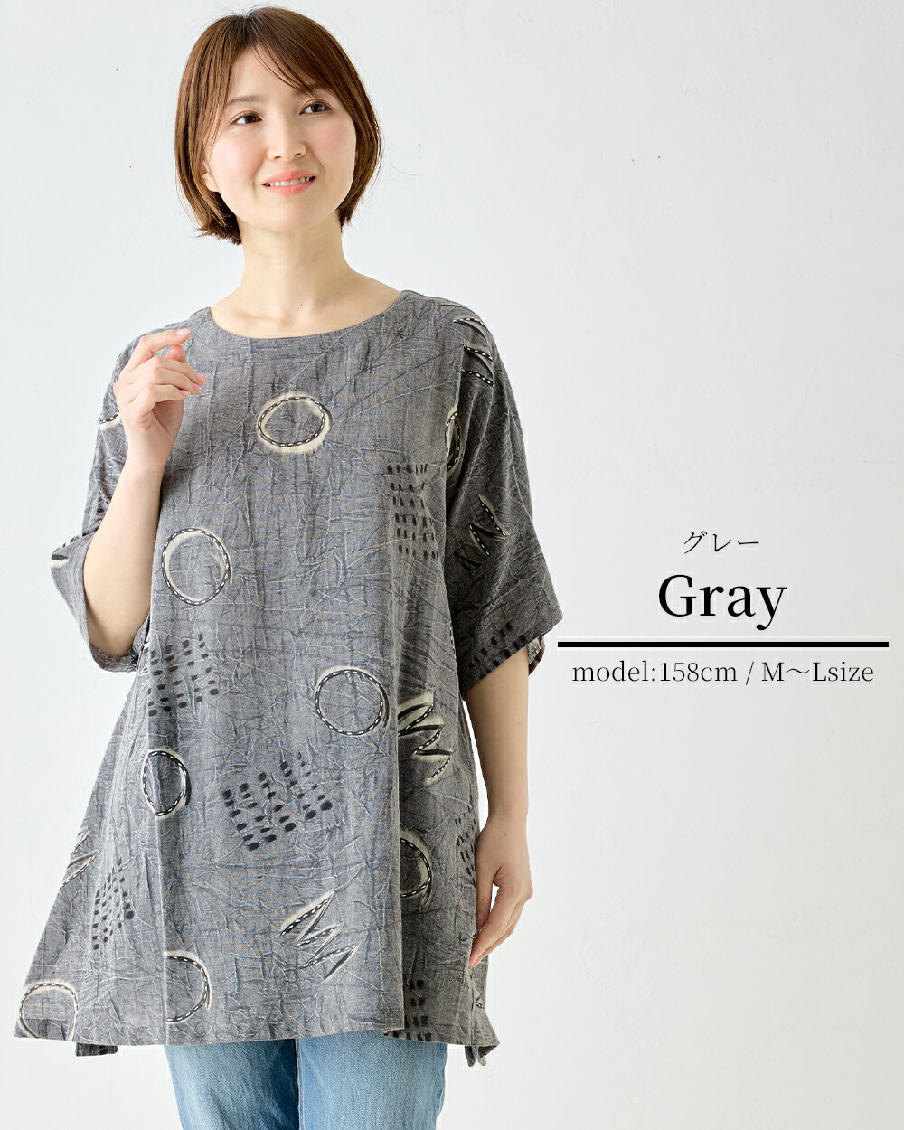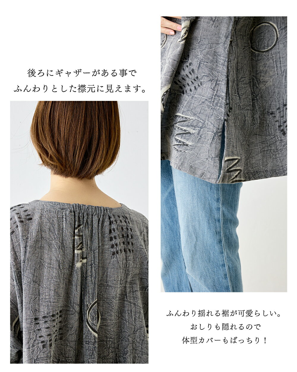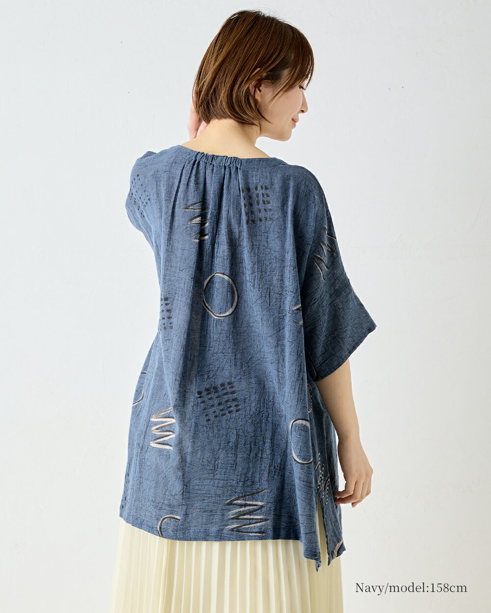 インド綿 チュニック レディース 七分袖 綿麻 刺繍 アシッドウォッシュ スノーウォッシュ コットンリネン M~L ゆったりシルエット 体型カバー 大人可愛い 春夏 快適 涼しい