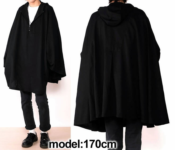 ポンチョ マント メンズ パーカー ビッグシルエット フレアスリーブ ベルスリーブ ポンチョ風パーカー / A054 ブラック 黒 チュニック