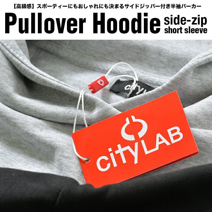 CITY LAB パーカー 半袖 メンズ レディース ユニセックス シティーラブ サイド ジップ ロング丈 シティラブ プルオーバー 半袖パーカー フード 大きいサイズ USモデル 無地 アメカジ スポーツ ブランド ブラック グレー ネイビー IF015PS