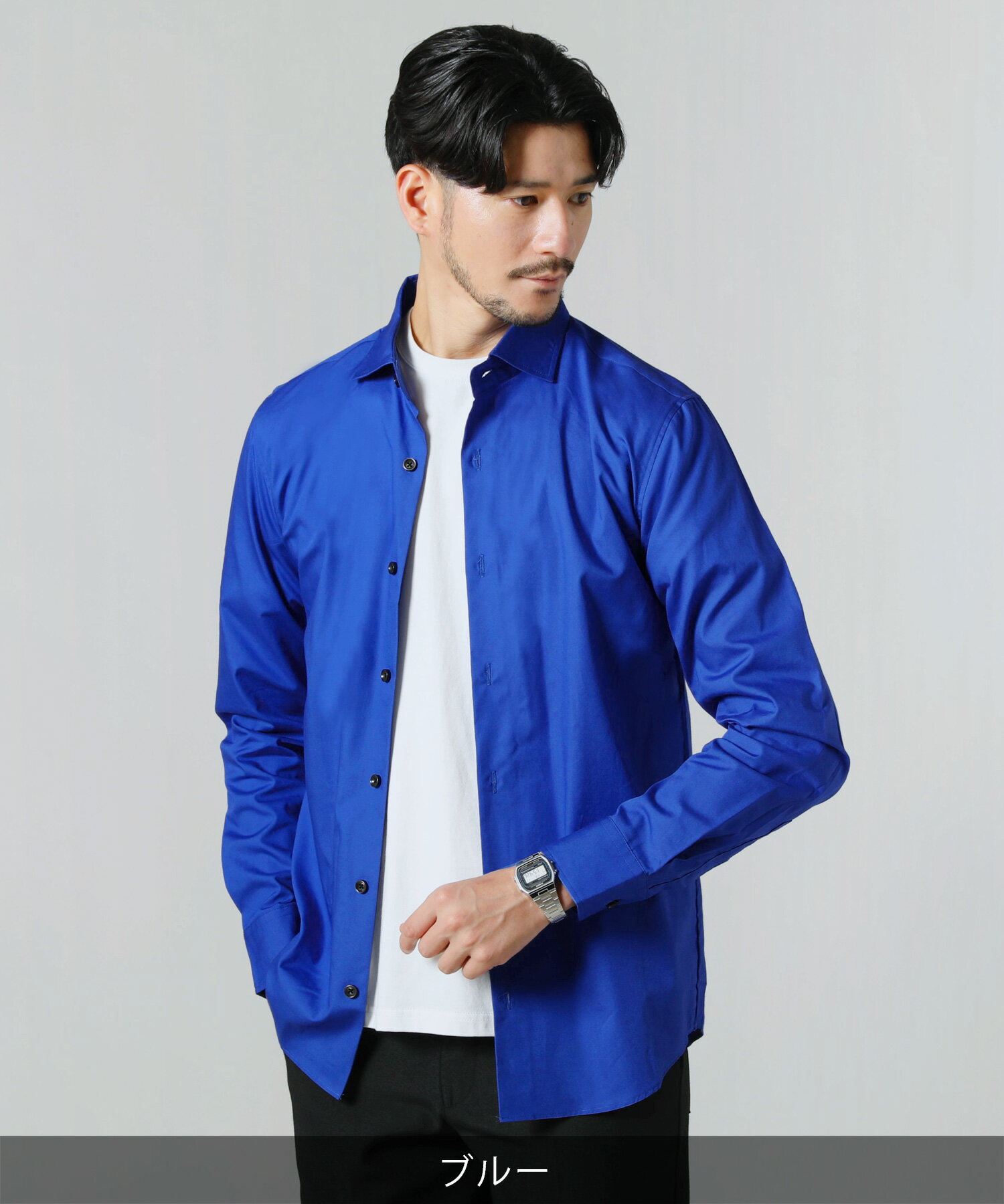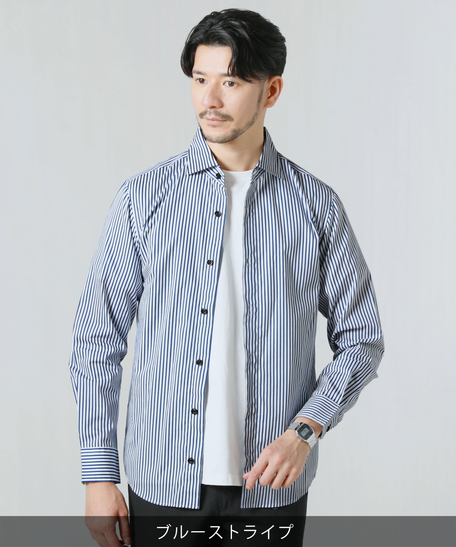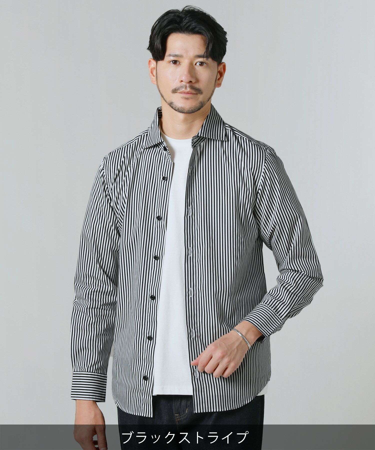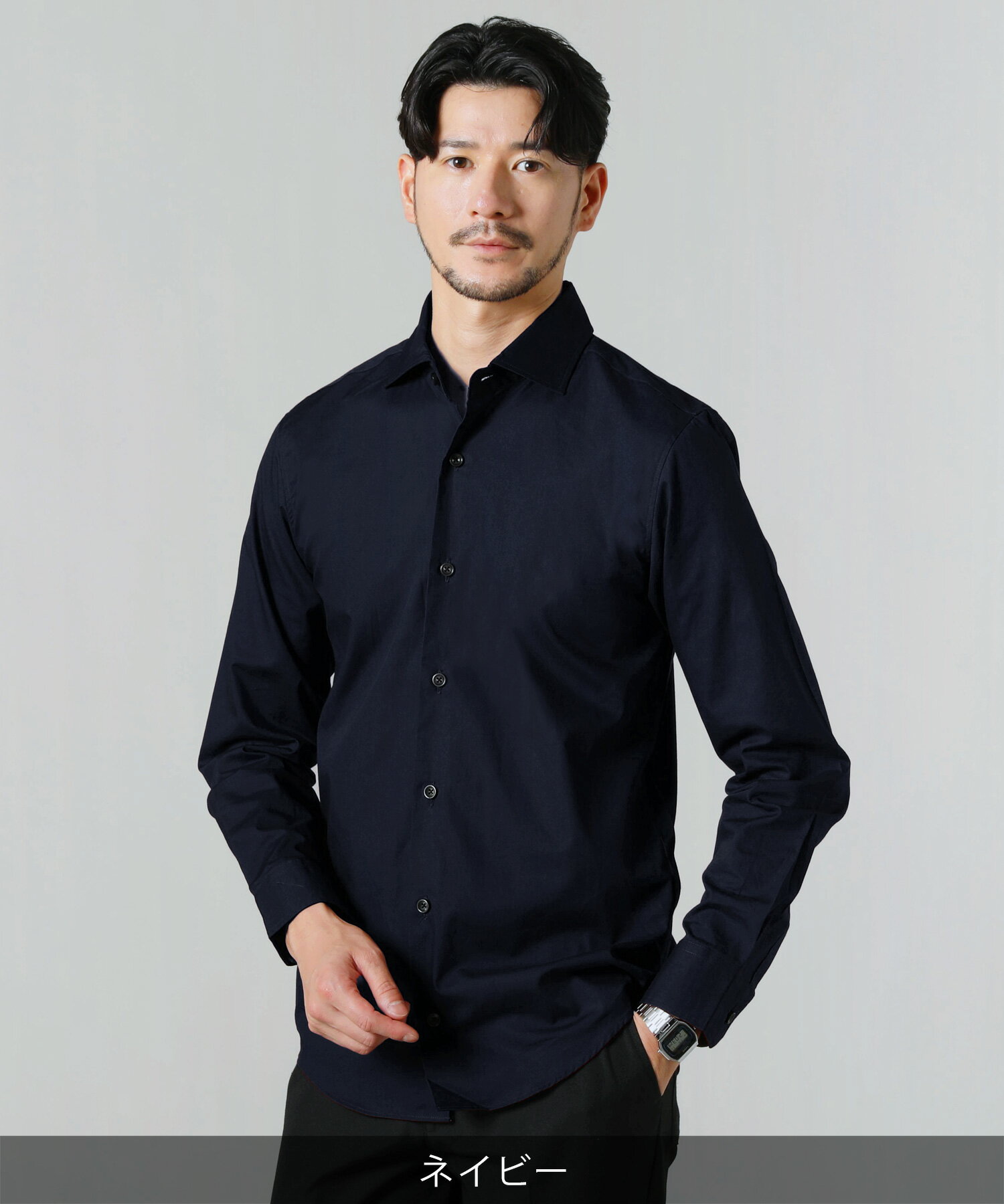 シャツ ホリゾンタルカラー メンズ 春 春服 秋 秋服 冬 冬服 長袖 日本製 国産 綿100 ブロード スリム 細身 ブラック ネイビー ブルー ピンク ホワイト ワイン レッド ストライプ SPU スプ M L LL