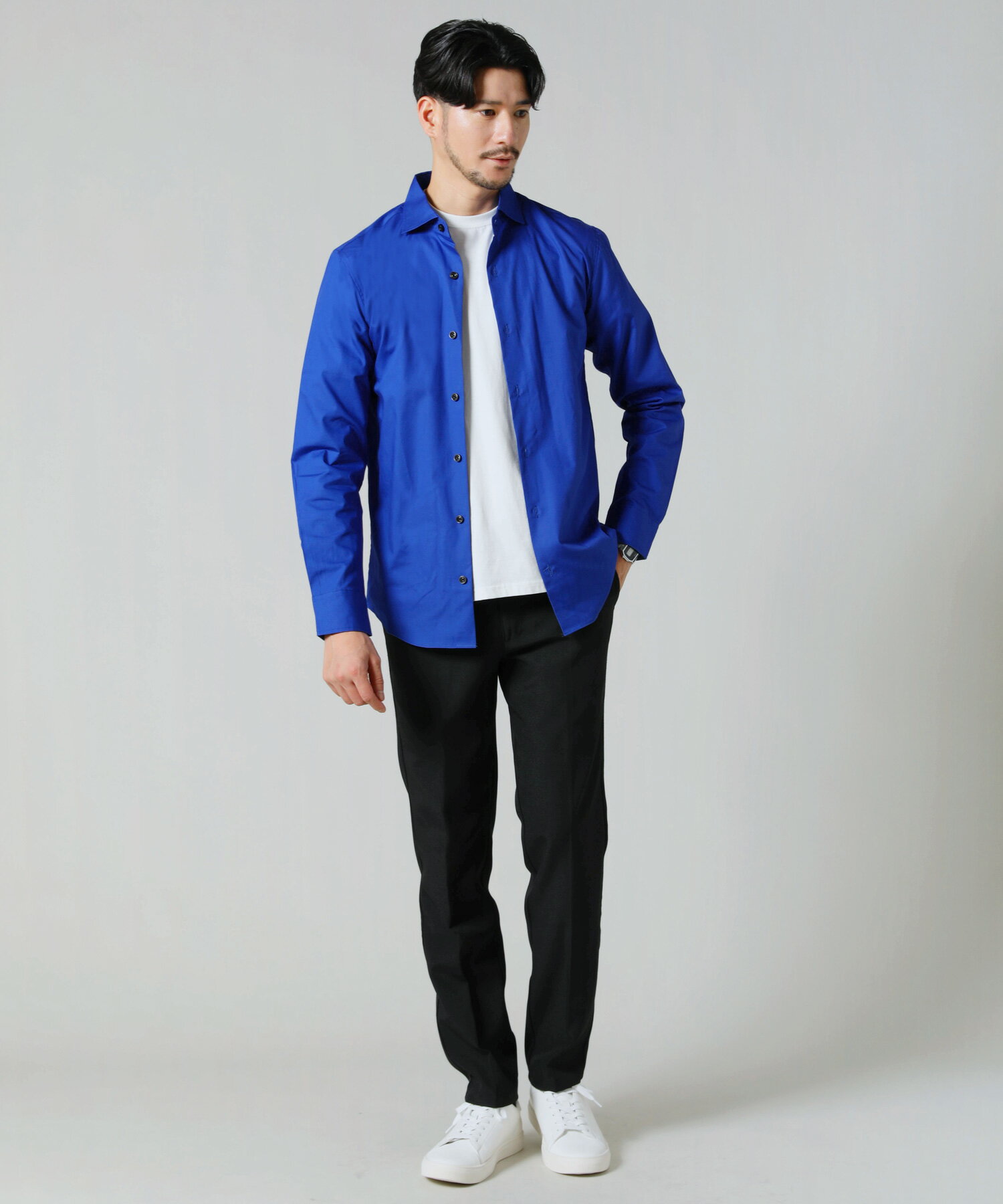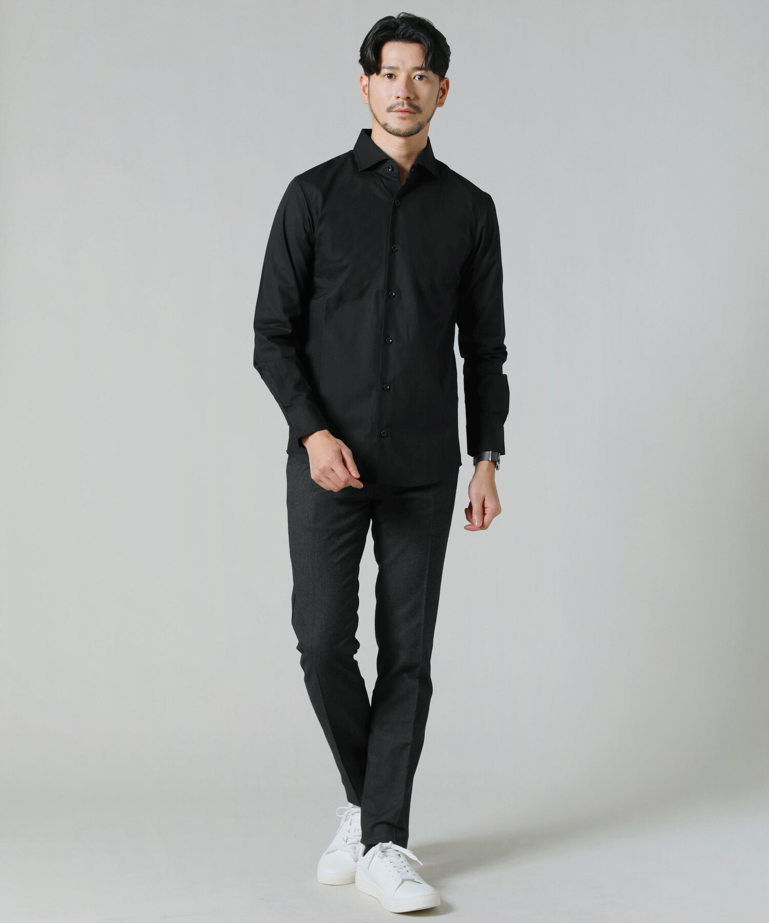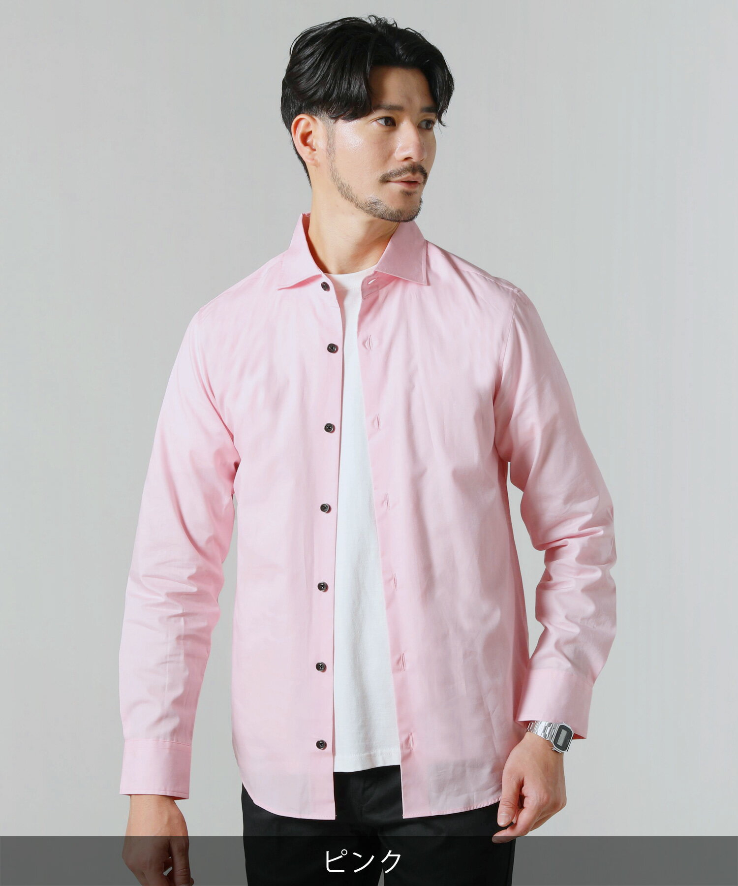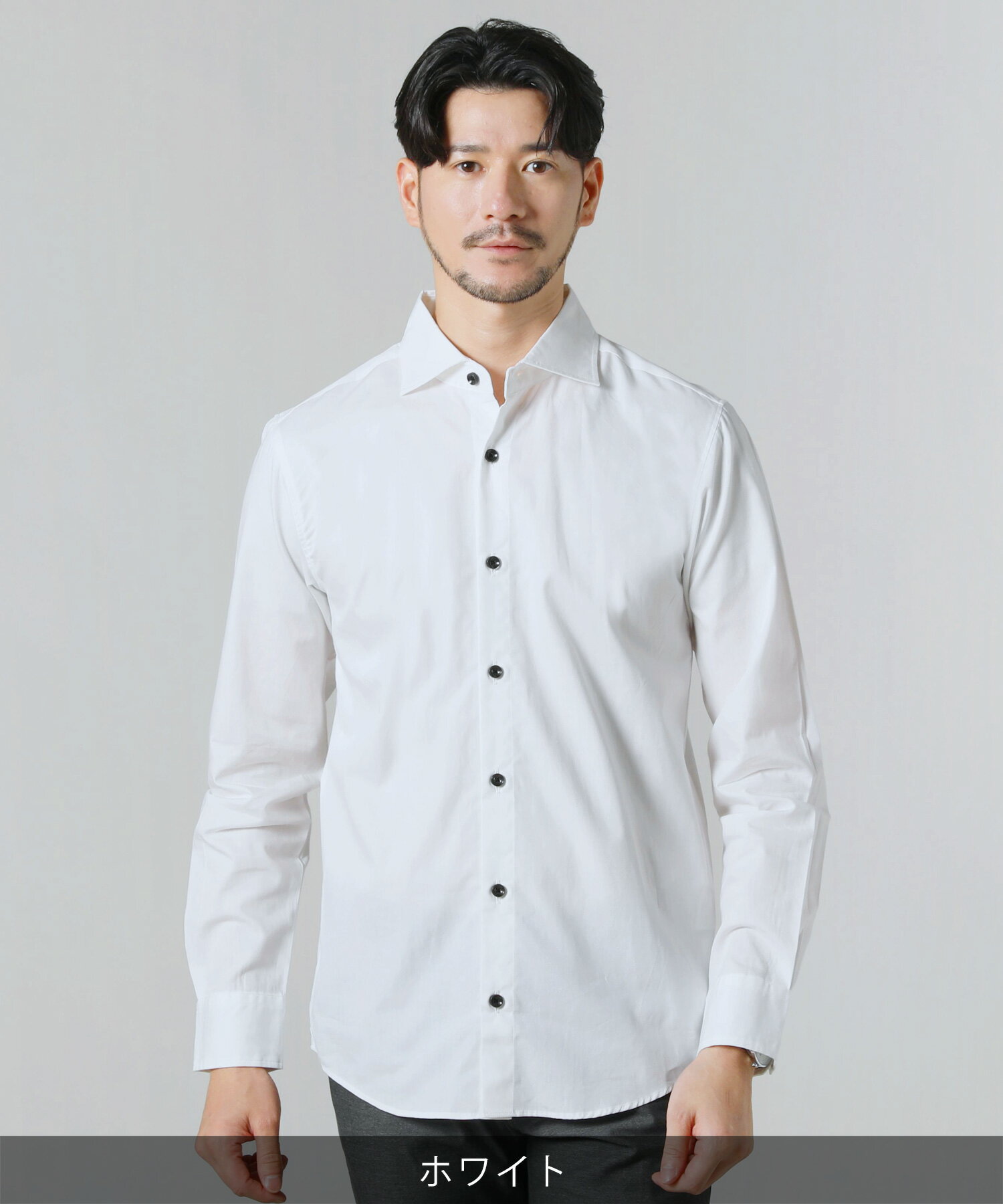 シャツ ホリゾンタルカラー メンズ 春 春服 秋 秋服 冬 冬服 長袖 日本製 国産 綿100 ブロード スリム 細身 ブラック ネイビー ブルー ピンク ホワイト ワイン レッド ストライプ SPU スプ M L LL
