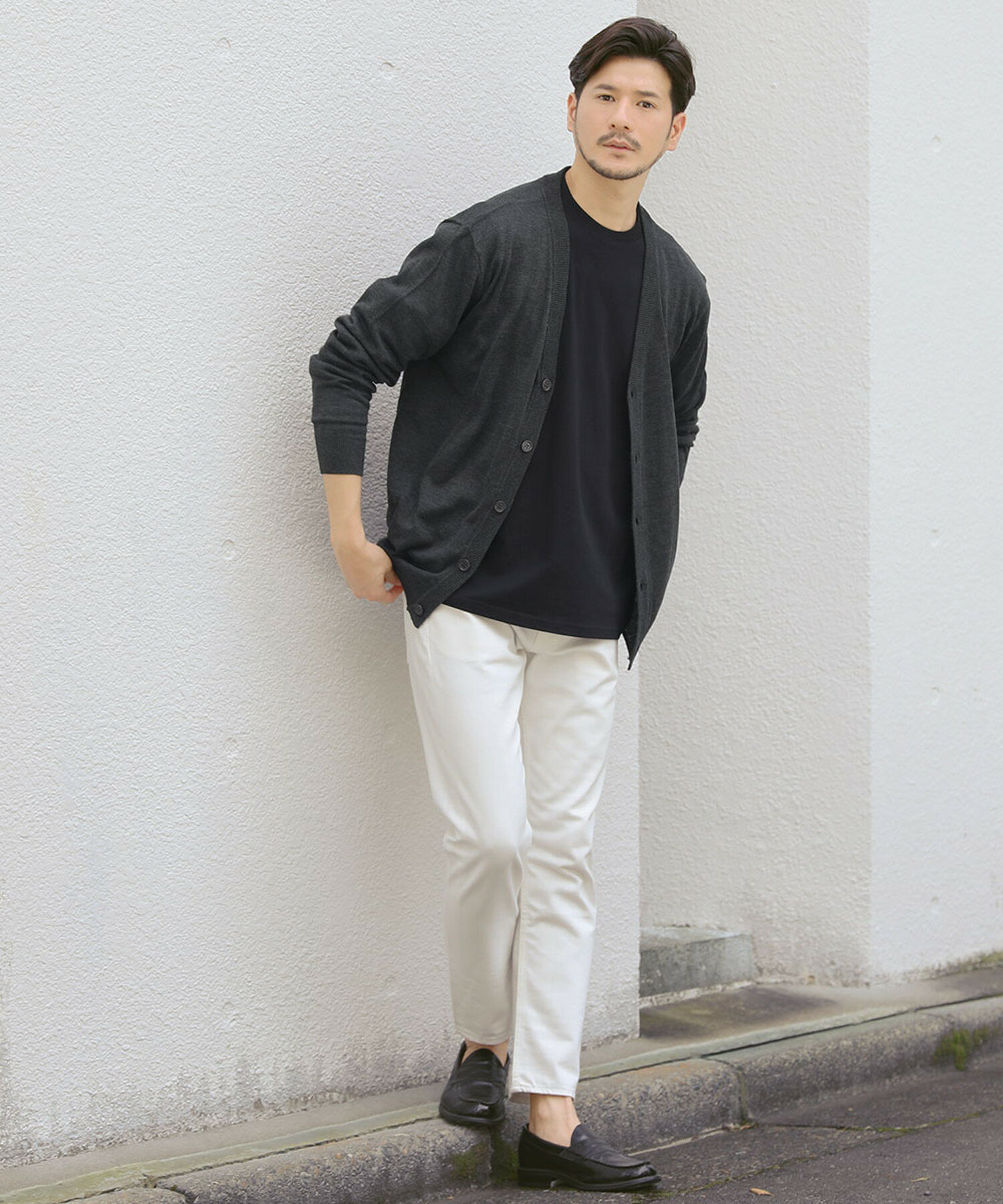 カーディガン メンズ メンズファッション 秋 秋服 冬 冬服 春 春服 薄手 セミルーズ シルエット ベーシック Vネック 長袖 無地 ブラック チャコール グレー ネイビー ベージュ ブルー レッド グリーン M L XL SPU スプ