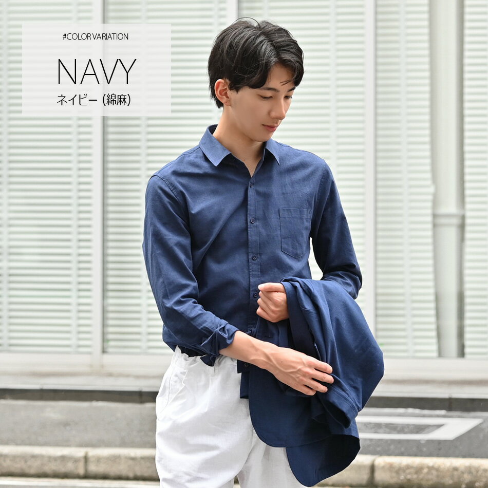 【6,490円→2,690円 スーパーSALE】シャツ メンズ 綿麻 リネンシャツ 麻シャツ シアサッカー 長袖 セットアップ(別売) 白シャツ ストライプ 無地 春夏秋 白 紺 青 茶 ホワイト ネイビー ブラウン ブルー レギュラーカラー 涼しい 大きいサイズ M L XL 2L LL 3L 4L 5L