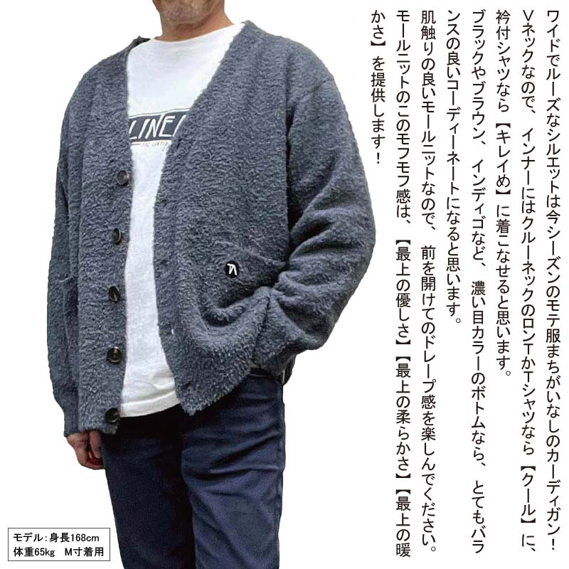 【残りわずかセール】 ティーリニアル サーフブランド カーディガン ふんわりニット オーバーサイズ 大きめ メンズ グレー 肌触りの良い モールニット モフモフ ルーズシルエット リラックス 20代 30代 40代 50代 ファッション ゆったり 秋冬服 厚手 フワフワ もこもこ